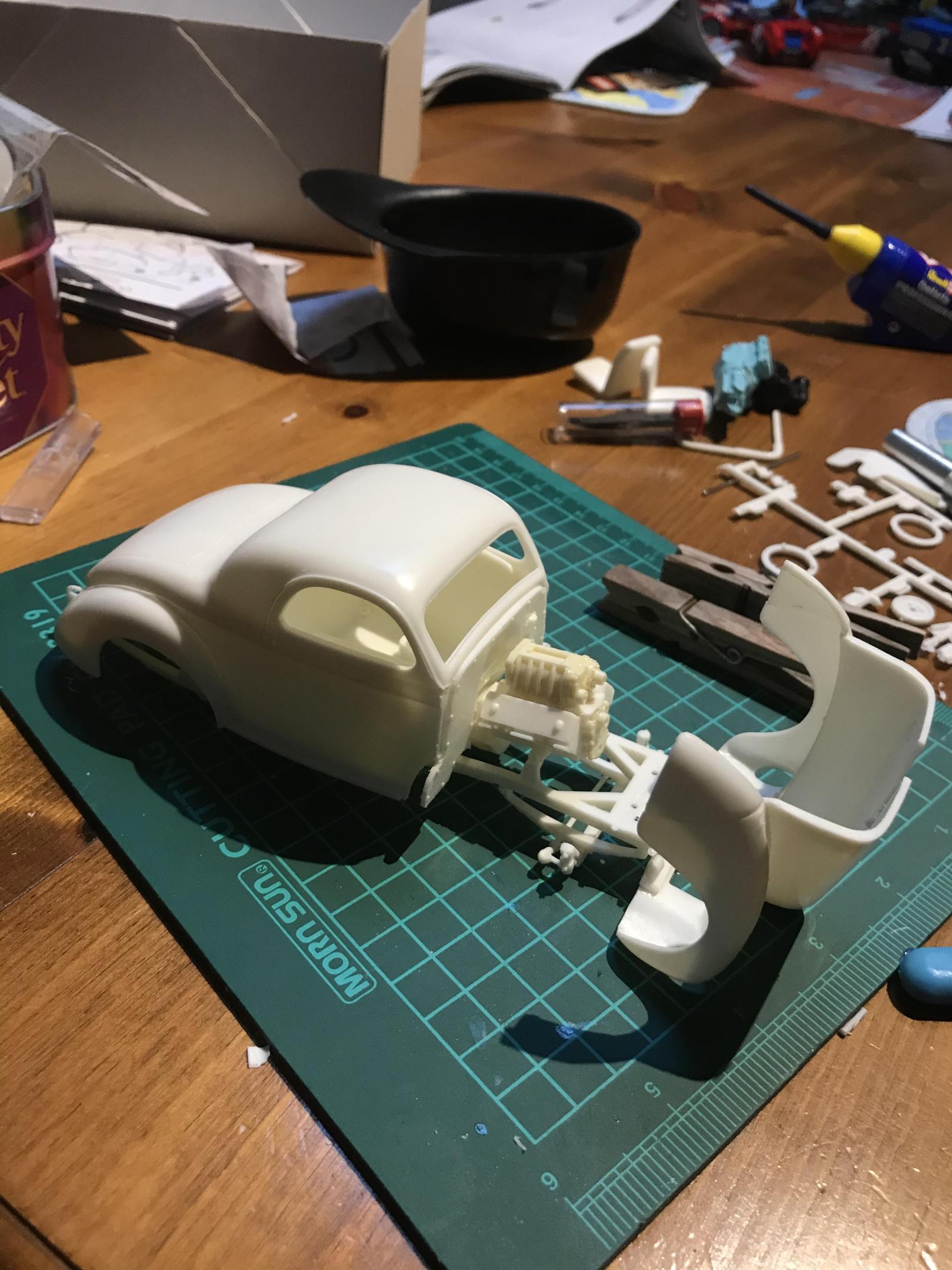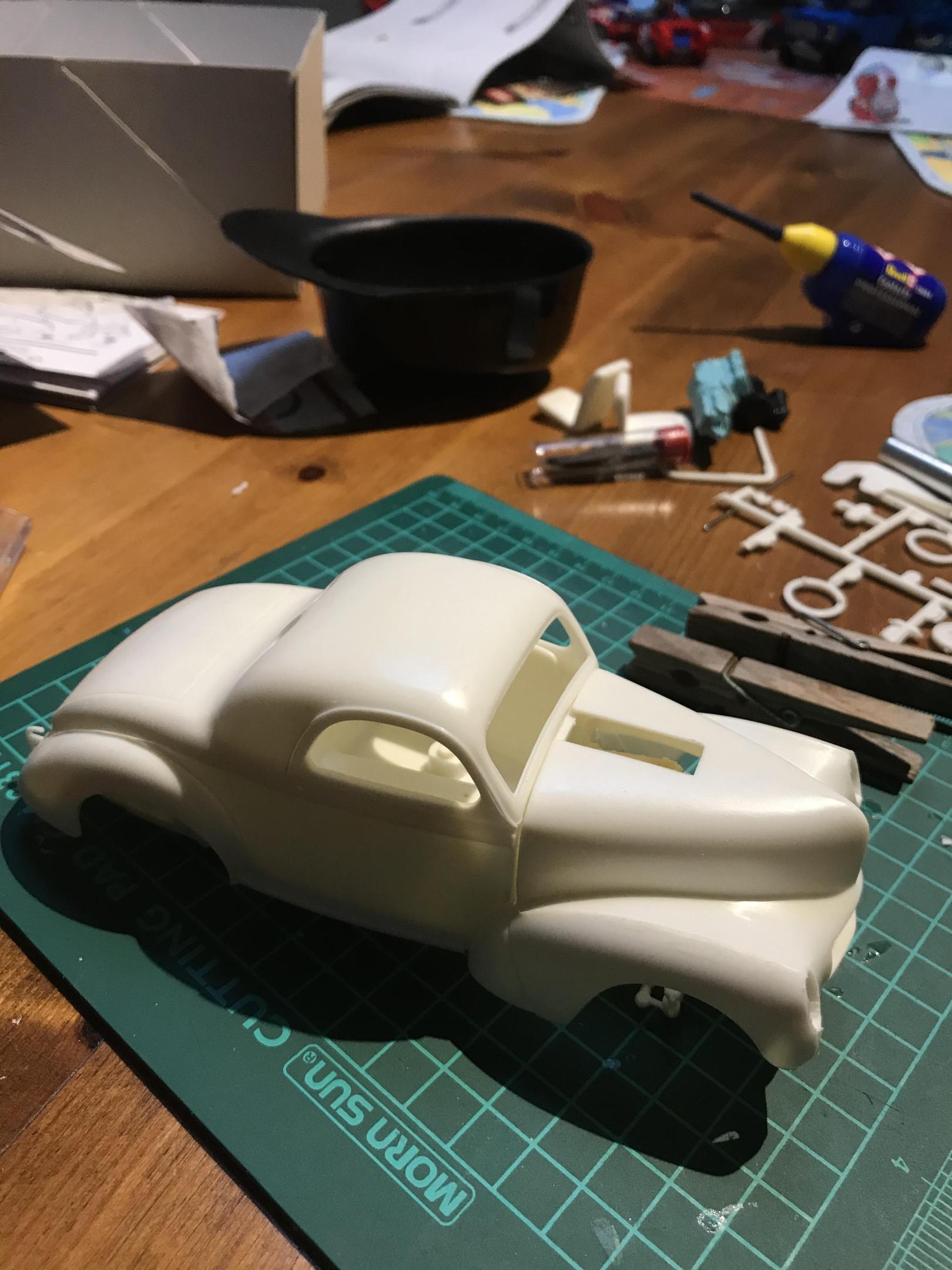 Hi Zippi great job thus far... I quite like this kit and always thought it had good ‘bones’ upon which one might improve it... and Lo and behold you are doing just that! I am building this exact kit right now (albeit the coupe) and did what you did with the fenders... now the trick I found was to look closely at the hinging part that installs to the hood... you’ll notice some evidence of ‘extra material being added’ / ‘material being removed from the tool’ which I suspect was added after first-offs to push the hood ‘forward’ and clear the scoop... it’s 2 tabs about 1/16” thick. What I did was remove this extra material, and slightly open the hood hole and ‘voila’ it suddenly all started to fit. I still haven’t finished it but it’s getting there
