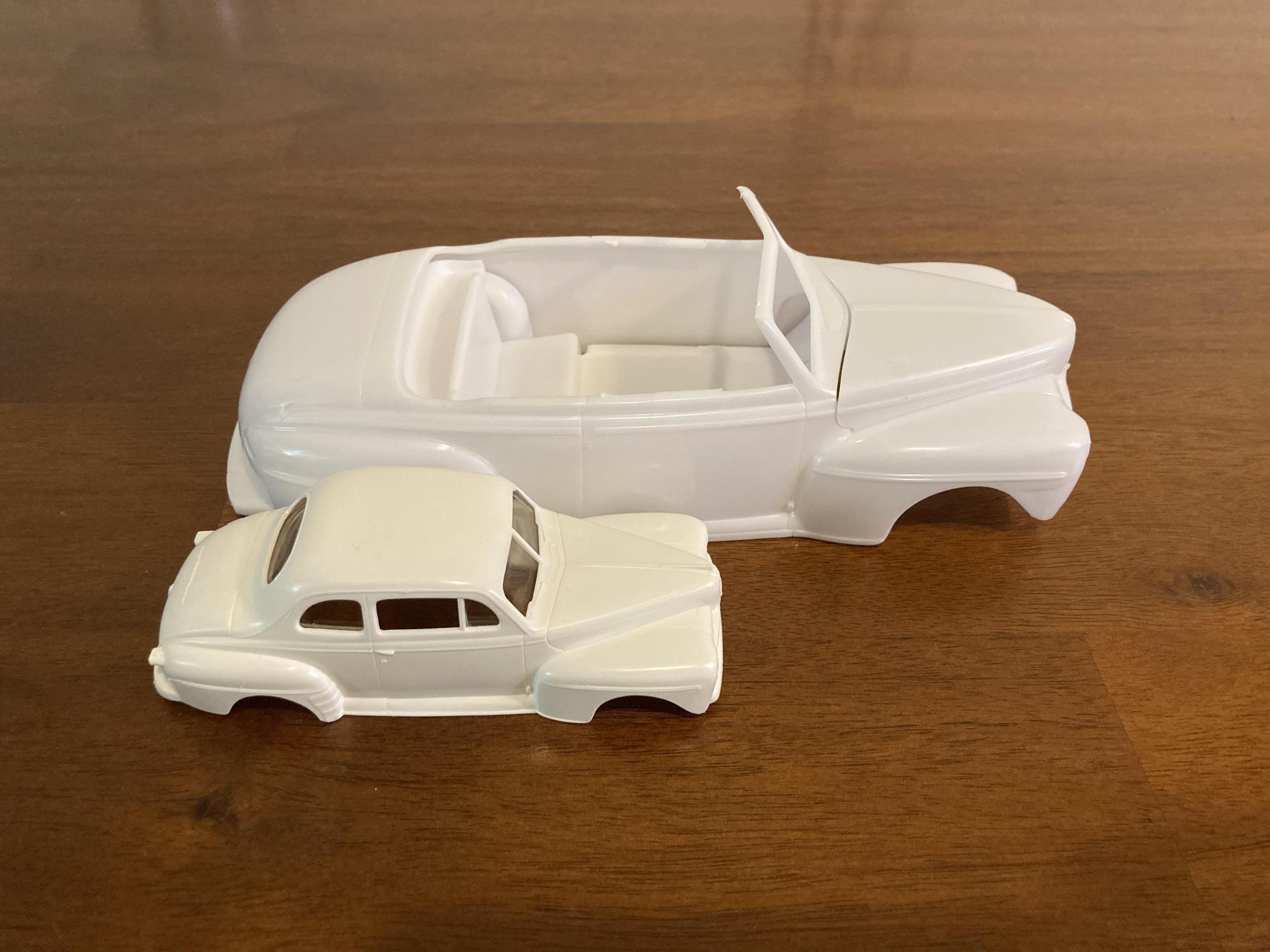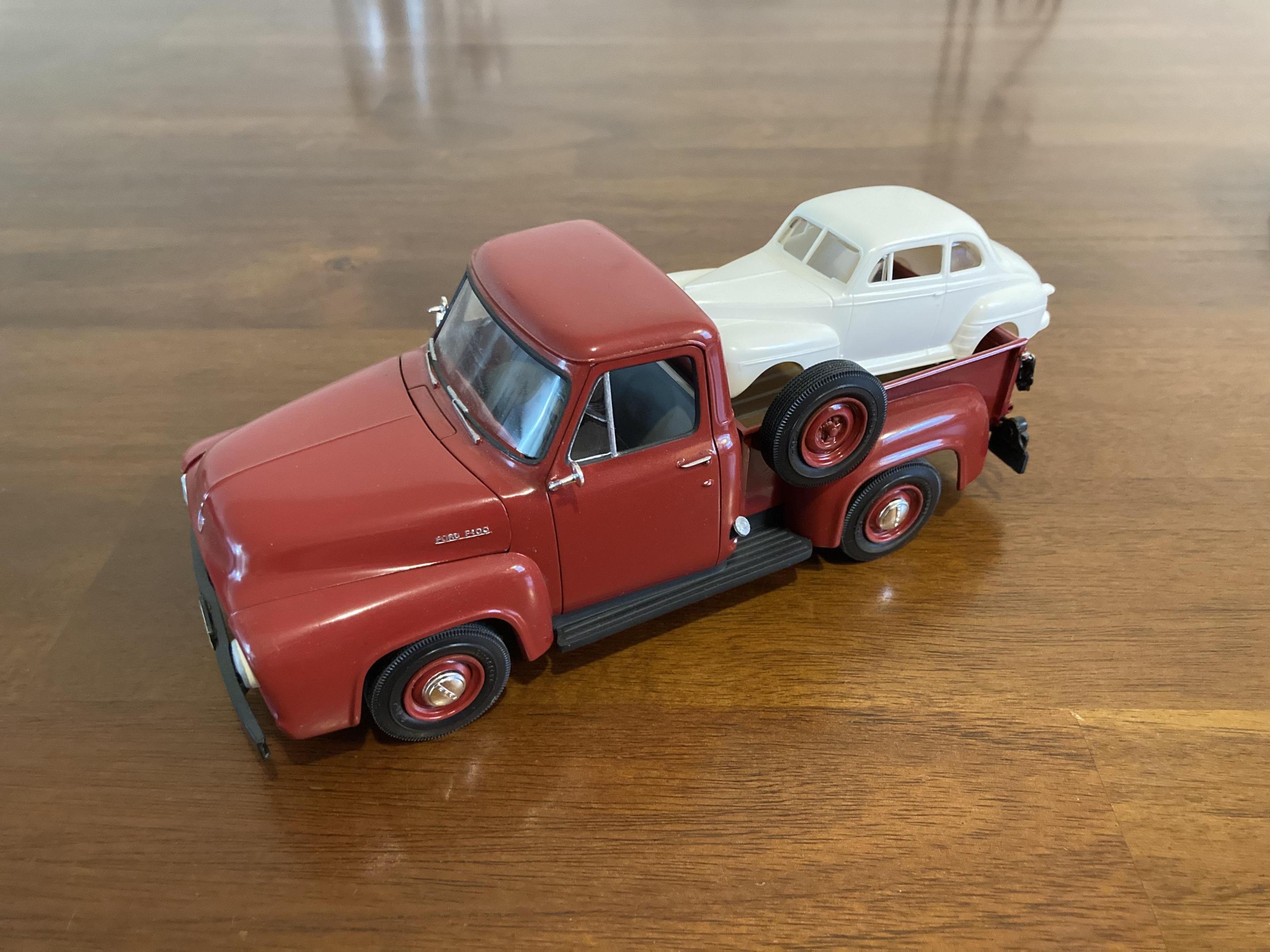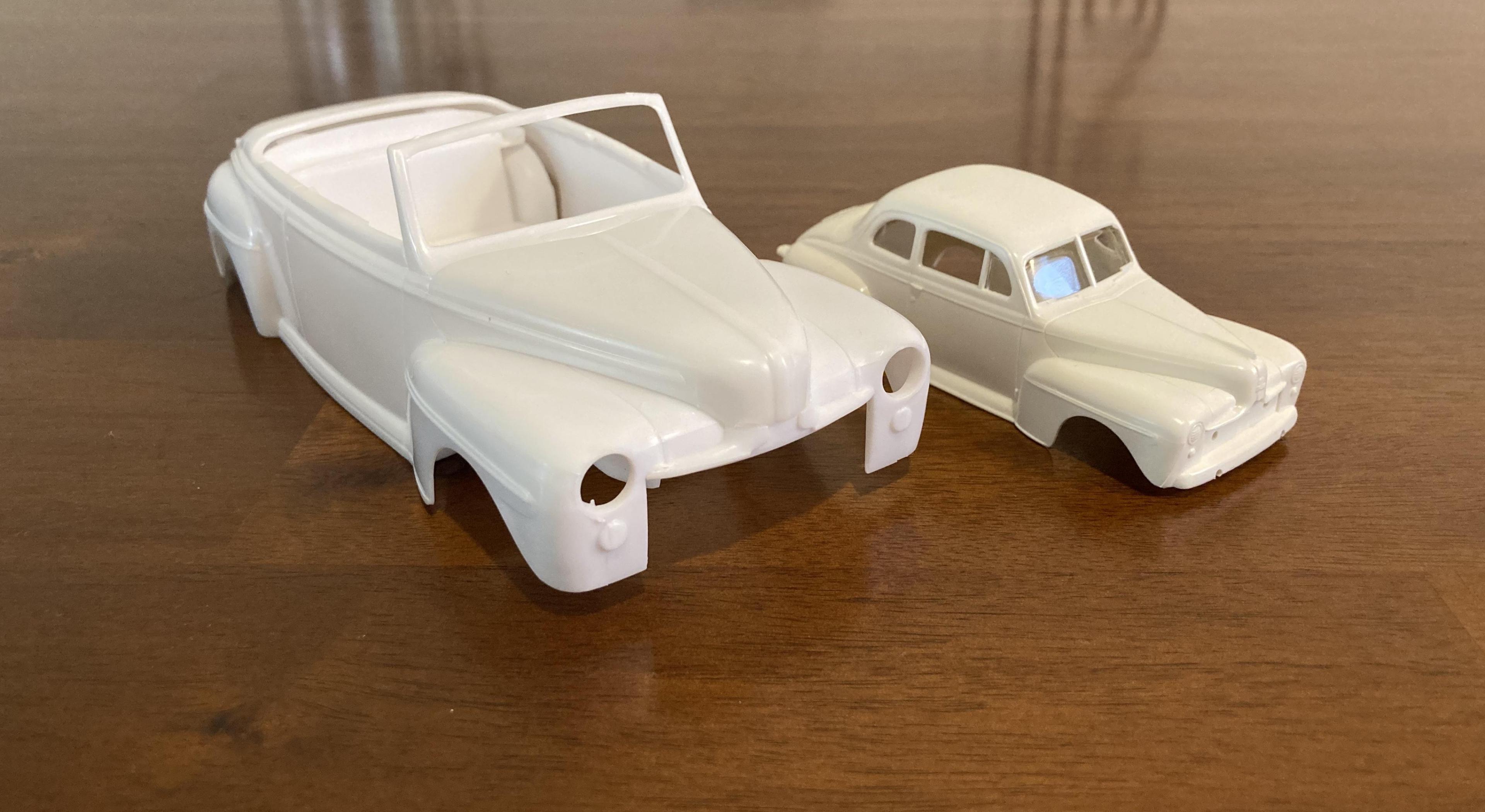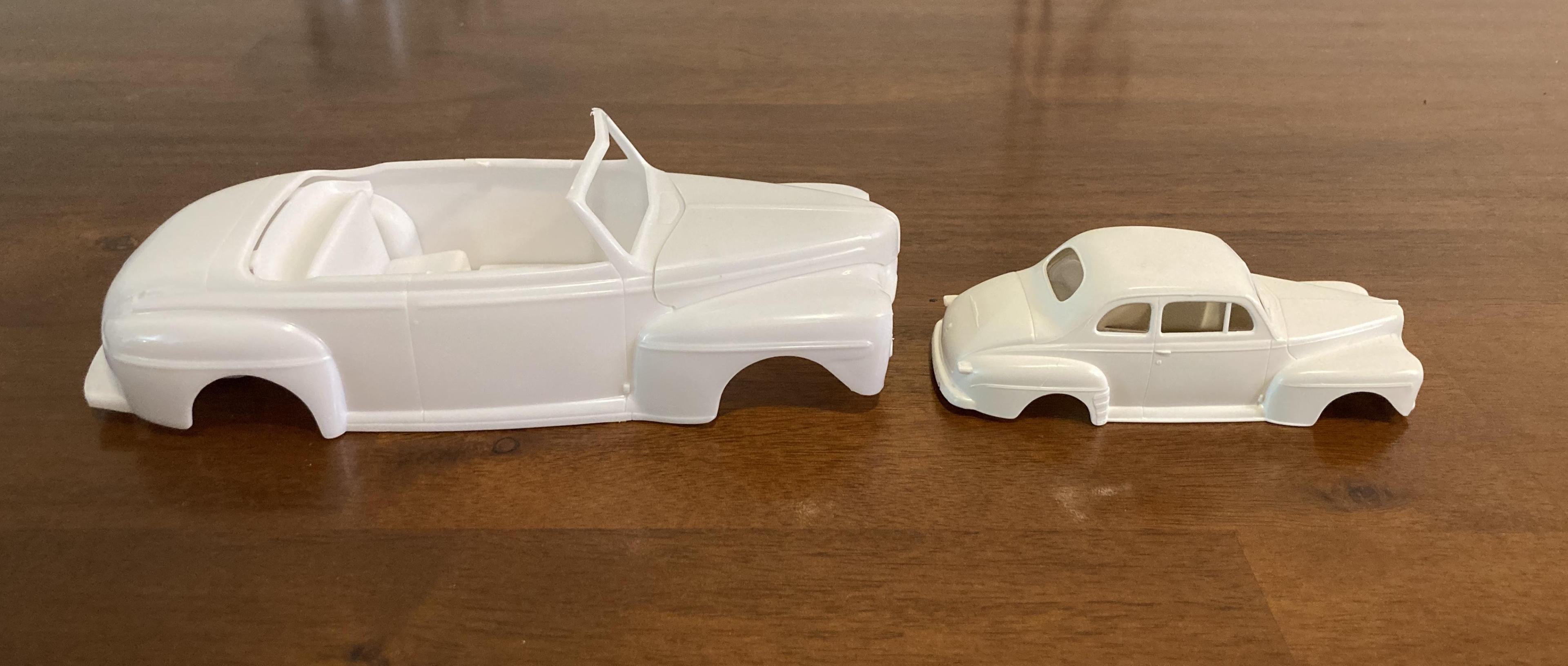 Got my 1:43 Ford in the mail today. You guys are correct, it is just over half the length of a 1:25 car. Not big enough to be a dwarf car, but not small enough to be a pedal car. Included in the photos is the Revell 1:25 ‘48 Ford convertible for scale reference. It doesn’t quite fit into a pickup bed either.