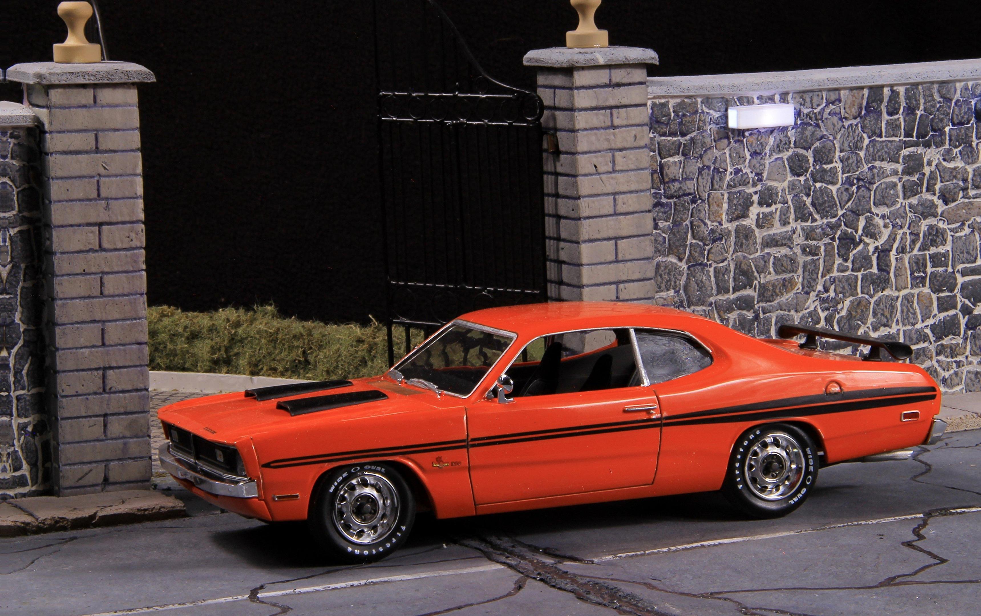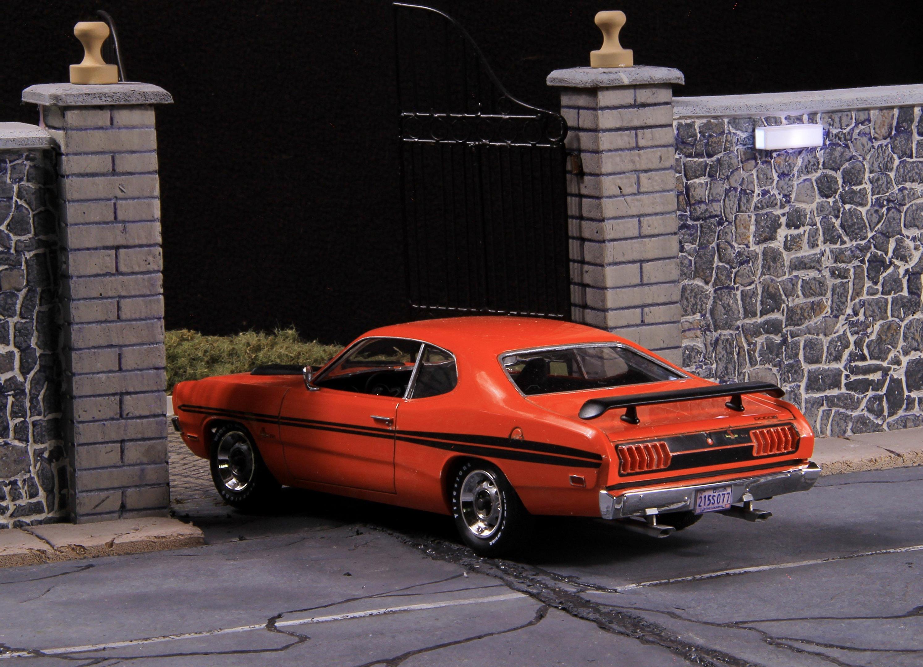 24. Really glad they brought back this one. I always preferred the demon over the Duster(just a personal preference since they are basically the same car). I toyed with the idea of using the Duster chassis and engine but I would have to buy another kit so I just went box stock. Fit is generally good , my only gripe is the decals, too thick for my tasted especially the rear around the tail lights was a pain. Not my greatest work but overall , a good shelve project and a nice companion to the duster. Thanks for the time.