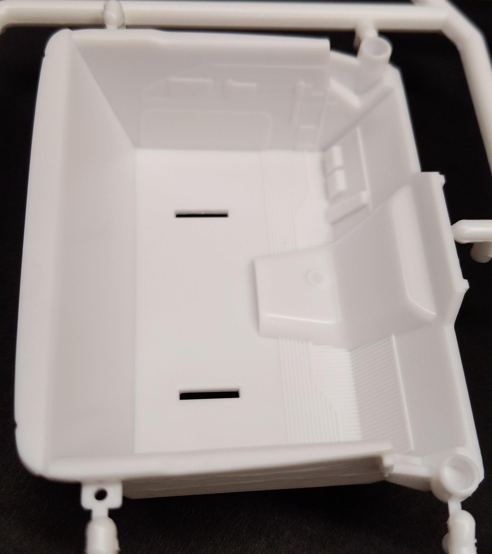 I'm a little late to this party, but I picked up this kit today and was very impressed with the contents. Not so much the parts count and specific parts, but rather the design and engineering of the kit as a whole. There are small, petite tabs and locating pins all over to ensure correct, positive alignment of parts, and the tolerances between parts is a beautiful thing to behold, especially with how the separate bed floor and interior tub mate to the body shell. Love to see this kind of attention to detail. βΊοΈ The "chassis"/floorpan is an excellent fit inside the body, shell, too: That is one loooooong body: