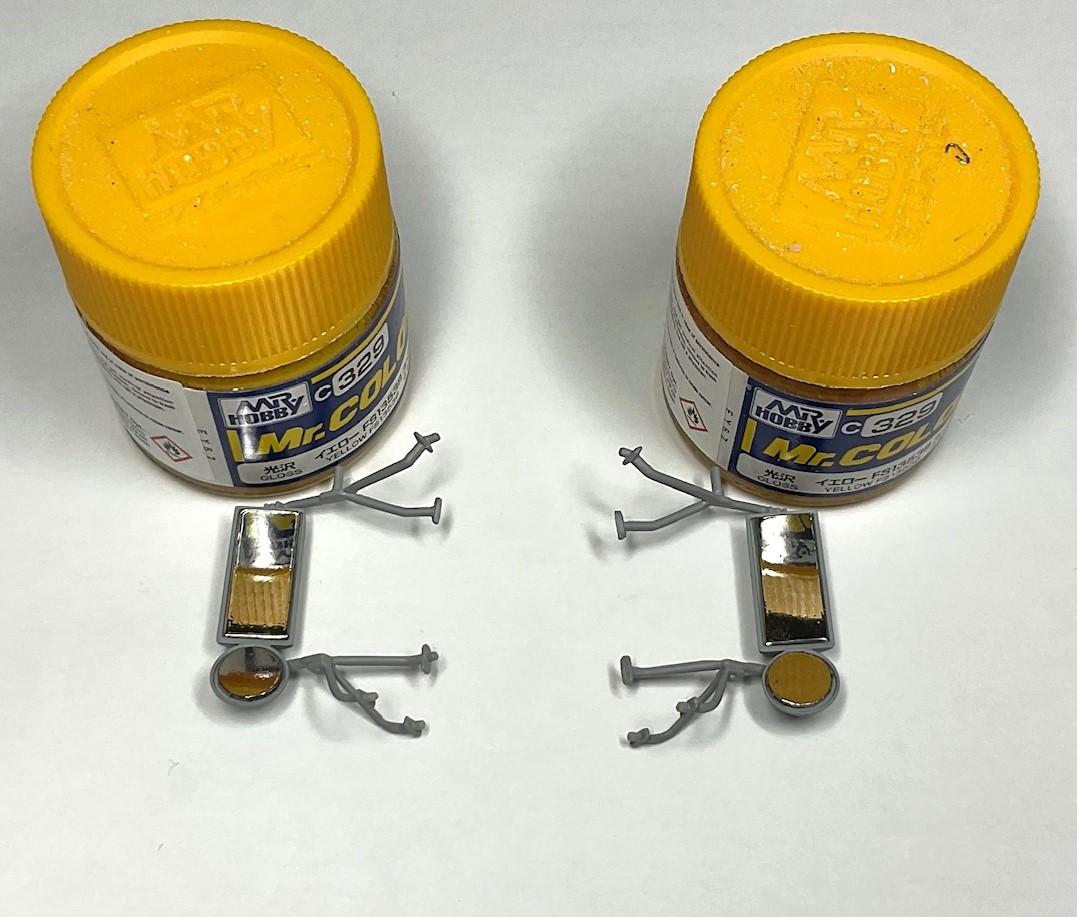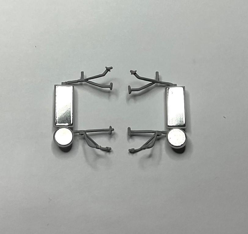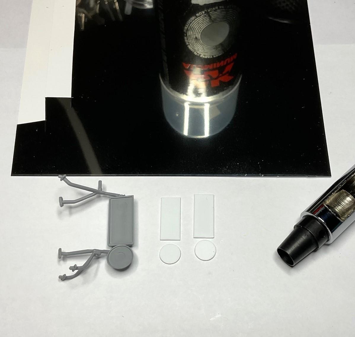 I did do some chrome testing yesterday - at the moment, I don't know what to think. My testing was hardly rigorous, and right now, not sure which product I'll use. I apparently have to wait a few cure days, before checking out hardness of finish, or if clear coat is needed, etc. I have one more product to test later this afternoon, more cure time for that, and see how it all turns out. Nothing really 'doing it' for me at the moment! More work today, though, on the little stuff. Yesterday, had to repair a small bit on the air cleaner, that the primer showed up glaringly. Did second coats of primer on some parts, including the cleaner, earlier this afternoon. But the most work today, apart from a trip to the hobby store, went into attempting those cab mirrors I mentioned awhile back. Always fun to poke around the hobby store - something always turns up that section that doesn't have high turnover, sometimes a bit of dust on things, and that I never get completely through on any one visit. Found some mesh that is smaller than the Braun screen, and would have been a better scale fit for the air cleaner, but good to go for the next project! - Air cleaner ready for chrome - Dug out some of that Tamiya Mirror Finish film, and a leather punch that worked for making the round mirror backs out of 0.25mm styrene - Laid the mirror backs on the film, which is sitting sticky side up - The film picks up every little imperfection in the underlying surface, but still looks better than the chrome paint alone would have, in my opinion! Better shot of the film reflectivity - Still undecided about the chrome, but this indecision can't continue. Like I said before, I've never used chrome paints before, so there is a high probability that I'm not using/applying them correctly. Regardless, will have to pick my poison and go with it, and soon. Hoping the test this afternoon turns out better. -