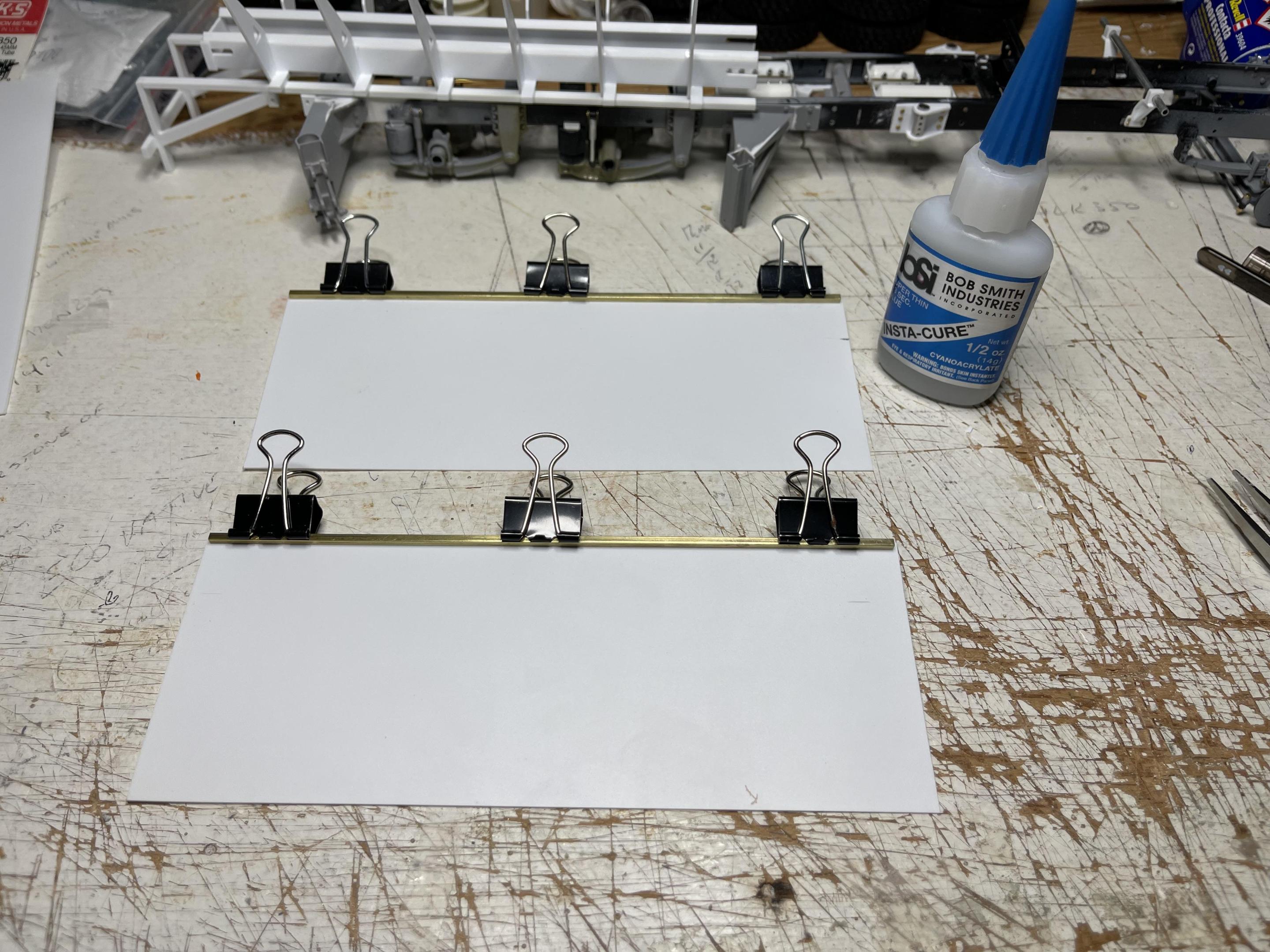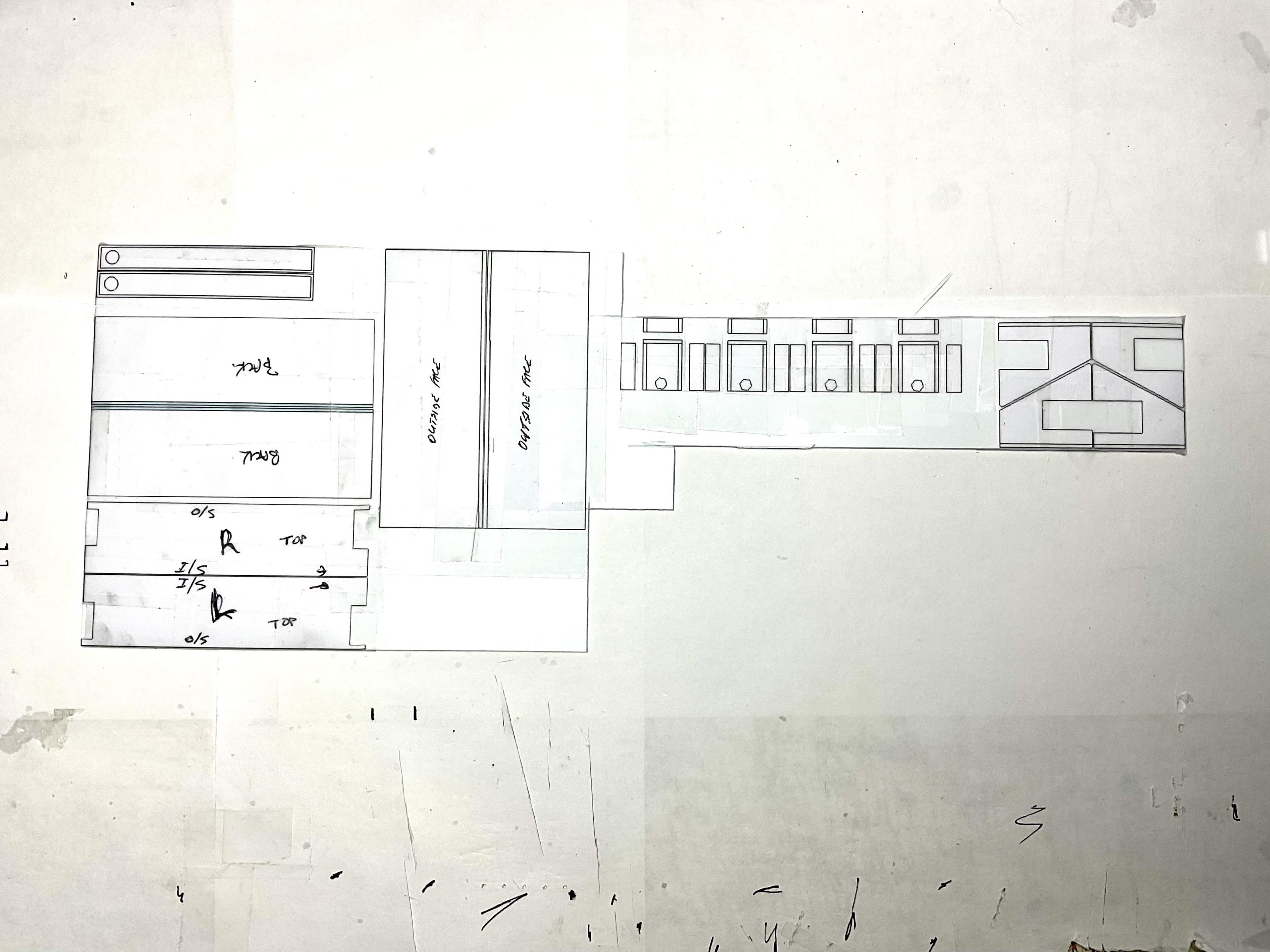 After setting the plows aside for safe keeping, continued work on the sander (some work had been done on the sander frame earlier in the build and then set aside); built the sand conveyor frame; added sander body ribs and sander side and end body panels; cut out and assembled pieces for sander chute and spinner; added fenders and fender braces to sander frame; laid out some parts and a drawing for the sand conveyor building sand conveyor frame - clips are holding strips to sander sub-frame, to align conveyor frame front to back sander body ribs cut out and installed - cut outs in ribs on passenger side are for future hydraulic hard line runs to the sand conveyor, sand spinner and the pre-wet liquid pump again, noticeable to many, the pictures of the truck frame don't match with progress posted in earlier pics - tried overall to present pics separately, for different portions of build, but I did go back and forth between various parts of the build - not always organized and often not organized at all! 0.5 mm side panels for sander hopper prior to bending into shape with steel ruler - brass square tubing keeps hopper from bulging in the center, but also simulates the "J" edge around top of real sander hopper end panels installed and joint puttied Turns out, easiest way to deal with the sand conveyor was to build it separately and, after painting, simply slide it into the opening in front of conveyor frame another round of plastic surgery with trusty razor saw, for sander chute (more patterns from Sketchup) completed sander chute and spinner - spinner hydraulic motor to be plumbed later in build. Vanes on bottom of sander look adjustable but are static added fenders to sander frame and cut out fender braces braces installed quick hand sketch of sand conveyor (it is partially assembled, in front of sander) - used resin printed Decalcas motor cycle chain, from Spot Model, for conveyor chain and sprockets Thanks to all those who have looked in as well as those who have commented - much appreciated! -