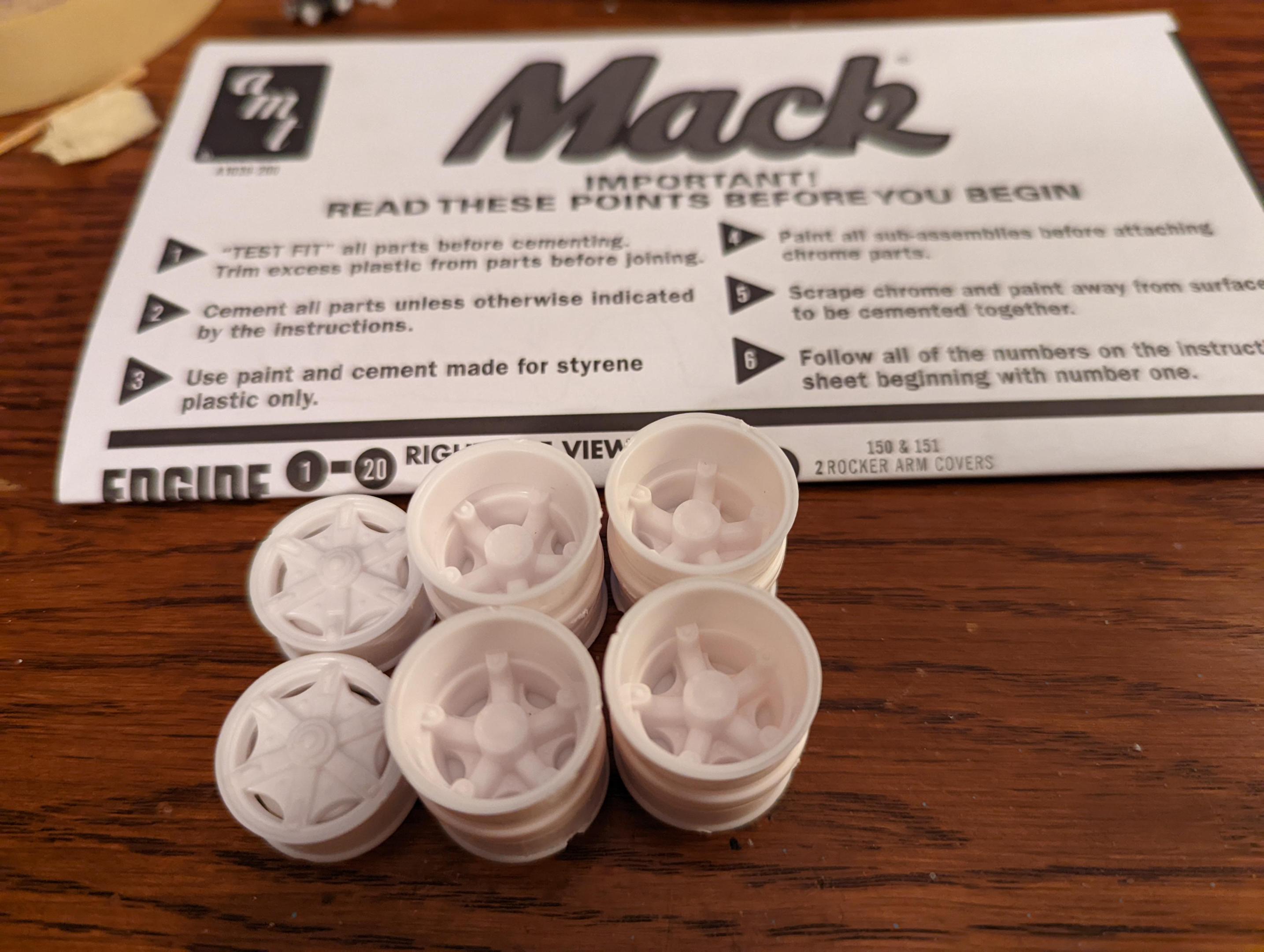 Here's my second garbage truck WIP, I picked up this R685 kit recently. This is going to be similar to Jeff's (gotnitro?) build, and a huge thank you goes to him for help with body plans. Attached is a picture of the truck I'm using for inspiration, and I might build the slightly older version of the packer body like the truck in the picture. Anyways, started assembling the wheels, engine, and interior over the past couple days. Going to start on the trash body soon. This should be fun!
