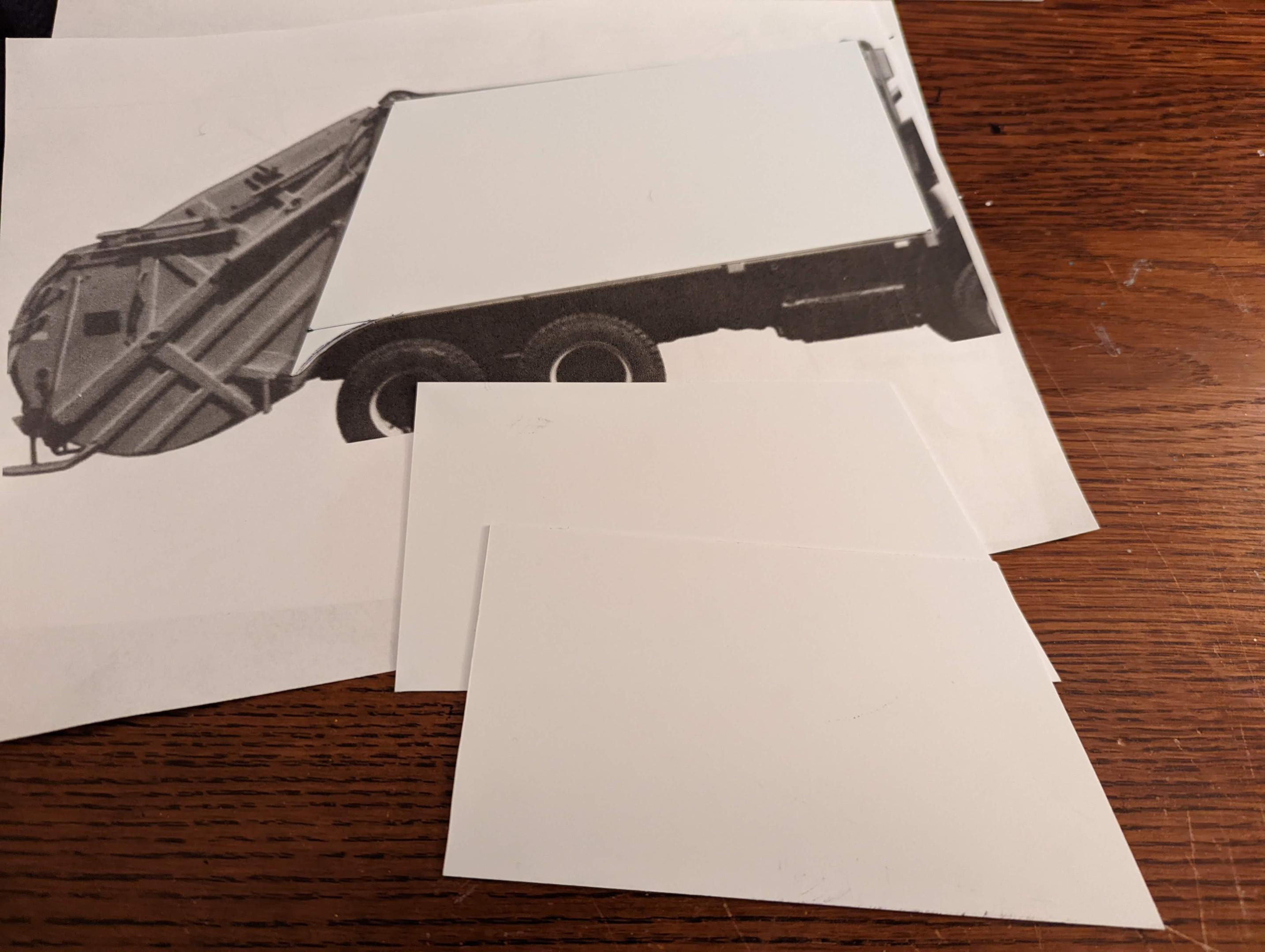 Started work on the body sides, using some 0.030 styrene I had on hand. The bottom pieces are for the Autocar build. -
