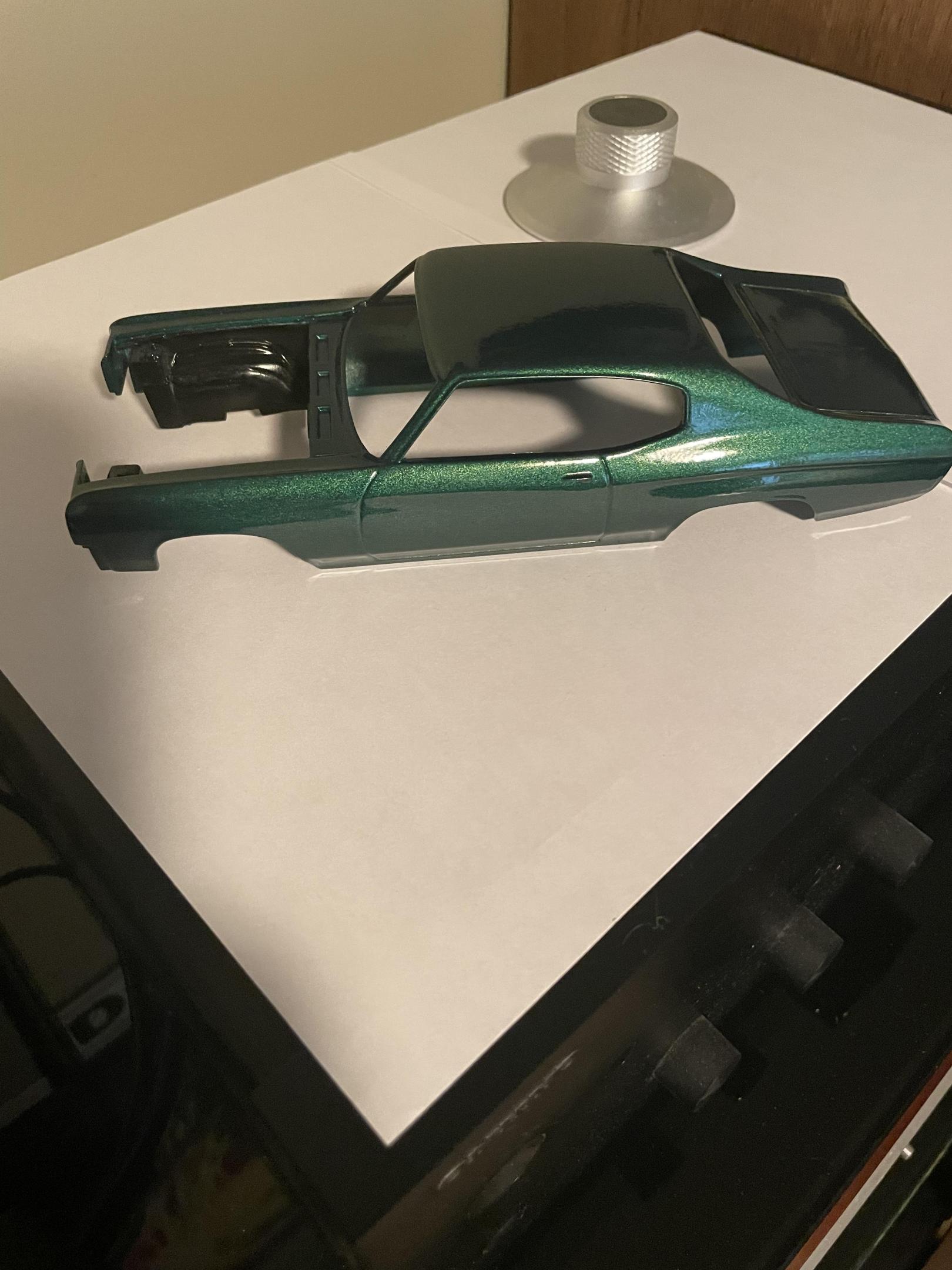 16. This was a great project, I thought the kits details were good and assembly went better than my others. The interior started really good but I used a satin clear on it and some of the black wrinkled. I used a Testors rattle can on it and I won’t be using anything from the hardware store on my bodies again, Testors or Tamiya until I can afford an airbrush… yes I’m hooked and have so many ideas for projects that I’m afraid my wife is going to kill me. Well thanks for looking and the comments, now I’m off to the GTX. Dave.