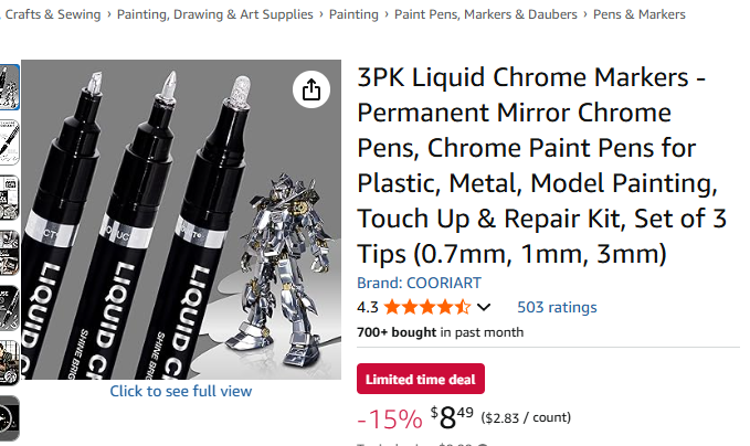 Amazon.com: San Jeirie 3Pcs Silver Liquid Mirror Chrome Markers, Permanent Reflective Metallic Chrome Paint Pen, High Gloss Car DIY Model Painting, Touch Up Repair Kit for Plastic Metal Glass Resins : Arts, Crafts & Sewing