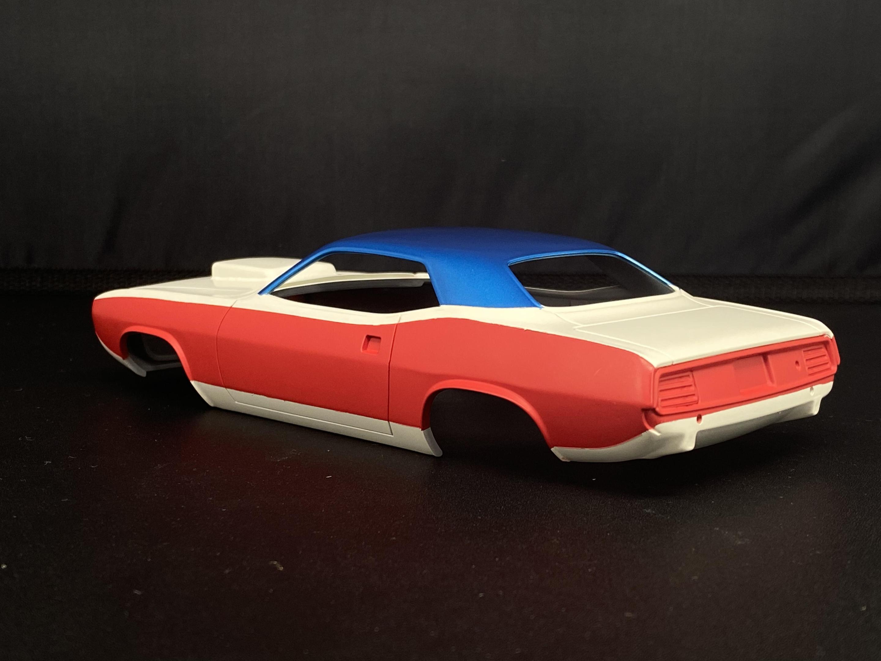 22. Body sanded, primed, again, and again, and again. Finally put down some Whimbleton White by Splash Paints. Next will be taping off for the red and blue.