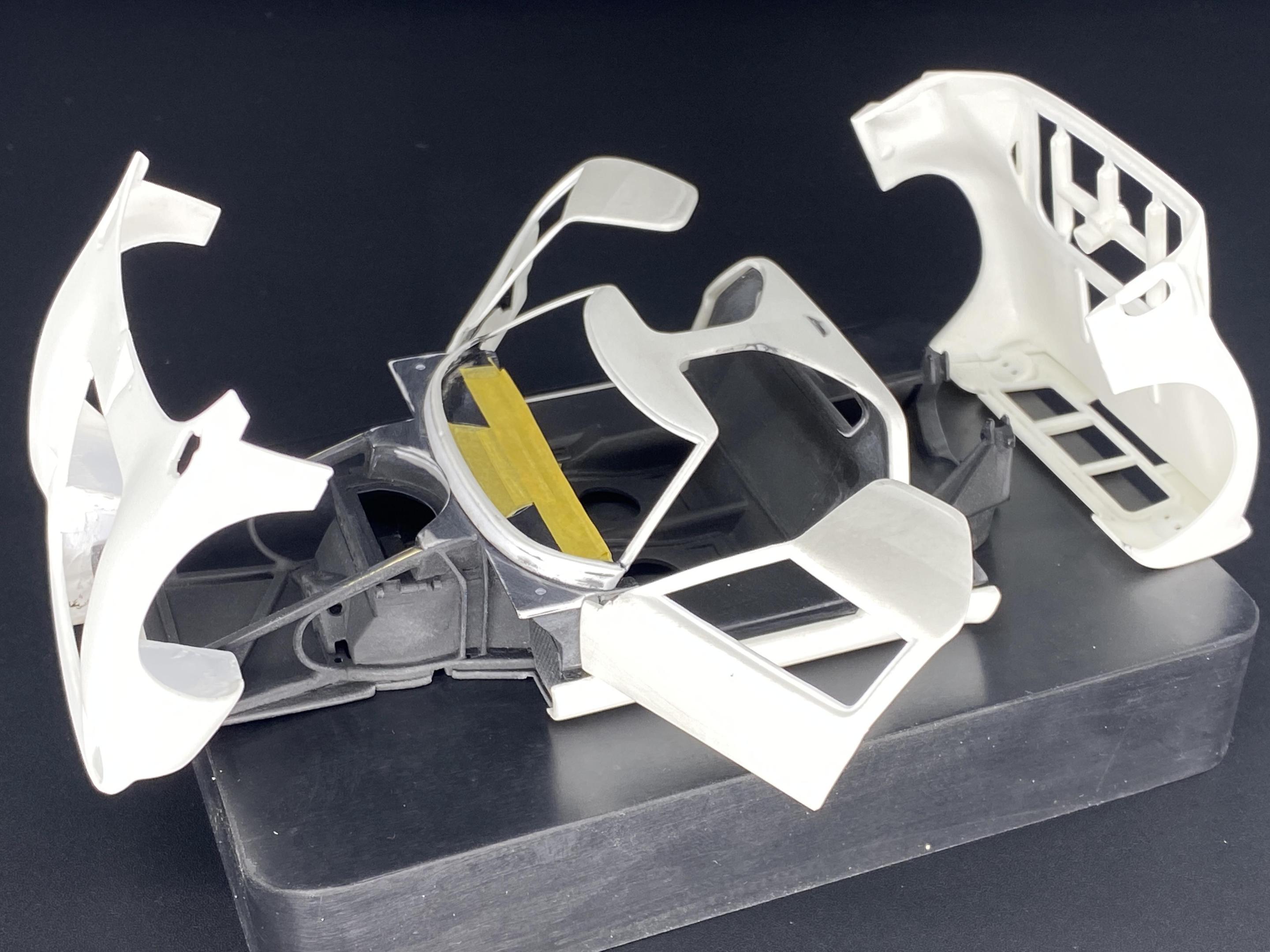 18. You’re off to a great start! This is a great kit, and with the Hobby Design detail set it’ll built up nicely. I really like what you’ve done on the lower rear diffuser! Awesome work! Fair warning, the silver kit decals for the body are a nasty mess. They crack and split if you look at them wrong. I got so far as to change the body color on mine and get after market decals. Maybe I got a bad set, maybe I need more practice on decals. Can’t wait to see what you do with this! Following!