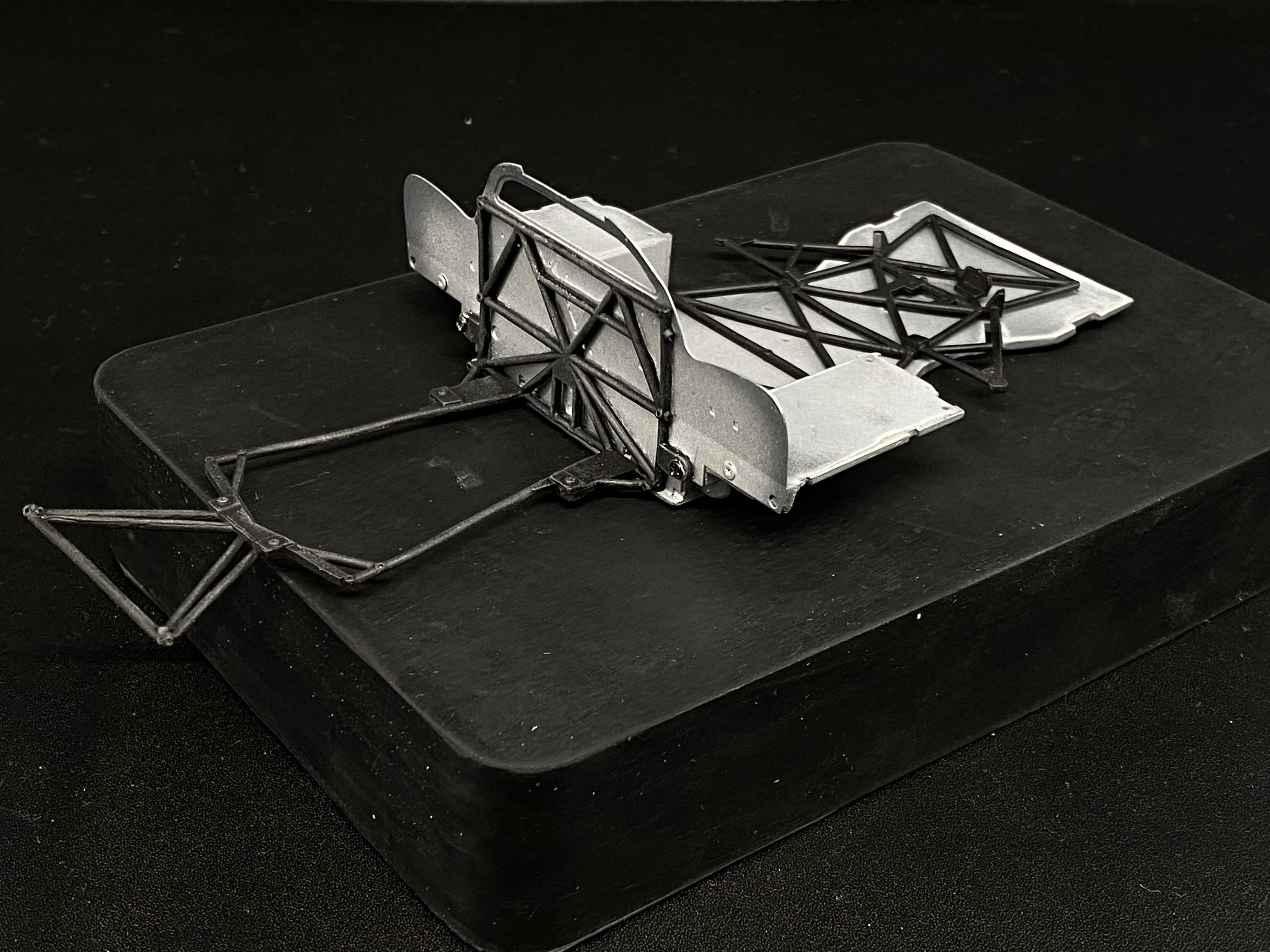 3. Good day everyone! I’ve been tinkering off and on for the last couple months but haven’t dove into a serious build until now. It’s almost been too hot to even work in the shop during the afternoon and evening hours, and with no AC it’s not really worth sitting there trying to build while sweating. This is a Model Factory Hiro 1/24 Porsche 917K, Gulf livery. I’ve been wanting to build this kit for a long time, so here we go. There are 100’s of white metal parts in this kit, many of them being the chassis and tube frame which feels like looking at a snakes nest in the box. Some bending into shape and re working the parts is required, drilling out every single hole is also required. It’s pain staking work, but once it starts coming together you can start to see the payoff. This is hours and hours of cleaning. MFH kits need a lot of cleaning up. I put all the parts in a magnetic tumbler, after three rounds using progressively smaller mm stainless steel media rods, the parts come out polished and clean. The major flash still needs clean up but the tumbler definitely saves multiple hours of sanding and prep. After usually just two washes they come out pretty clean and ready to go.