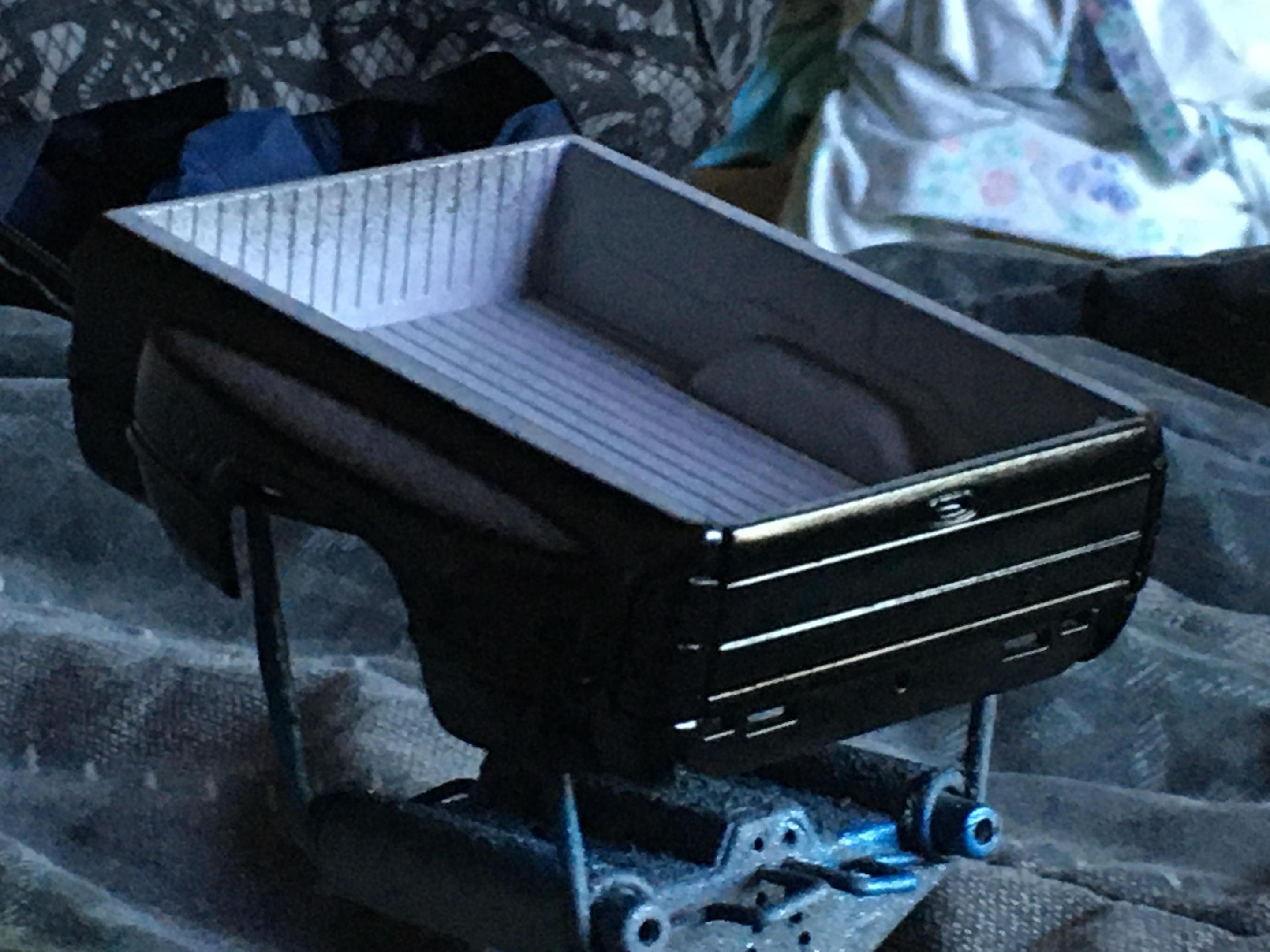 I’m calling the chassis hood, for the stretching. Thinking about replacing this molded in spare with a actual wheel and tire, not sure though. -