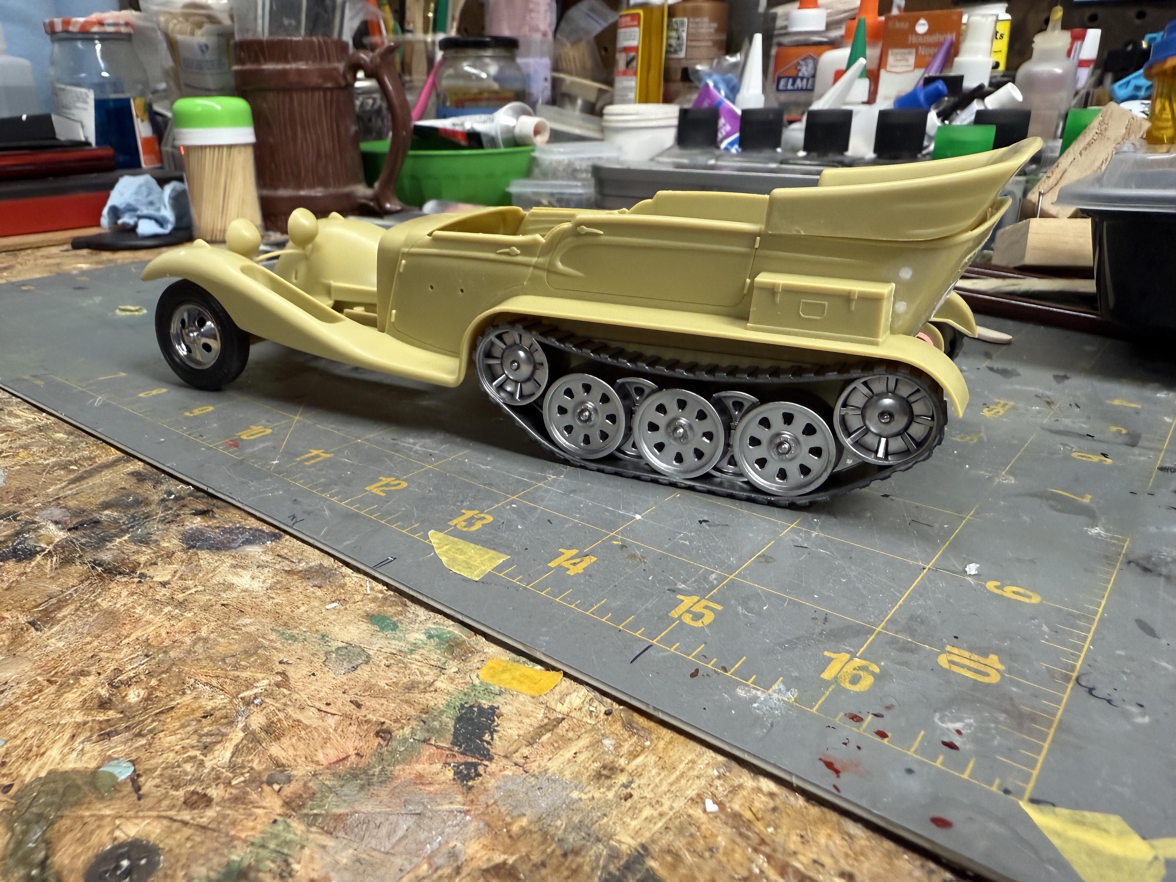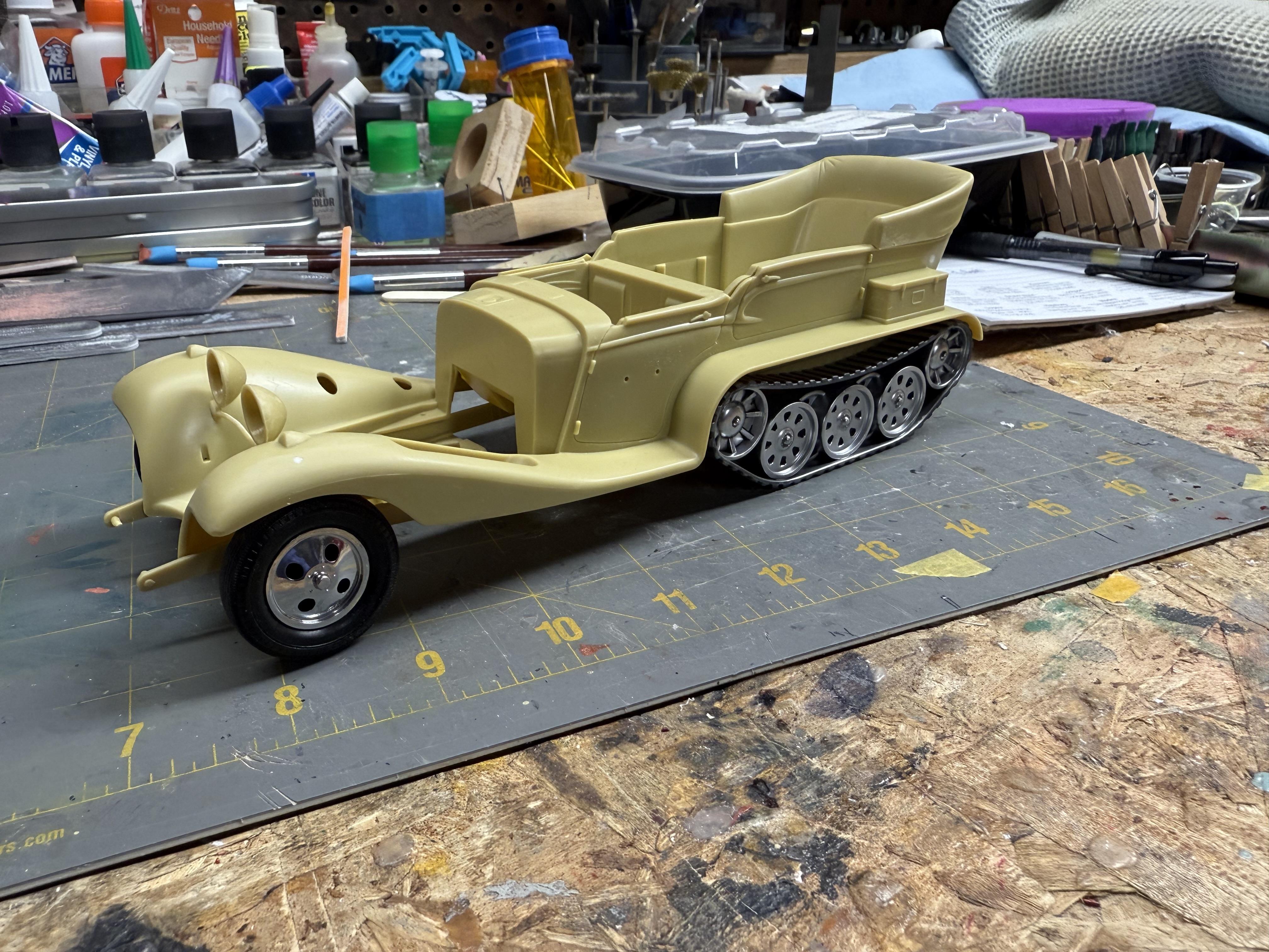 Here we go on my Christmas 2025 build! Santa must have something that can get him through the Lake Effect Blizzards we get here in Buffalo! So what better than a WW2 Half track. So it looks like a Rommel Rod is the perfect starting point. That in-line 1939 Mercedes engine is cool and some Jimmy Flintstone figures for a bit extra. Less than 10 weeks to get her done for the big man!