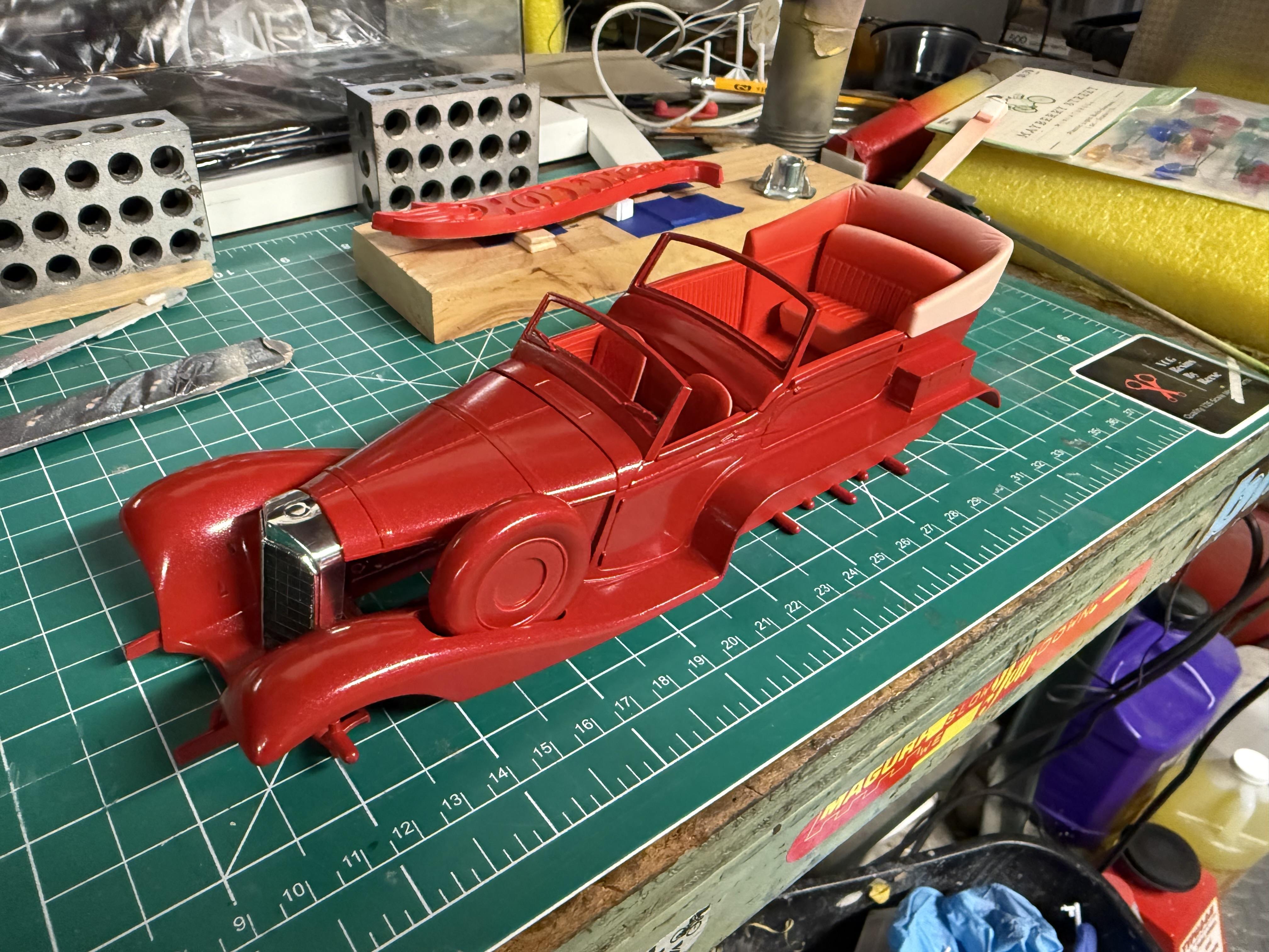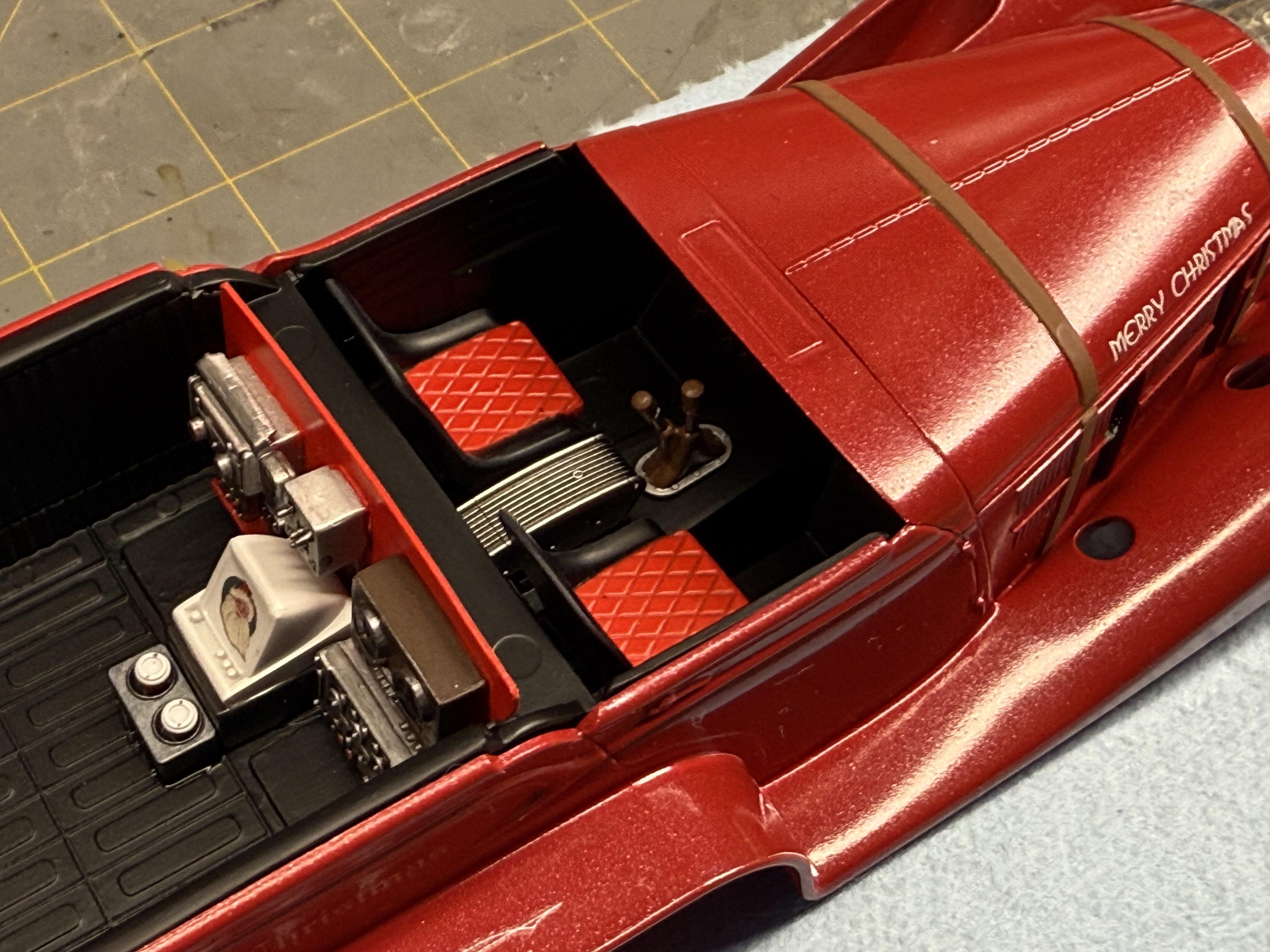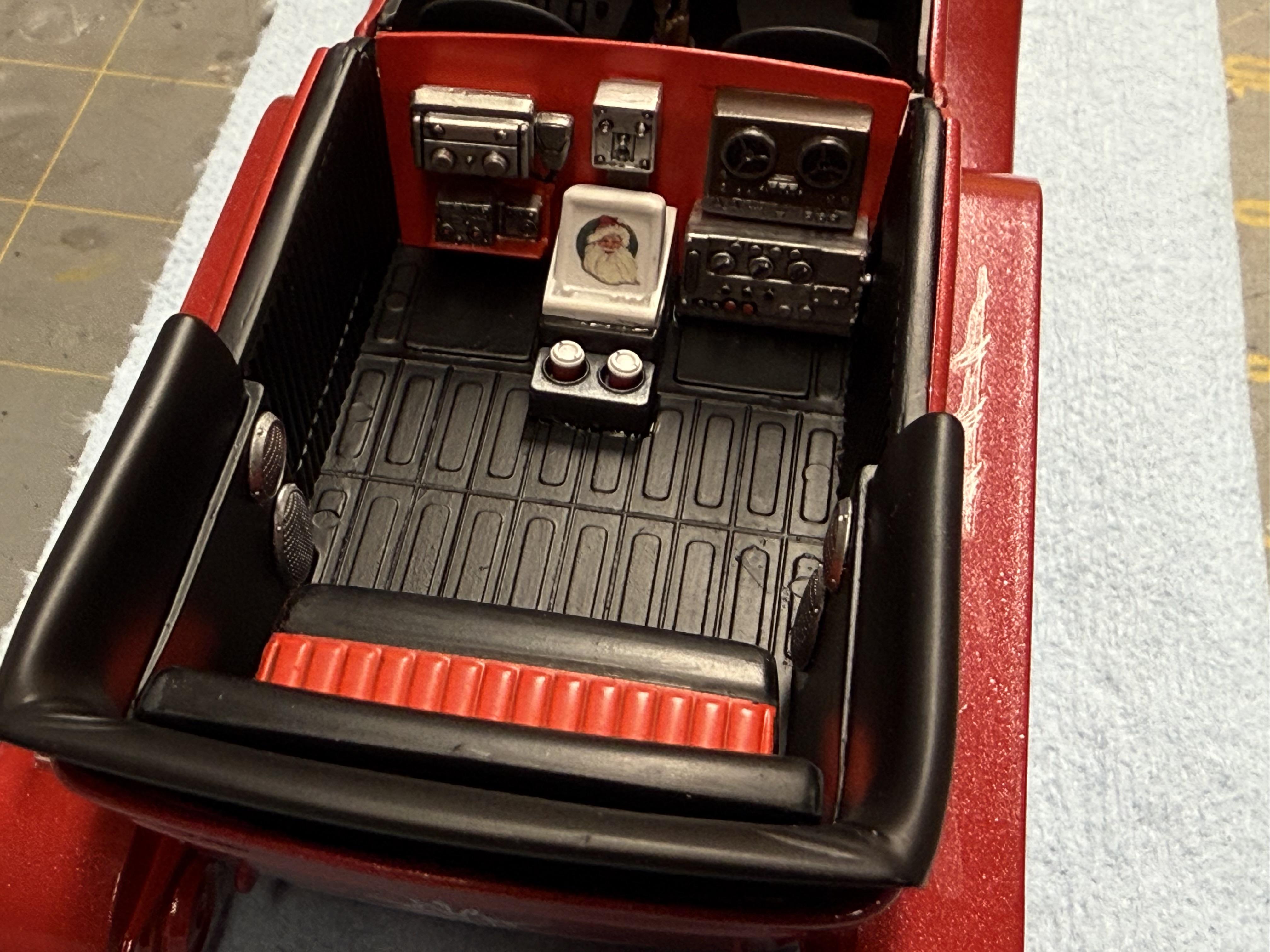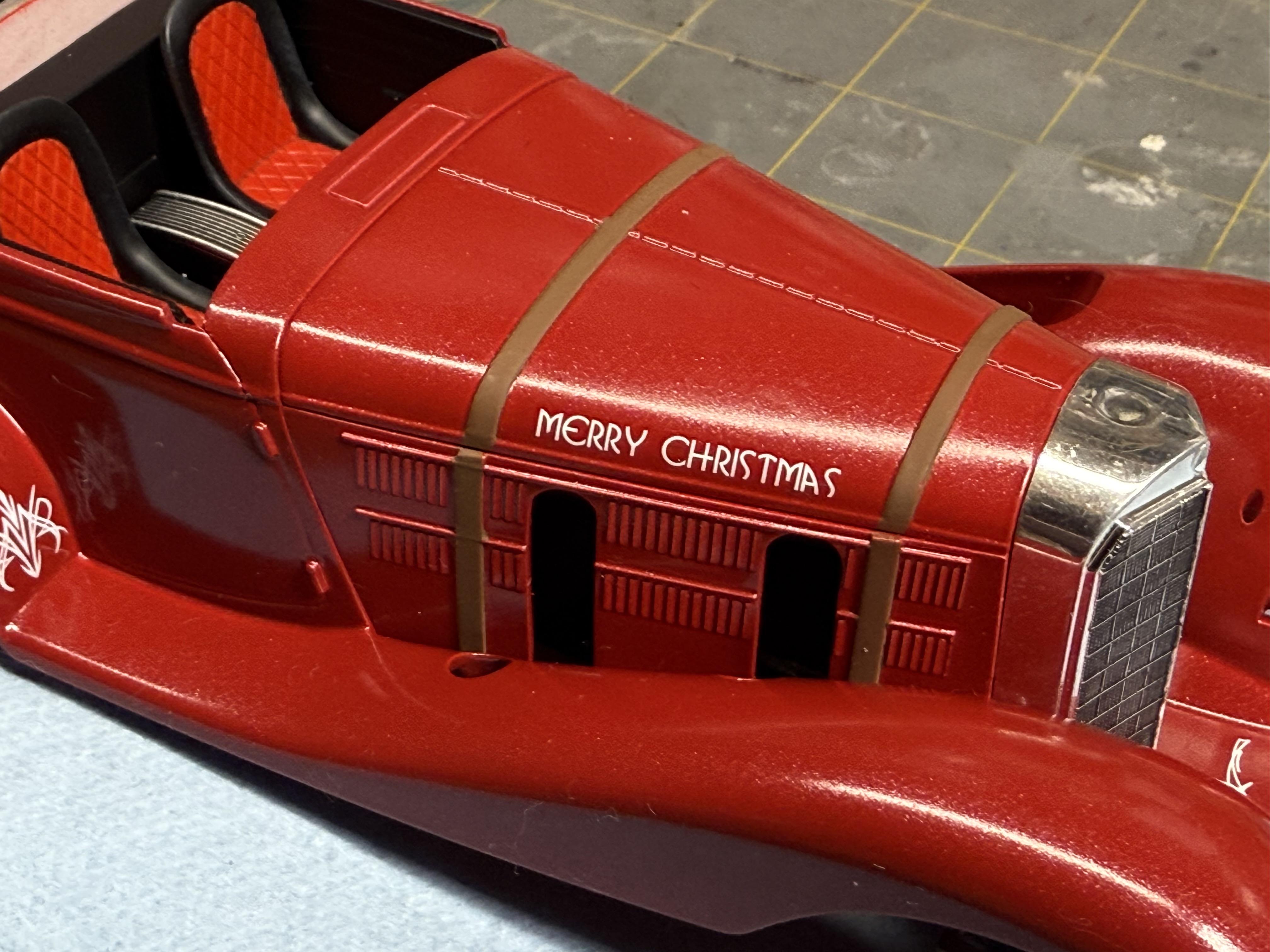 Base red is done, now wet sanding and then a pearl clear. A long way from done, but closer to the big night! Santa needs his ride! -