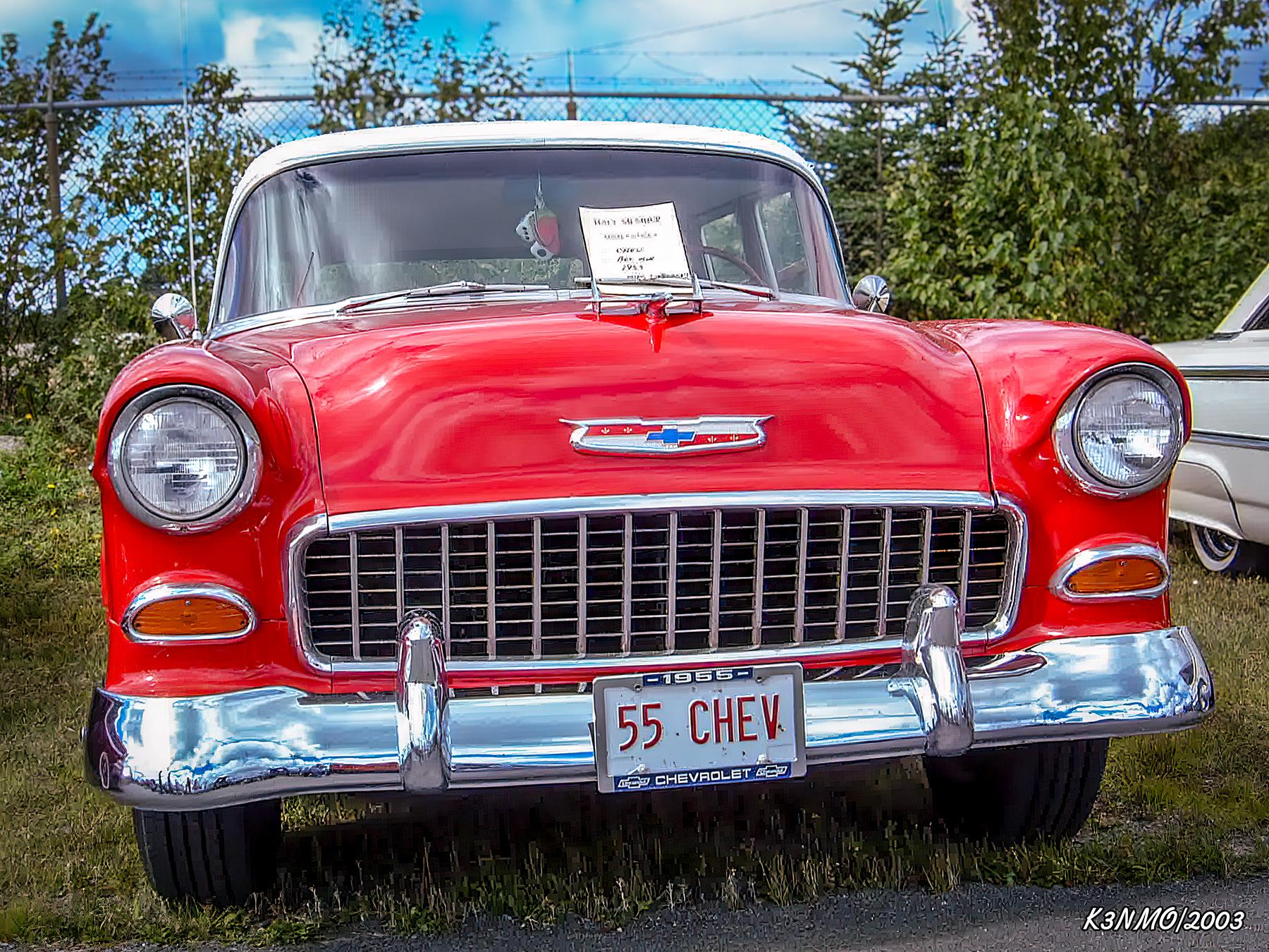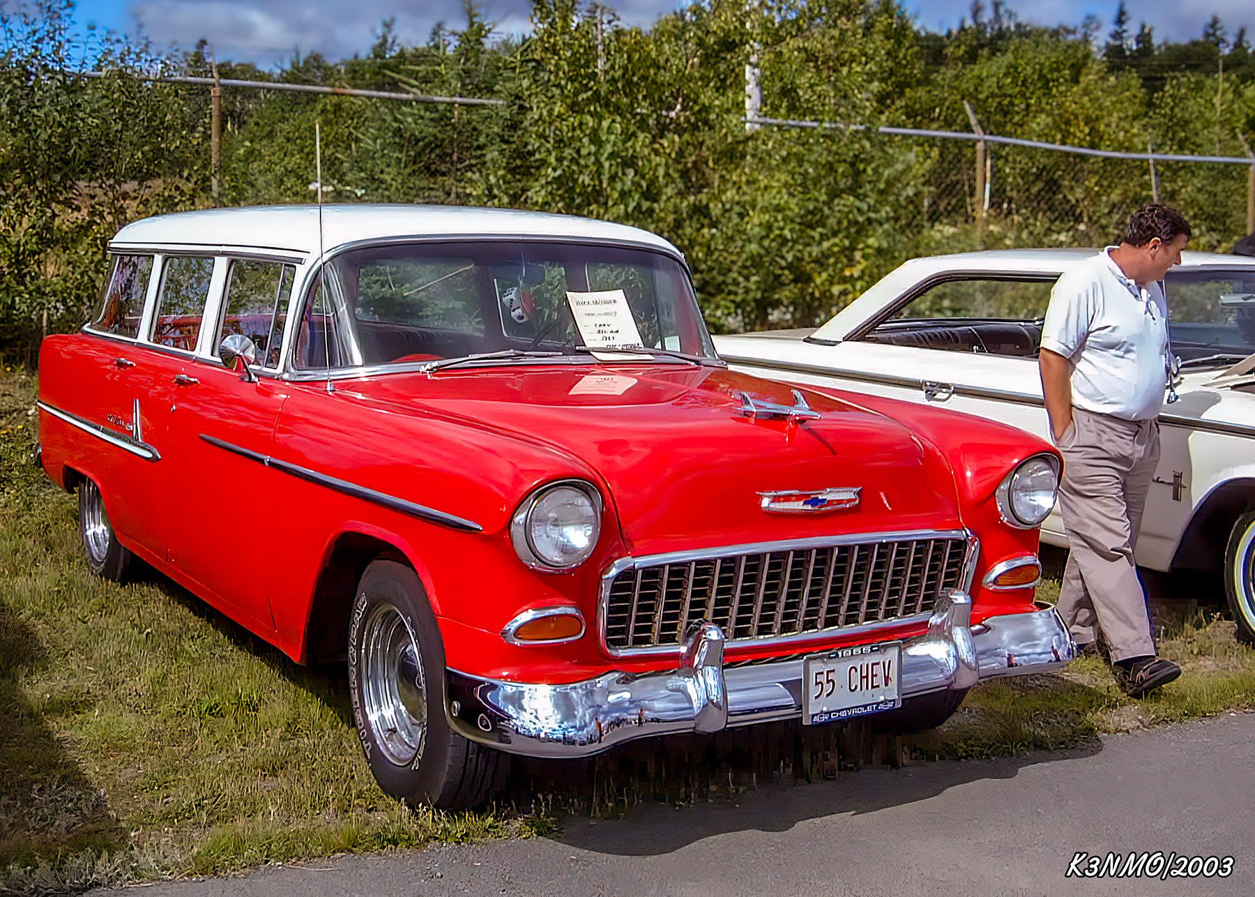 1. Here is a photo I took in 2003 of a real 1955 Chevy Bel Air 4 door wagon...Parked too close to the gate to get any rear view photos...