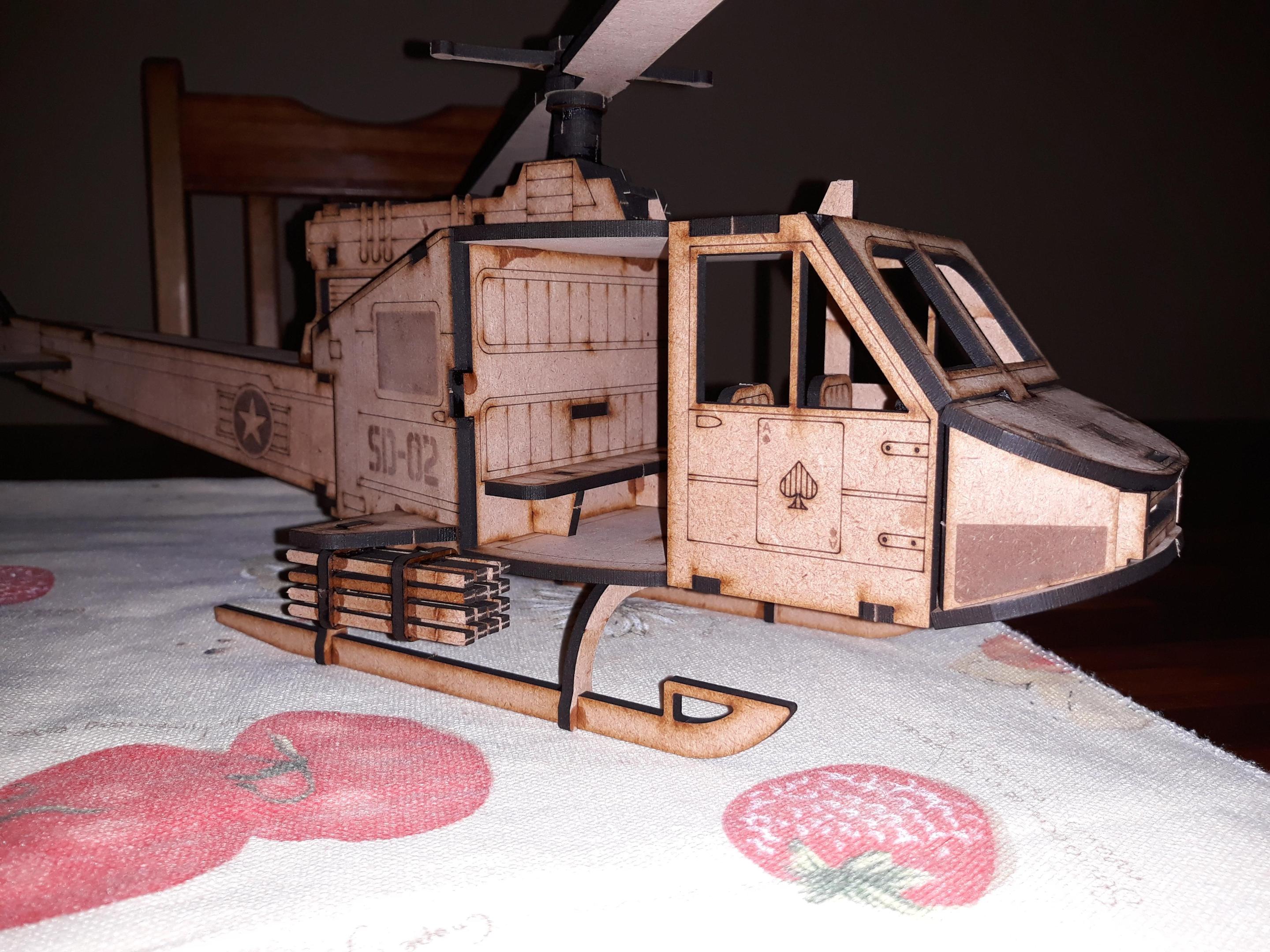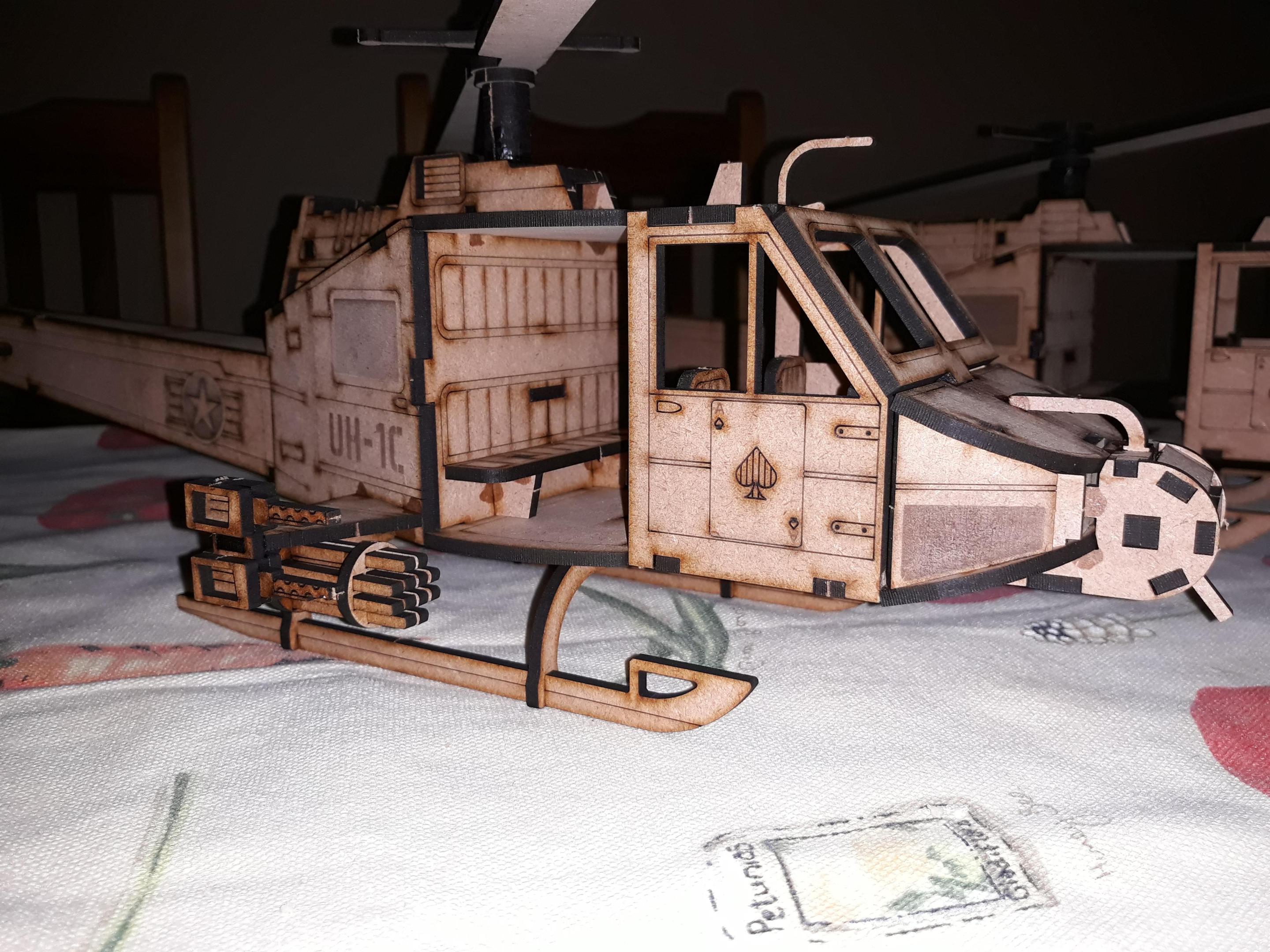 Here my Huey Gunship, actually my first model I created. Ended up with actually quite a few variants before getting to what I liked.