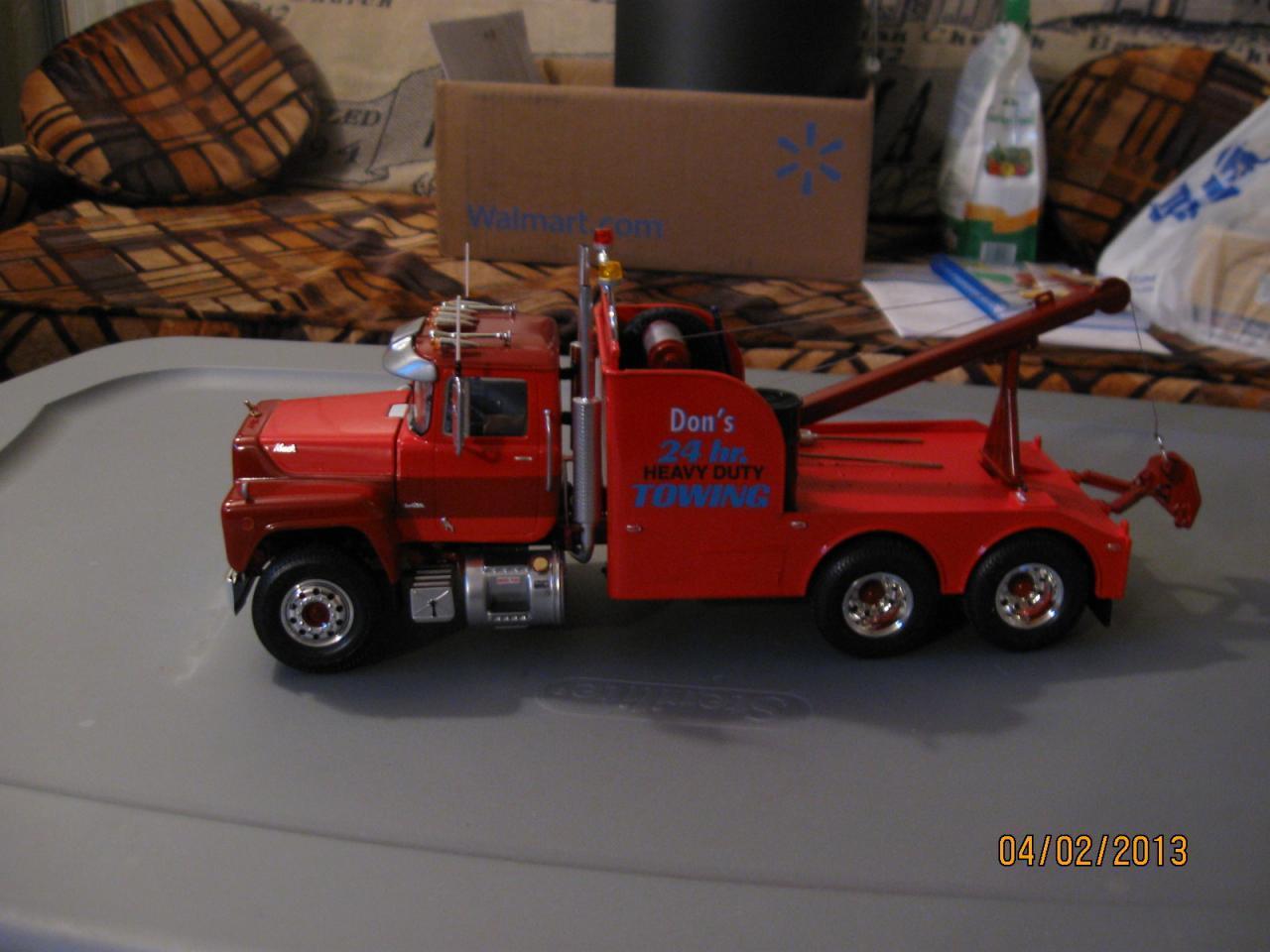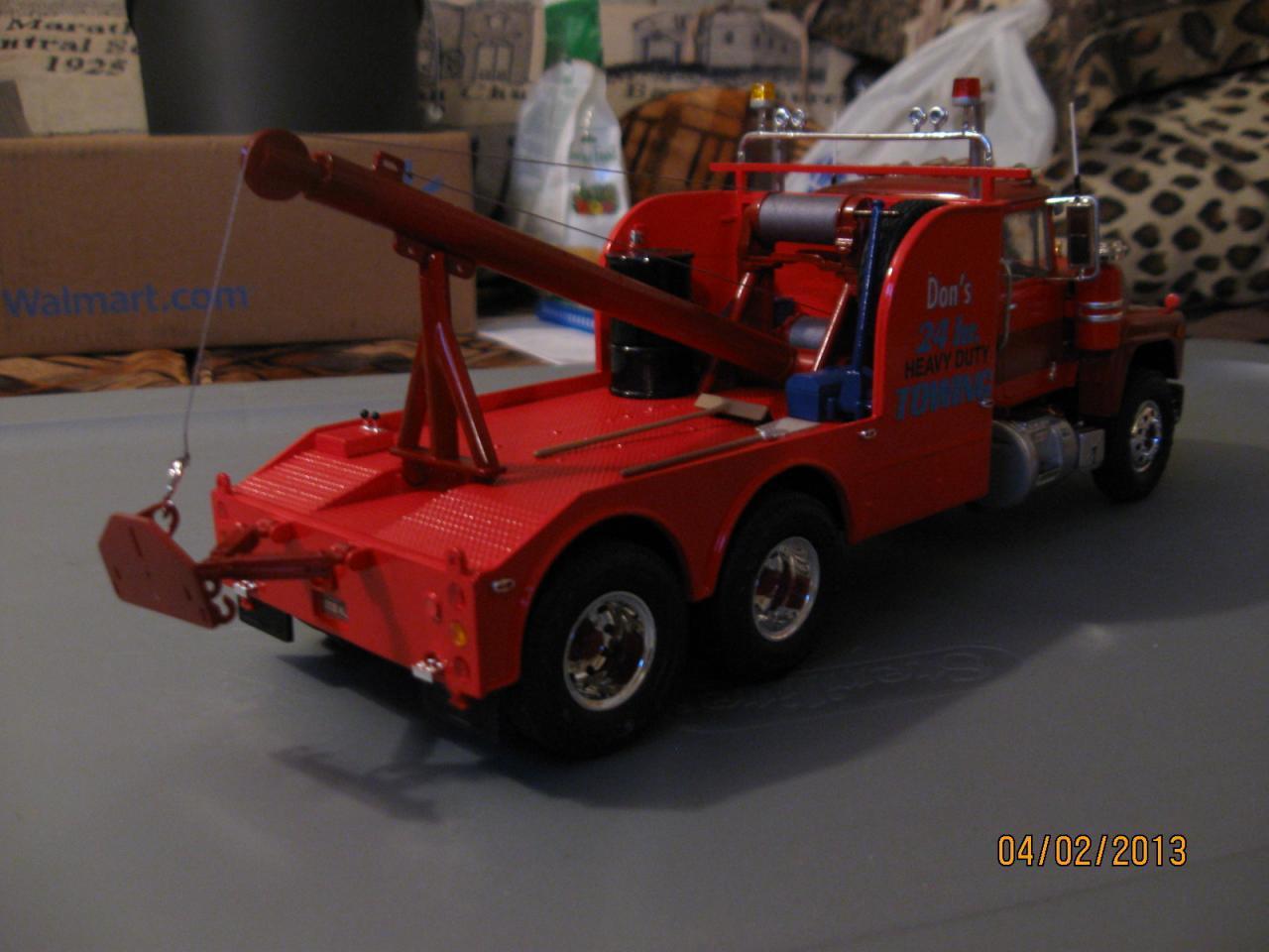 A couple of years ago I built one of the AMT PETE wreckers and I found some information out about the wrecker and wrecker body on "TIMS TRUCKS" website. He has a little bit of info about them and some photos of the AMT wreckers that he had built. I looked and the photos etc. are still on his site. Tim says that the wrecker is a HEINZ Big Stick Wrecker and the wrecker body was made by "SOUTH UNION BODY WORKS", If you search around a bit through his website you will find it. (I put the wrecker unit on and AMT R 600 MACK) JARRNO88 -