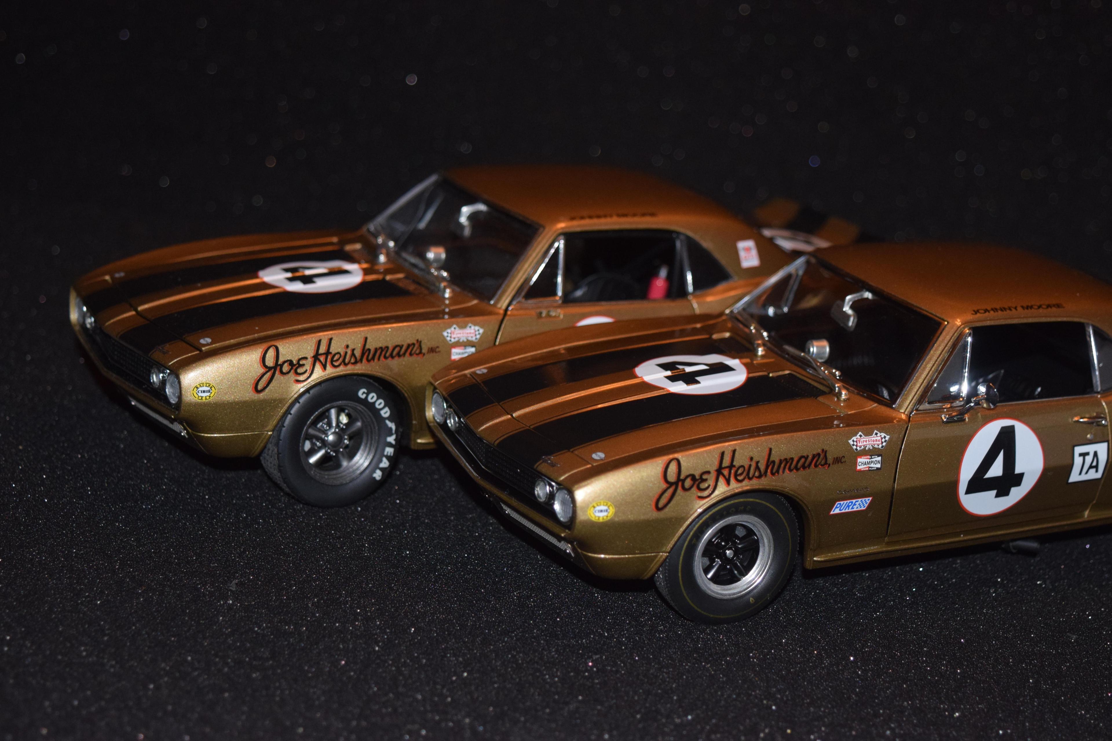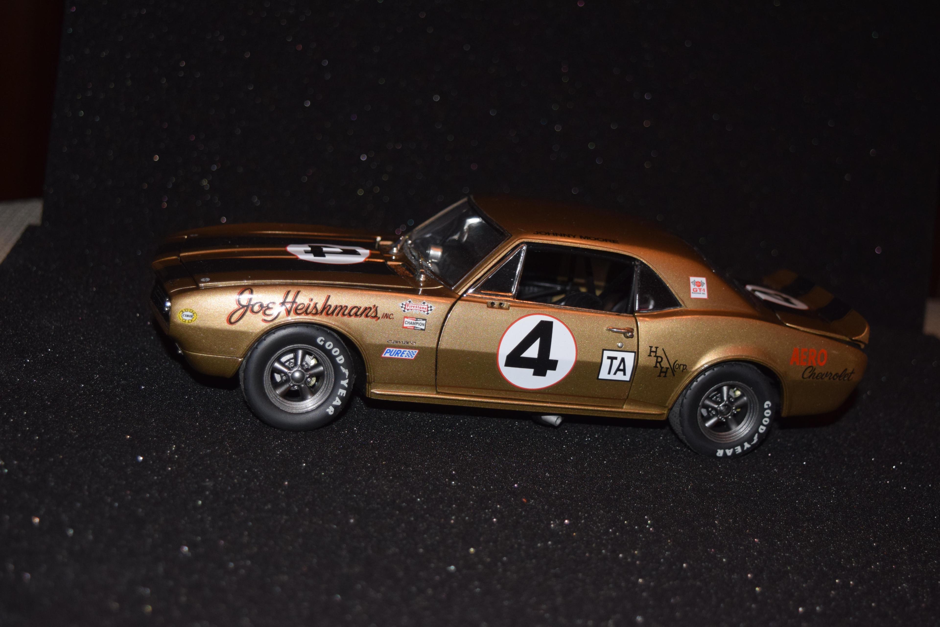 Following the history of the car on the box, basic streetcar when first raced, then used another race Camaro for the chassis combined the two.  A fair amount trimming and cutting was done.  The rear valence didn't get back on because the chassis is diecast and the fuel cell sticks out too far.  The trunk doesn't close right now.  I have fiddle with the fuel filler to get it to close.