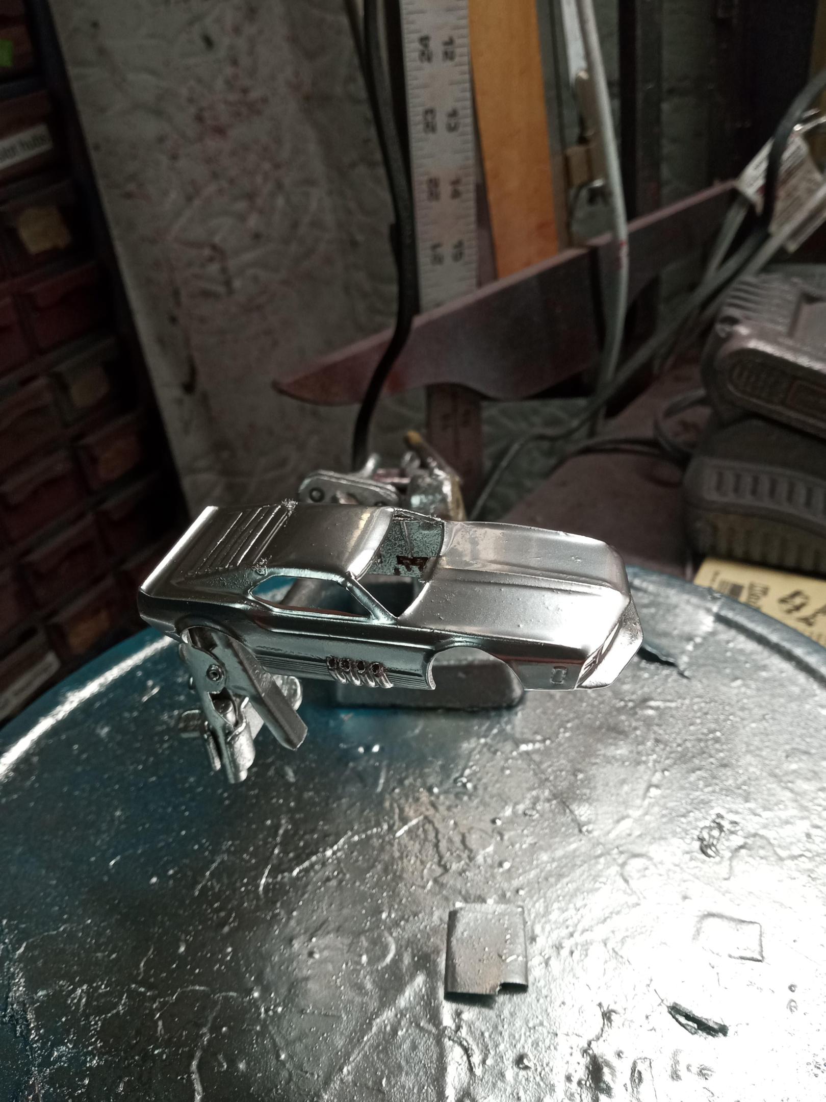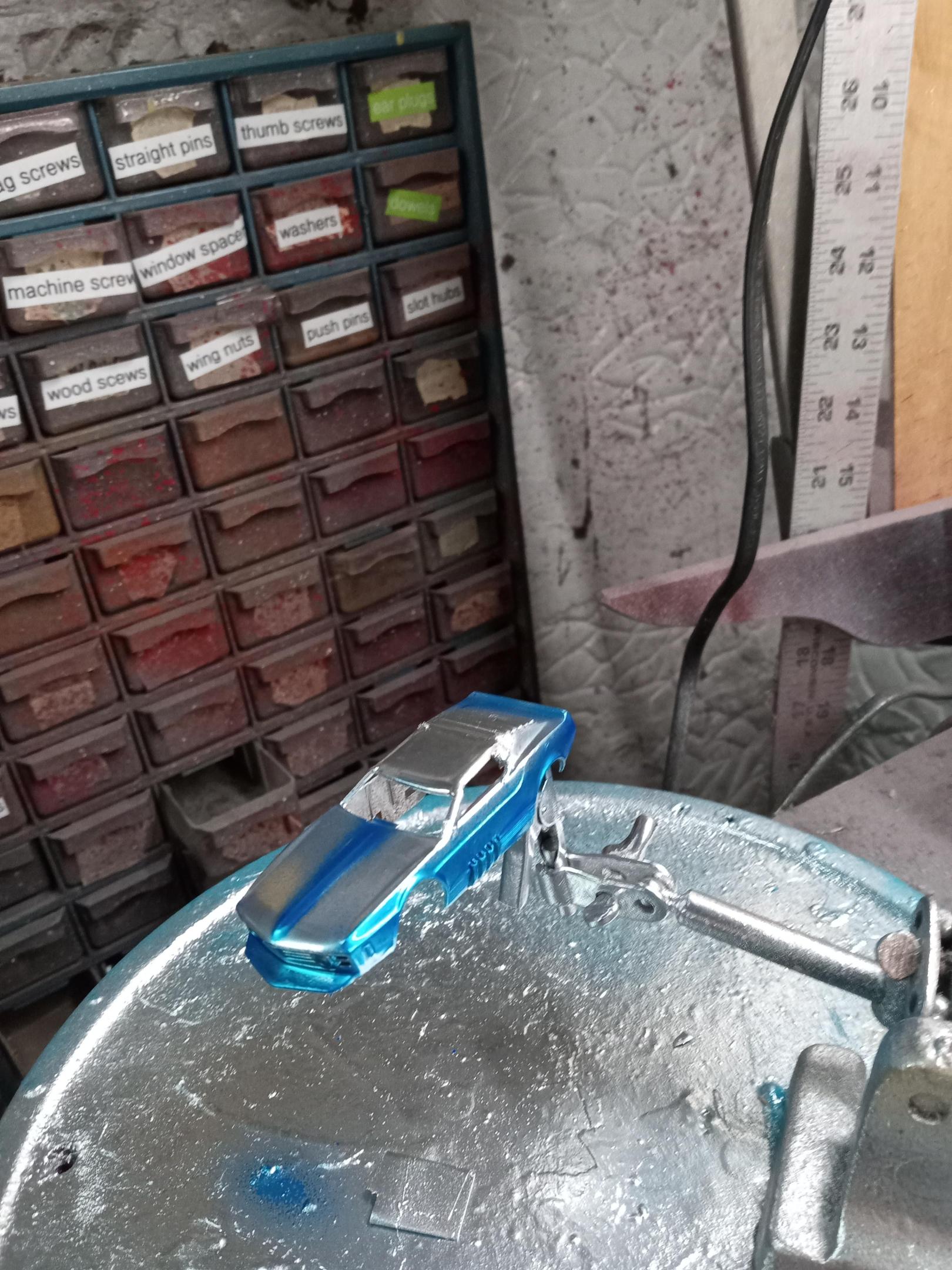 7. Nice ,sunny day so I painted this AMT 57 Chevy body with Painters Touch rattle can!