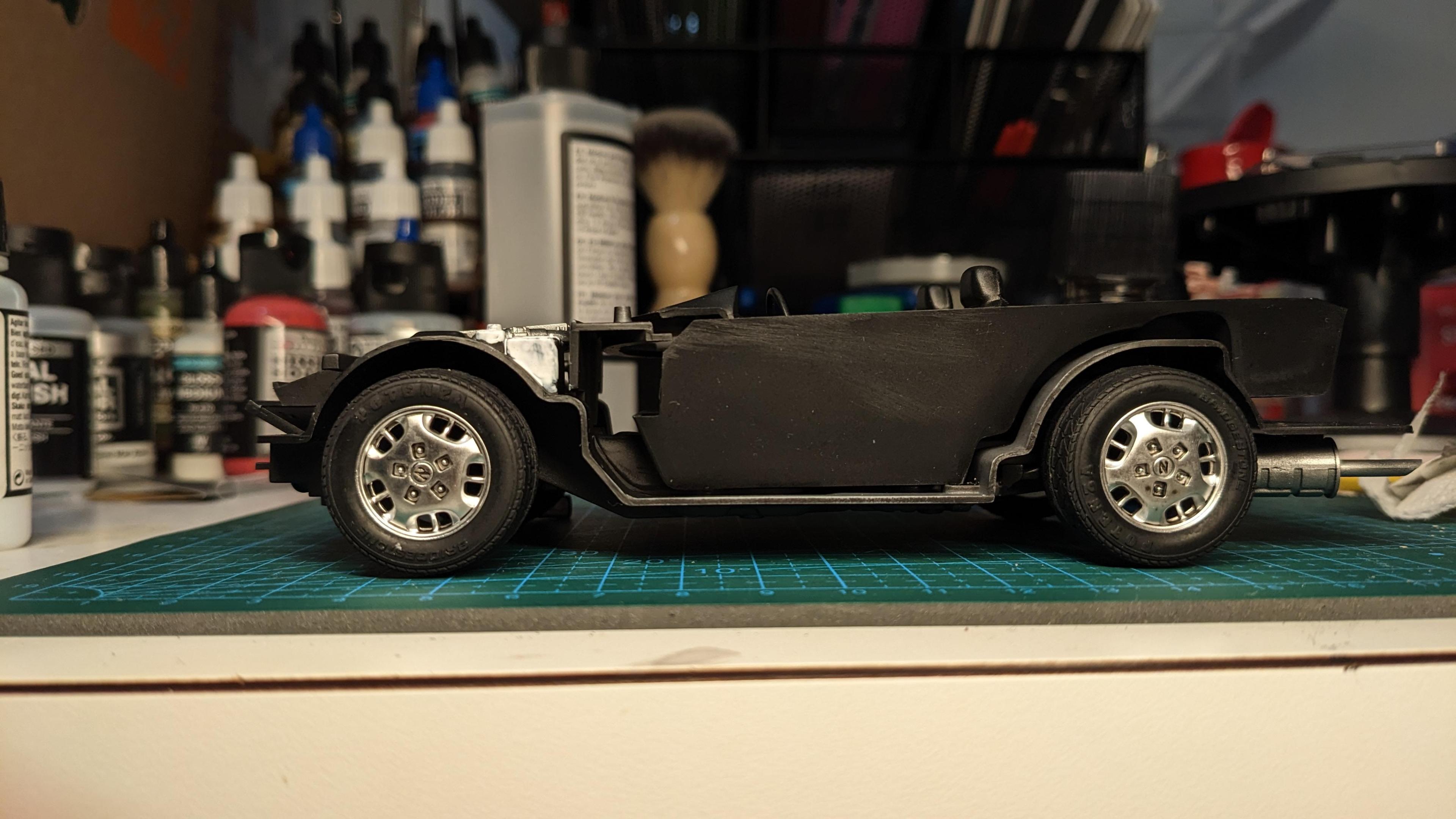 Thank you both! It's getting there, and it's really fun seeing all the things I could improve and do better on the next kit. Def have some banding to my primer coat that hopefully hides under a second coat of body paint. Would probably strip the chrome off the bumpers, but I have an unreasonable block against more primer at the moment. Also wouldn't recommend this as a first kit for anyone in the future. It has weird mods like headlights covered with steel plates. Feels like a bit of a kit bash, and isn't as "fundamental" as I expected. But I'm learning and it's more about the process with this one.