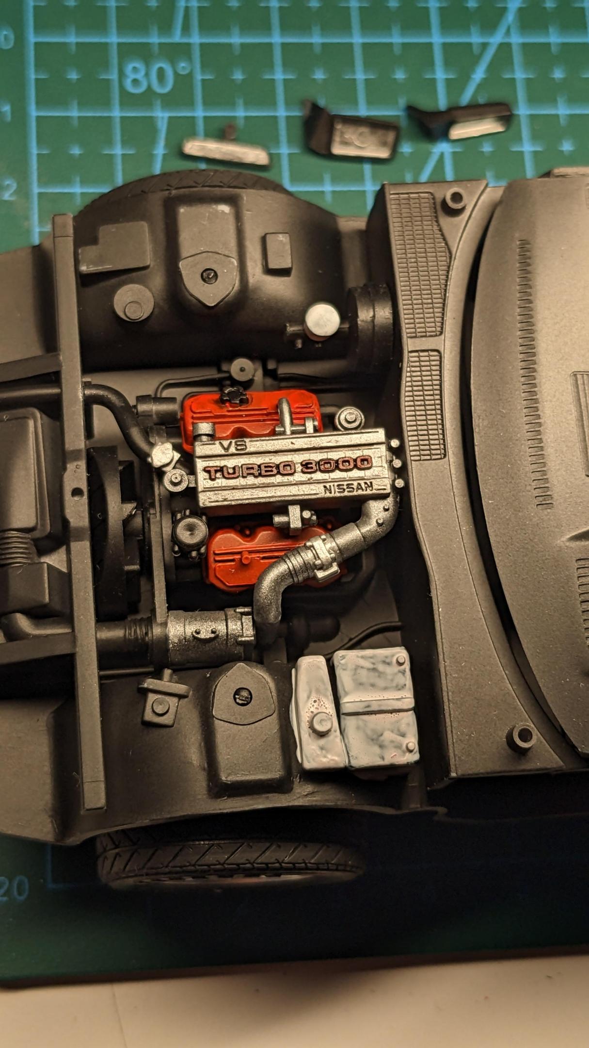 Couldn't find any precut masks for this kit. The next gen Z32 model has some, so that'll be good form when I build that one later this year. Think I'm gonna have a number of Z models over time ? Don't think the layered var ish really did anything for this. I think I like the varnish over paint only better. Layered is on the top/right in the pics. Photo isn't super representative, but the layered seems duller, which makes a bit of sense.