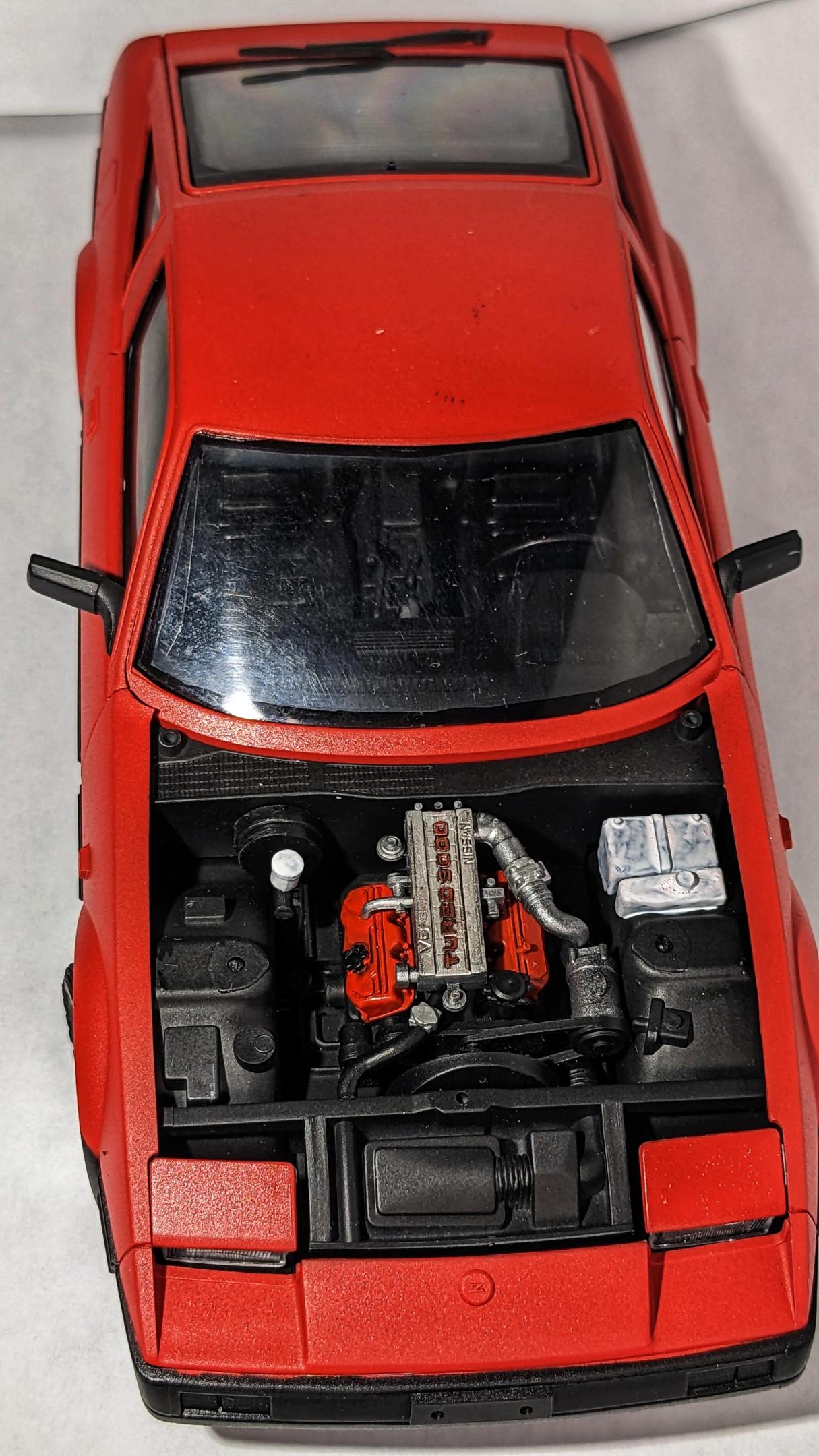 Pretty much done! I will do the decals on this one, but not till at least next weekend most likely. It is definitely a aix-foot looker, and my phone camera was very generous to the red ? Build was generally a lot of fun. The headlights were a little fiddly at final assembly. I gave up on masking the windows and used a sharpie (if the windows were individual and not a single unit, I feel like I could have gotten it down). Tamiya clear is awesome, but hard to use. Look forward to what it can do. Fun learning, and a neat little shelf piece...on to the Tamiya F1 Honda RA272!