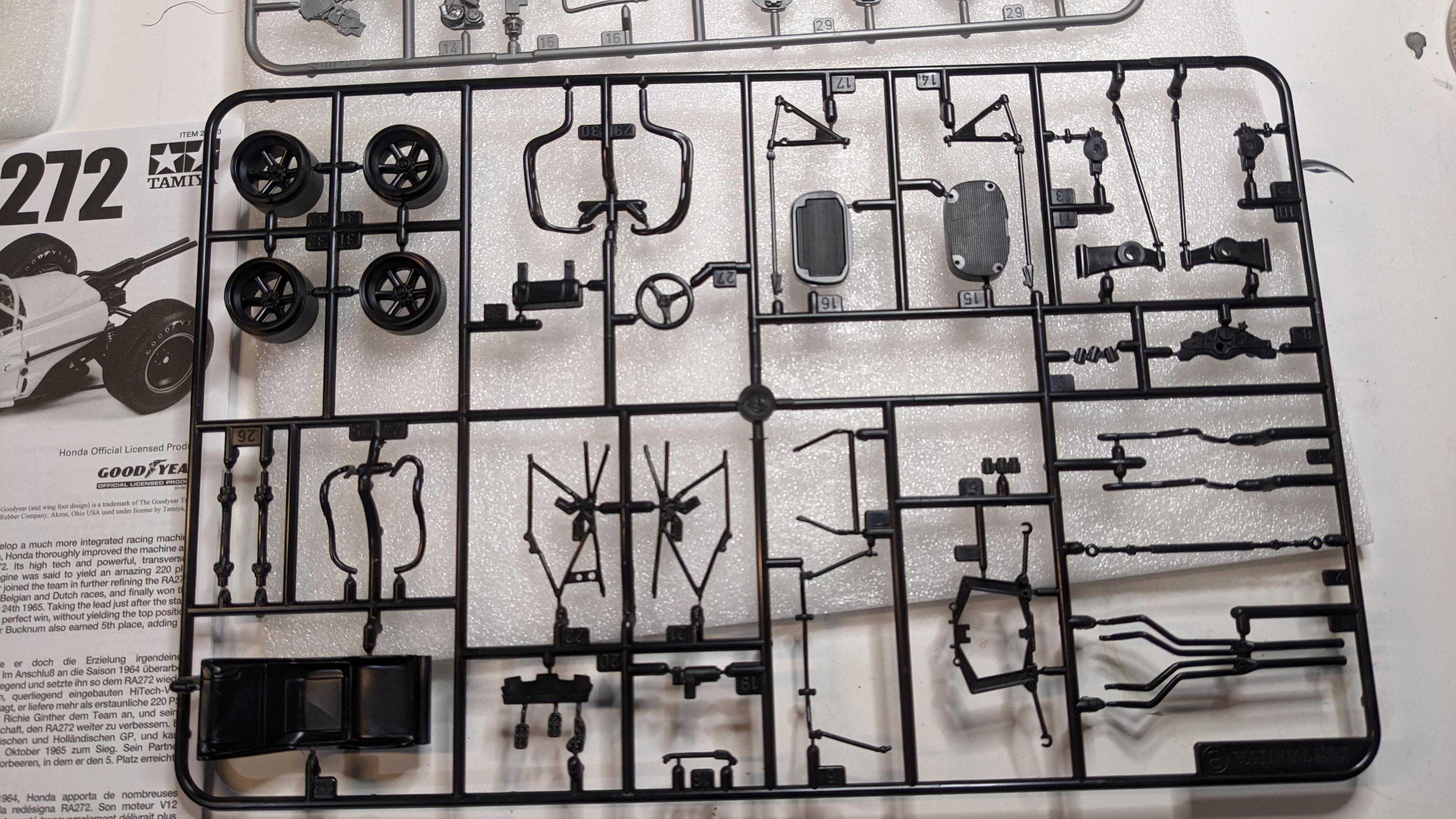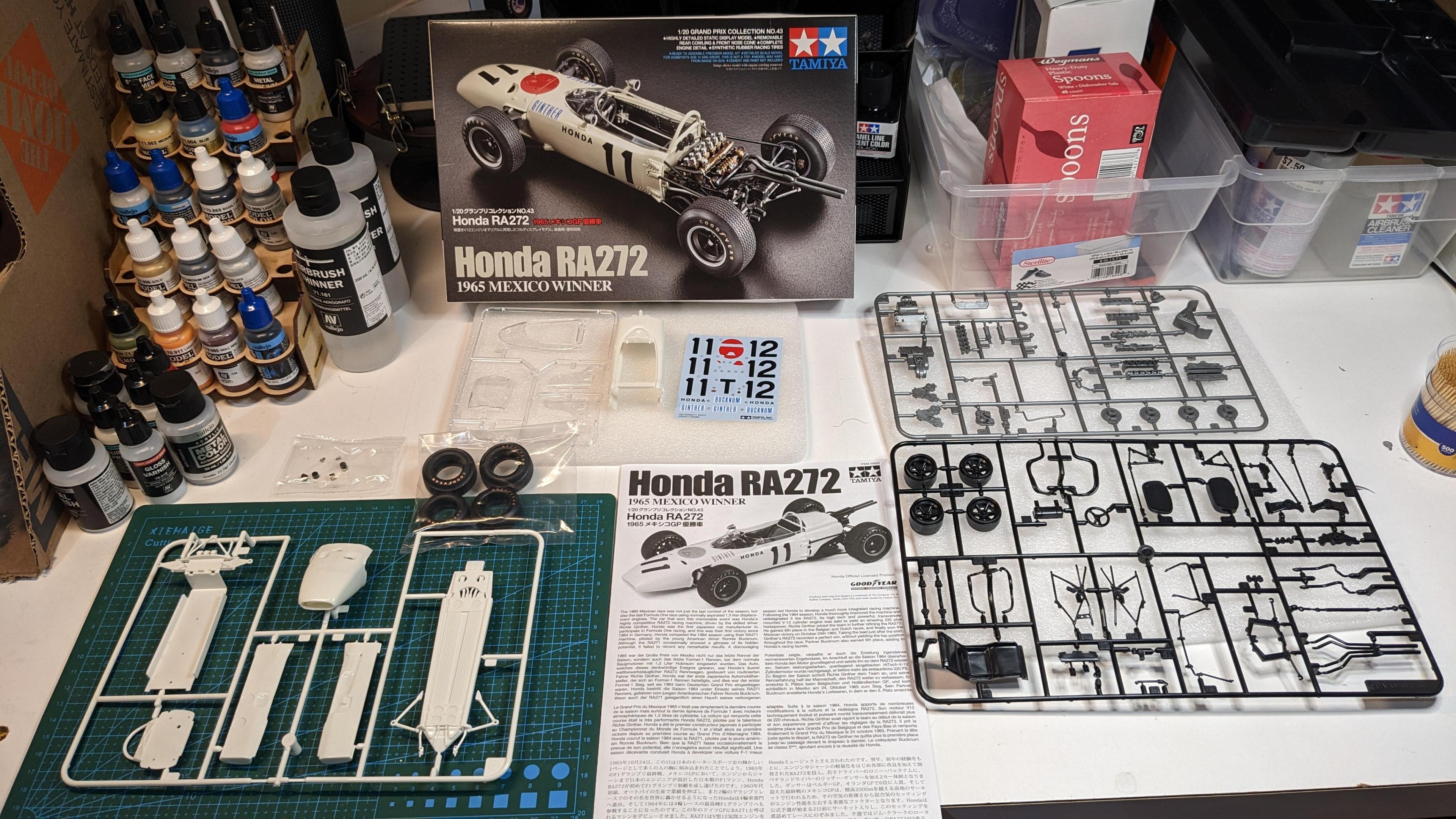 Got back into modeling because of F1. Sat down randomly to watch Silverstone 2021 and was riveted. Girlfriend got hooked a couple races into 2022. She got me this for Christmas, and I've done a couple practice kits up to this point. Don't have a way to setup good ventilation for enamels and lacquers, so I airbrush with Vallejo paints. Body will be primed outdoors with Tamiya primer and the called for body color. Skimming the instructions, the color mix for the engine parts looks fun (aluminum with a smidge of gold, metallic). Might be a bit before I have an update. Lots of sanding on little parts to get the mold lines knocked away, and most of my bench time is on the weekends. If this goes together as well as the Tamiya Nissan Z31 I just built, this should be a blast!
