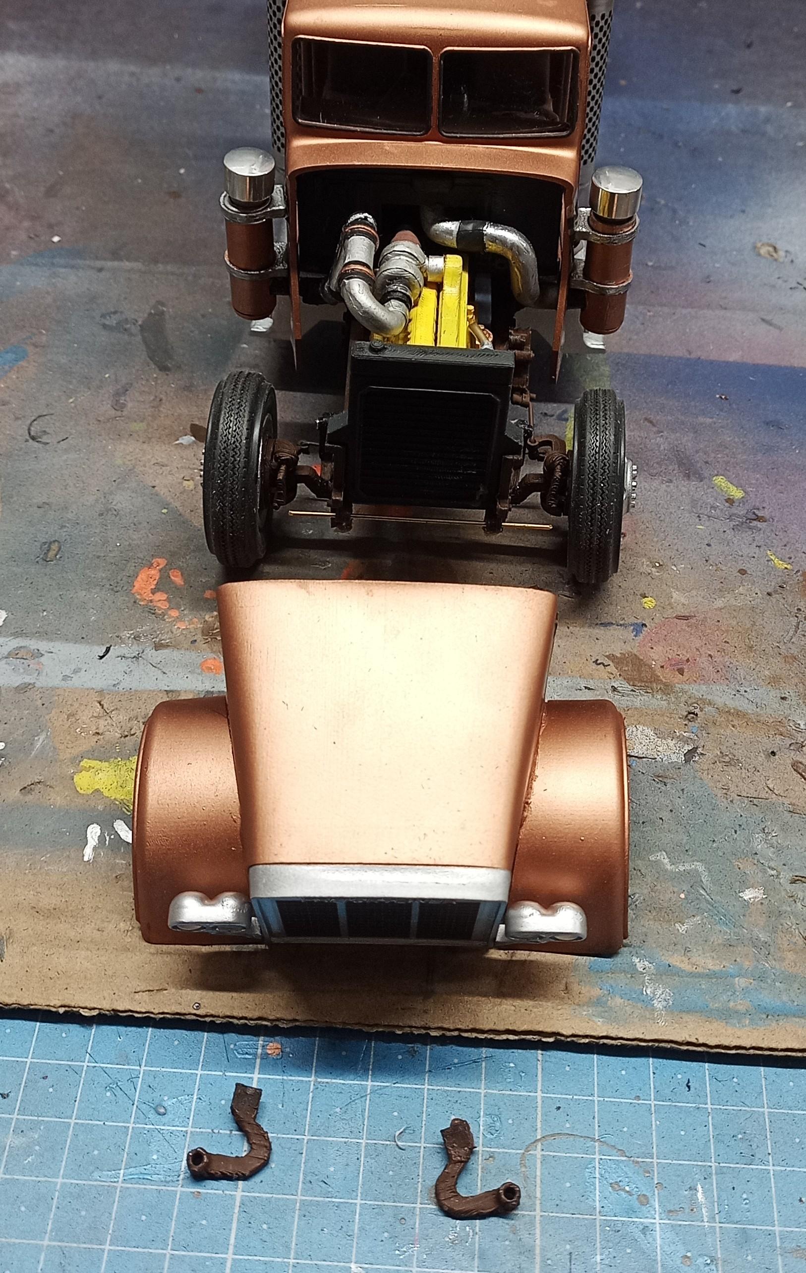 Made a tow bar. 4mm Aluminium rod and the ends are printed! Made these parking poles or whatever they're called. 1mm brass rod chromed with a pen. Brackets and balls are printed. The bumper is just stuck on, Not glued yet. Needs to go up a bit higher. Stacks are shortened by about 12mms. -