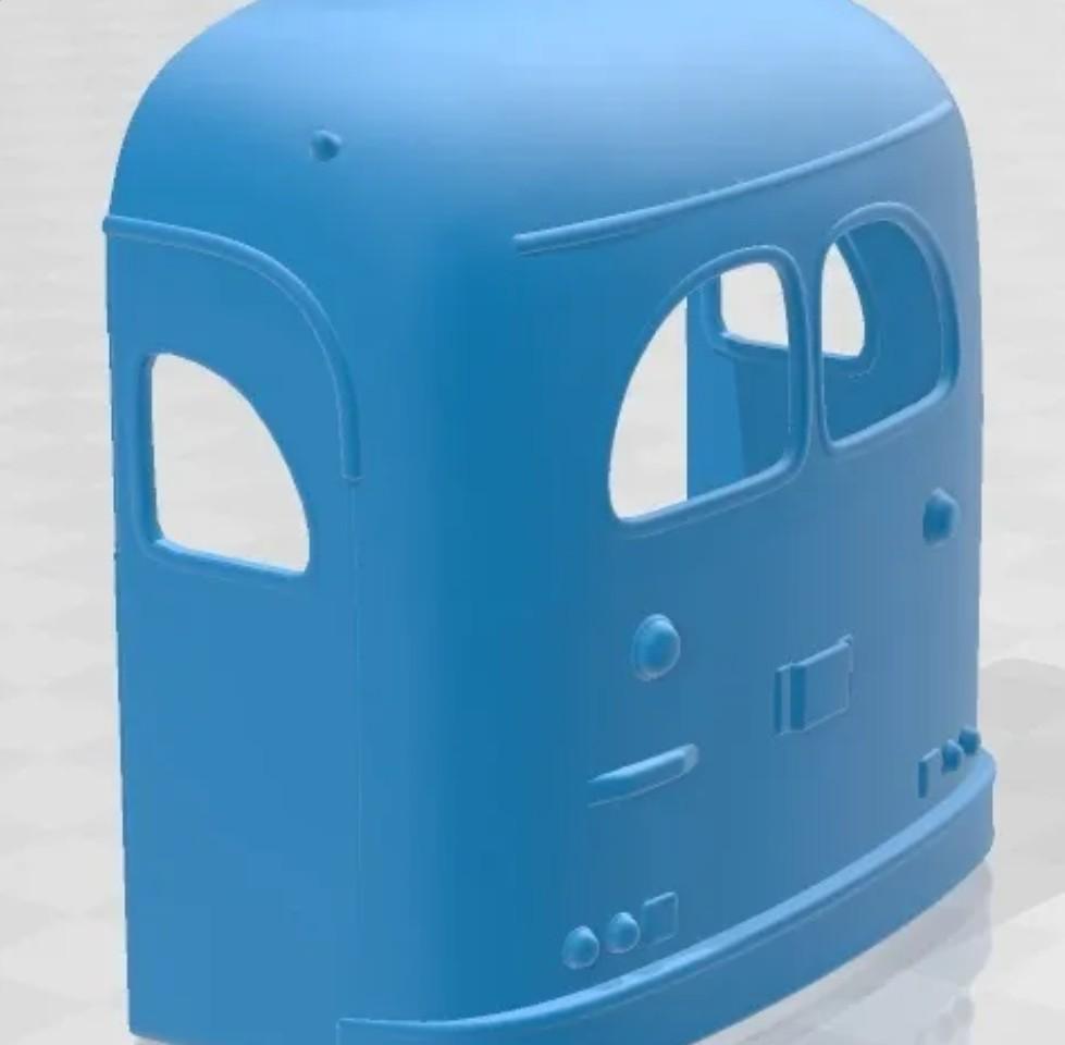 Hello everyone, After having 'cheated' on the Big Rigs section to build the Chevy Task Force I'm back with a new build. It's not really a big rig but more than an SUV or pick-up! It's the micro bus from Convoy: My absolutely last and final Convoy build! I got a link to a 3D file from 3D cults of a similar bus when I was building the Chevy Task Force. Thanks Michael F. It is similar but still has to be changed here and there. These are some pics of the files contained in the download: And the changes I've made: Of course I'll have to print them as single parts since it would be too big in one piece. Besides that, the mirrors will be cut off and replaced by smaller round ones. All parts had/have to be changed in size. The downloads are too small. I will not put an engine inside since the hood doesn't open. The chassis I will take over from the Jeep TJ I had built last year and lengthen it. Axles and other parts I may need will either be box parts or self designed and printed! Wheels are designed because I didn't have any tires matching in size. Hope you enjoy the build!