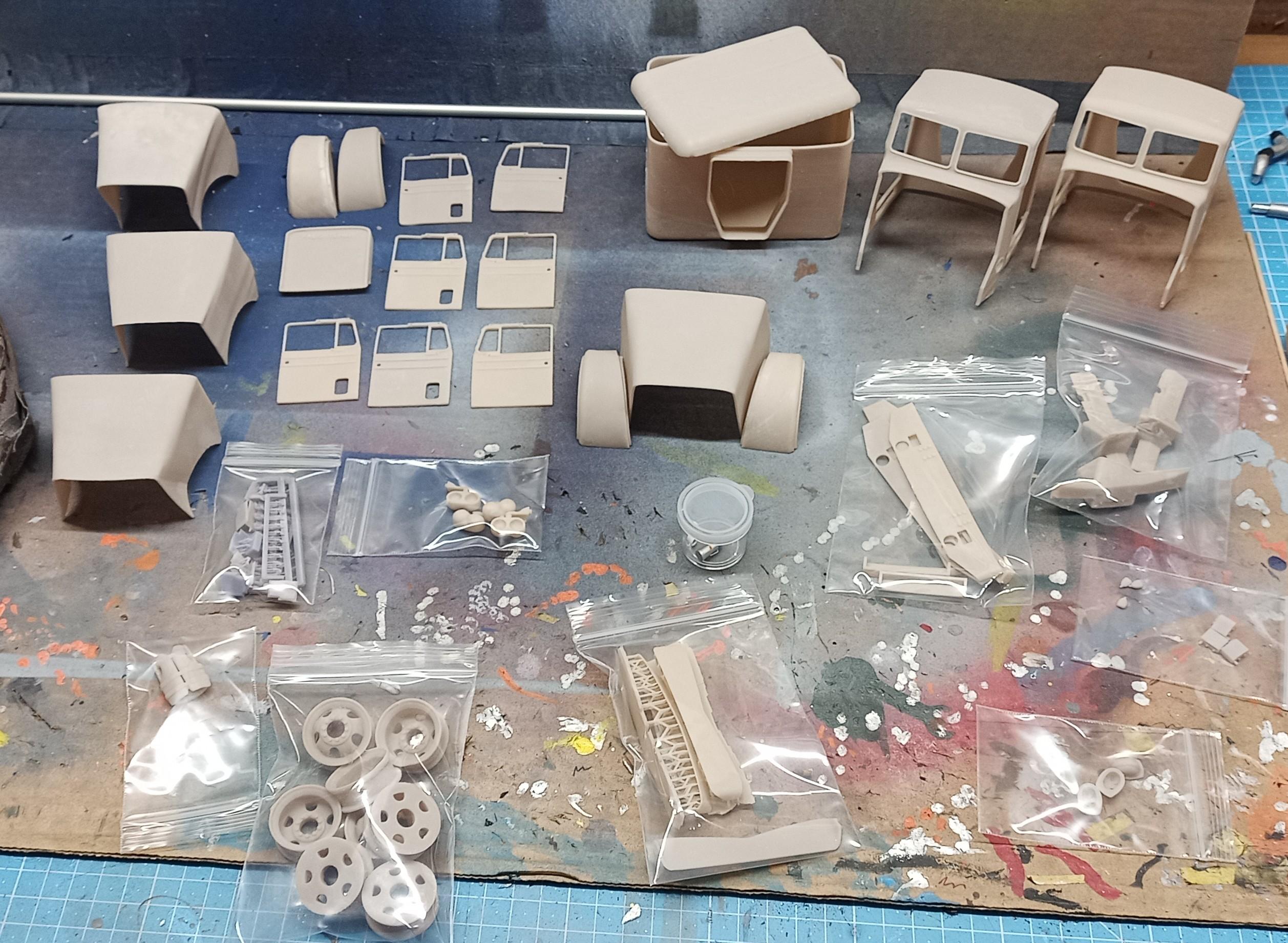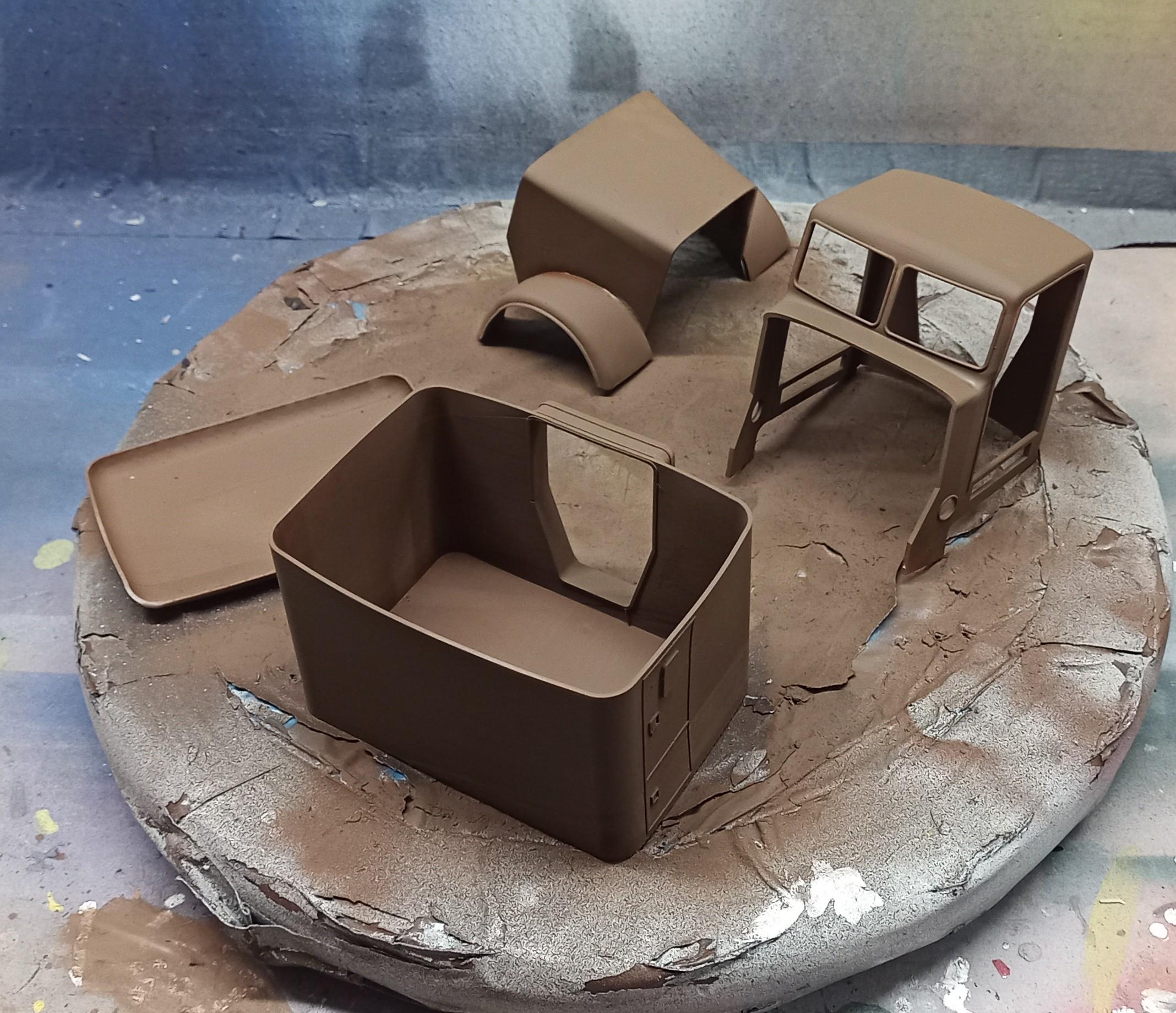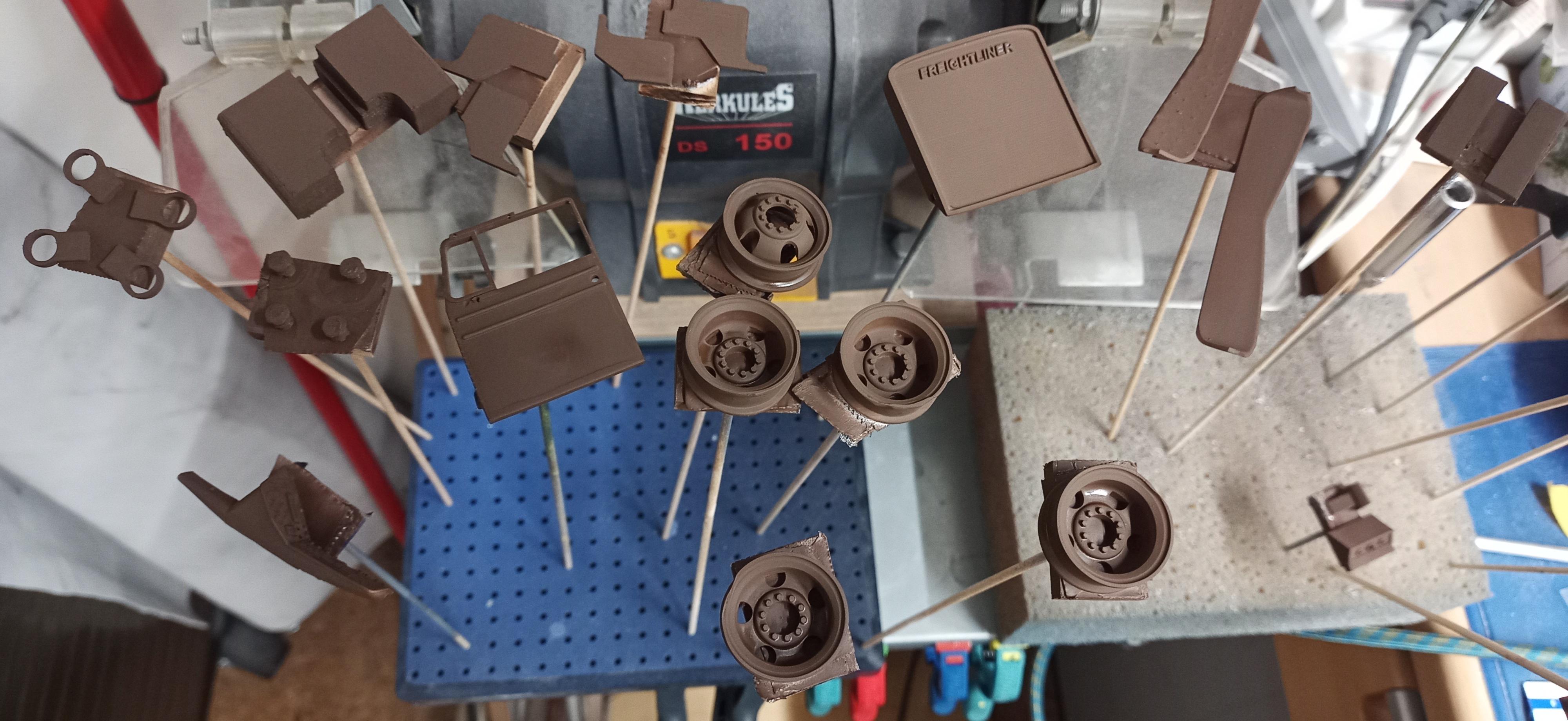 Thanks Jeff! I'm sure it'll be a nice build. Thanks to these smooth parts the painted surfaces should come out pretty nice! The first parts are primered. I hope to apply the base coat tomorrow as well as the dull chrome effect on rims, grille, sun visor and side steps. -