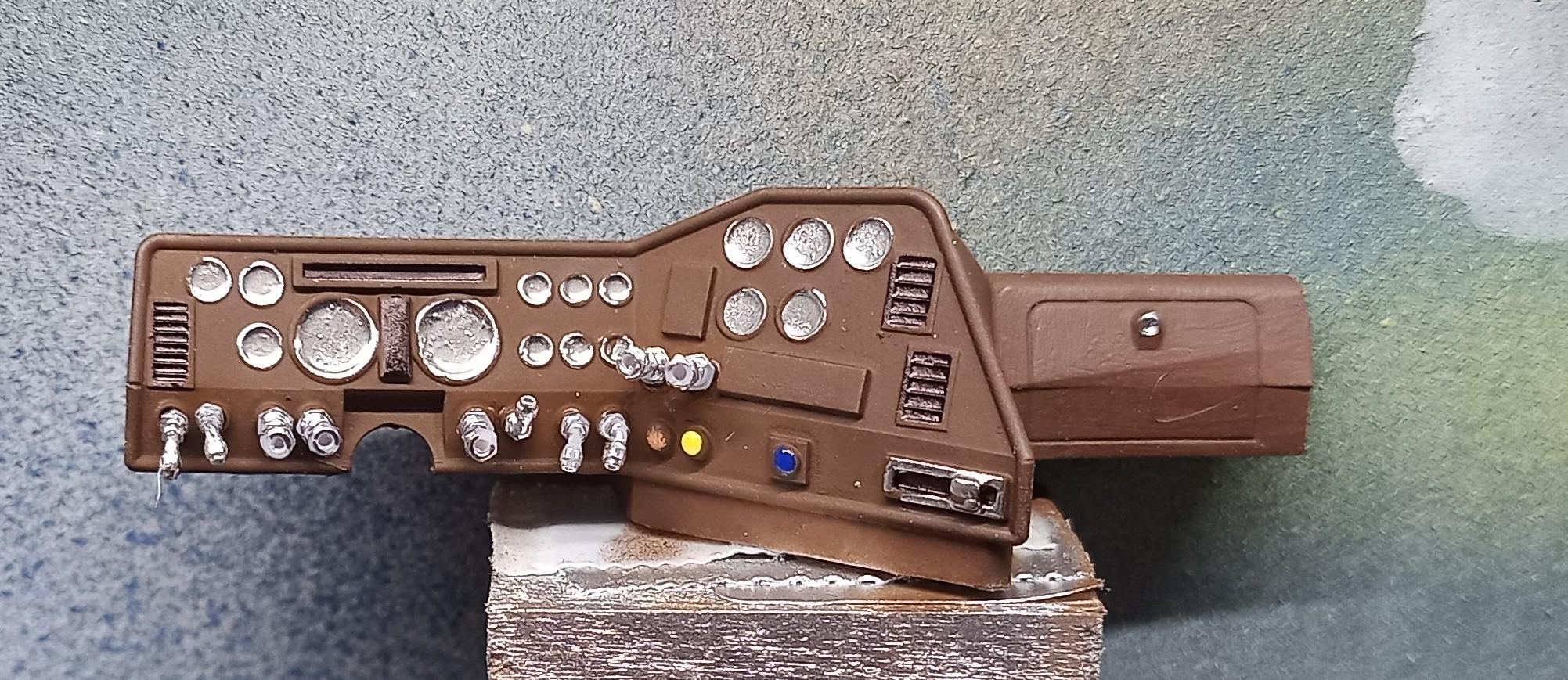 Sleeper is more or less furnished. Didn't do much on that cause it won't be visible anyway! And I did some work on the dash: I'm quite satisfied! But it's not finished yet. -
