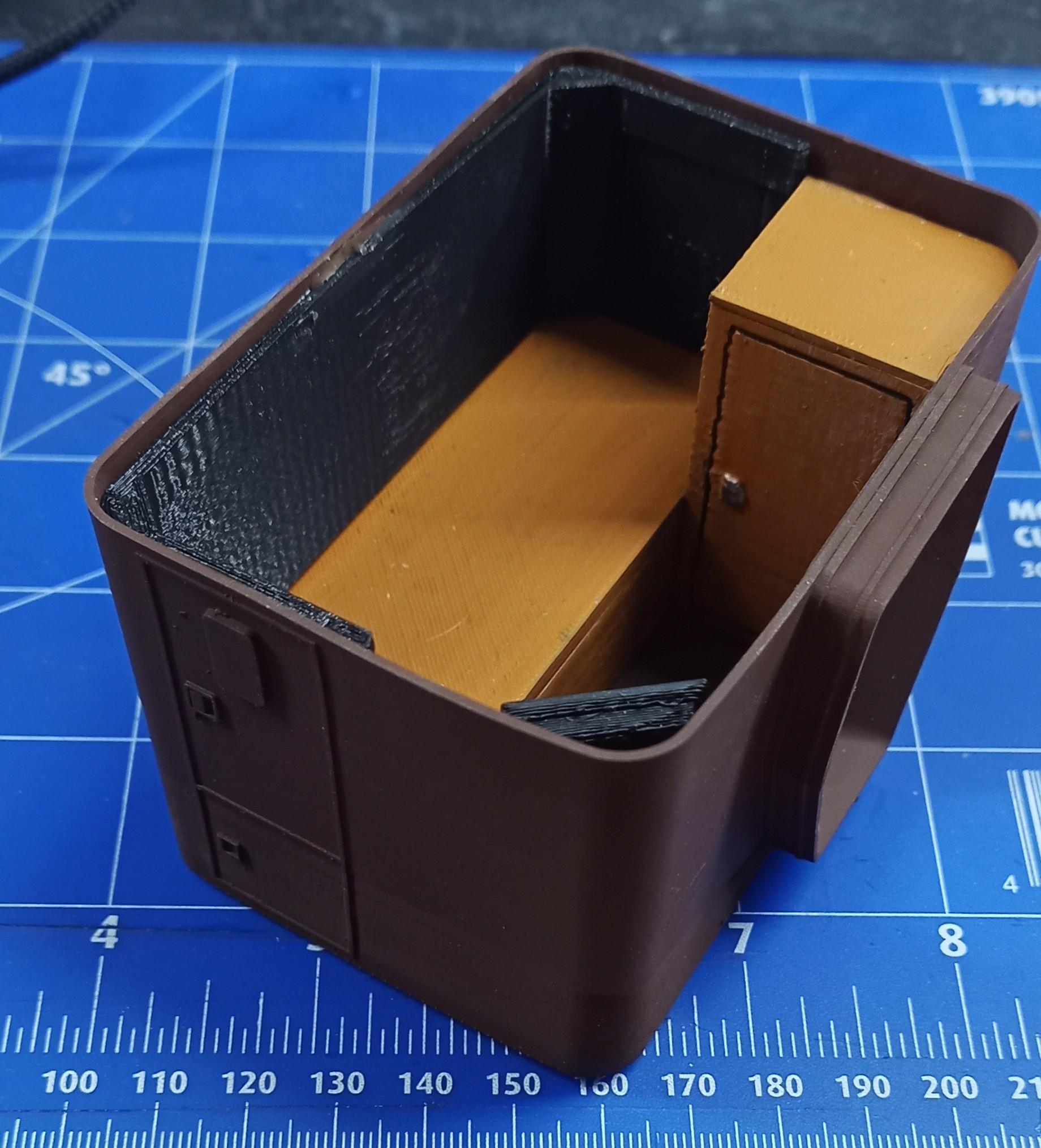 Thanks Bren! Hope not to disappoint anyone! I keep seeing the next steps before I can even make them. Next step is to furnish the sleeper and put on the roof so the whole thing can be painted. I designed a two way cross member for inside the sleeper so the walls can be pulled a bit to the inside. Should work out with 0.5mms of clearance on each side. Wouldn't want to have a convex appearance when it's closed. -