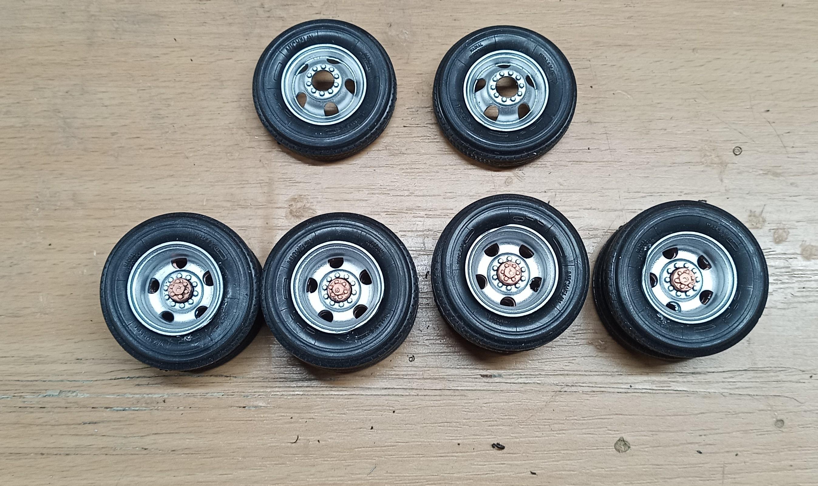 Thanks pal! I'm actually thinking of not using the sleeper for this build but putting a sort of a tool box there like on service trucks, but not as big. A bit smaller than the sleeper. Tires are Revell soft rubber tires. I stole them from my Marmon conventional. I'll put Italeri ones on that with new rims! Seperate construction site! The rims are painted with the same dull chrome finish as the fuel tanks. I like that stuff. Just ordered a new can the other day. It went empty today! -