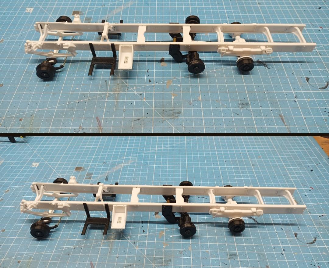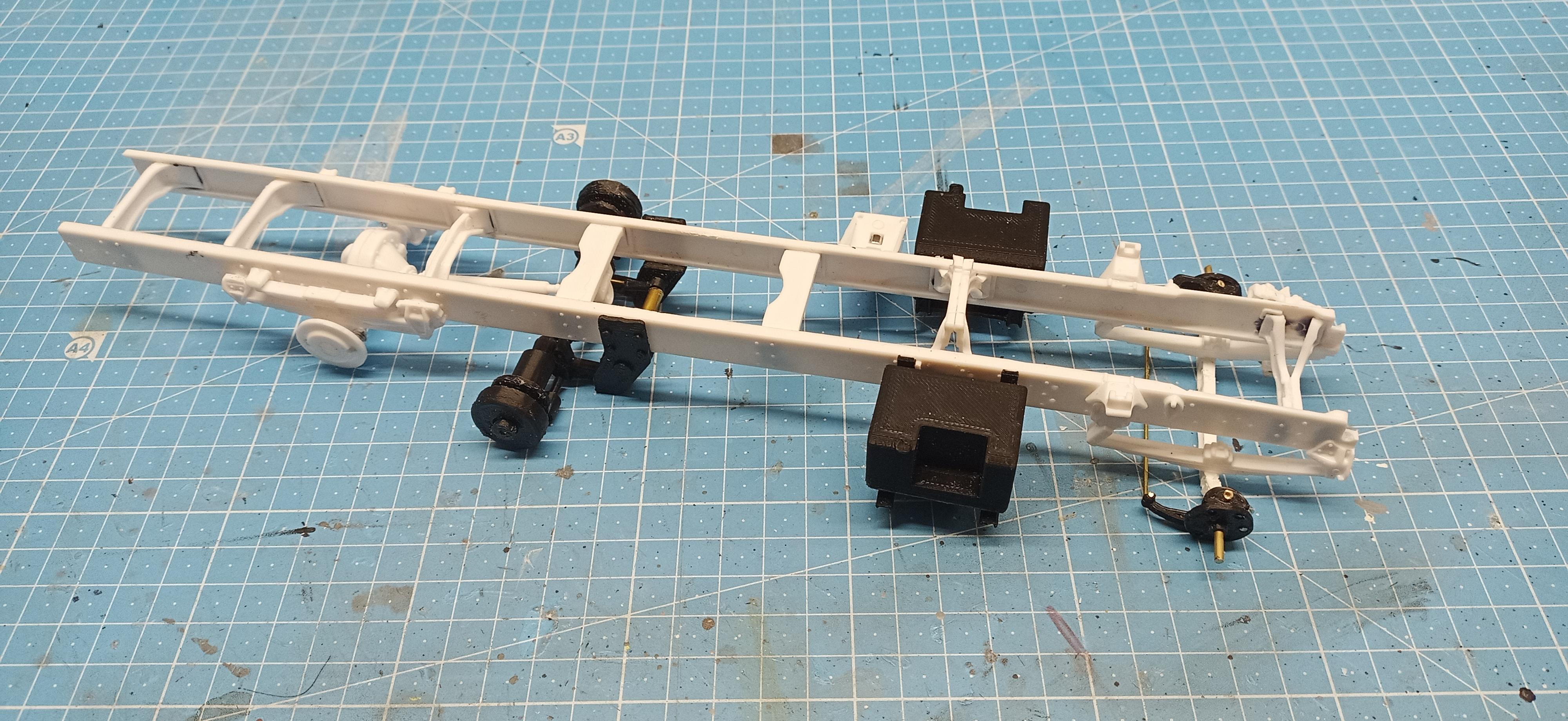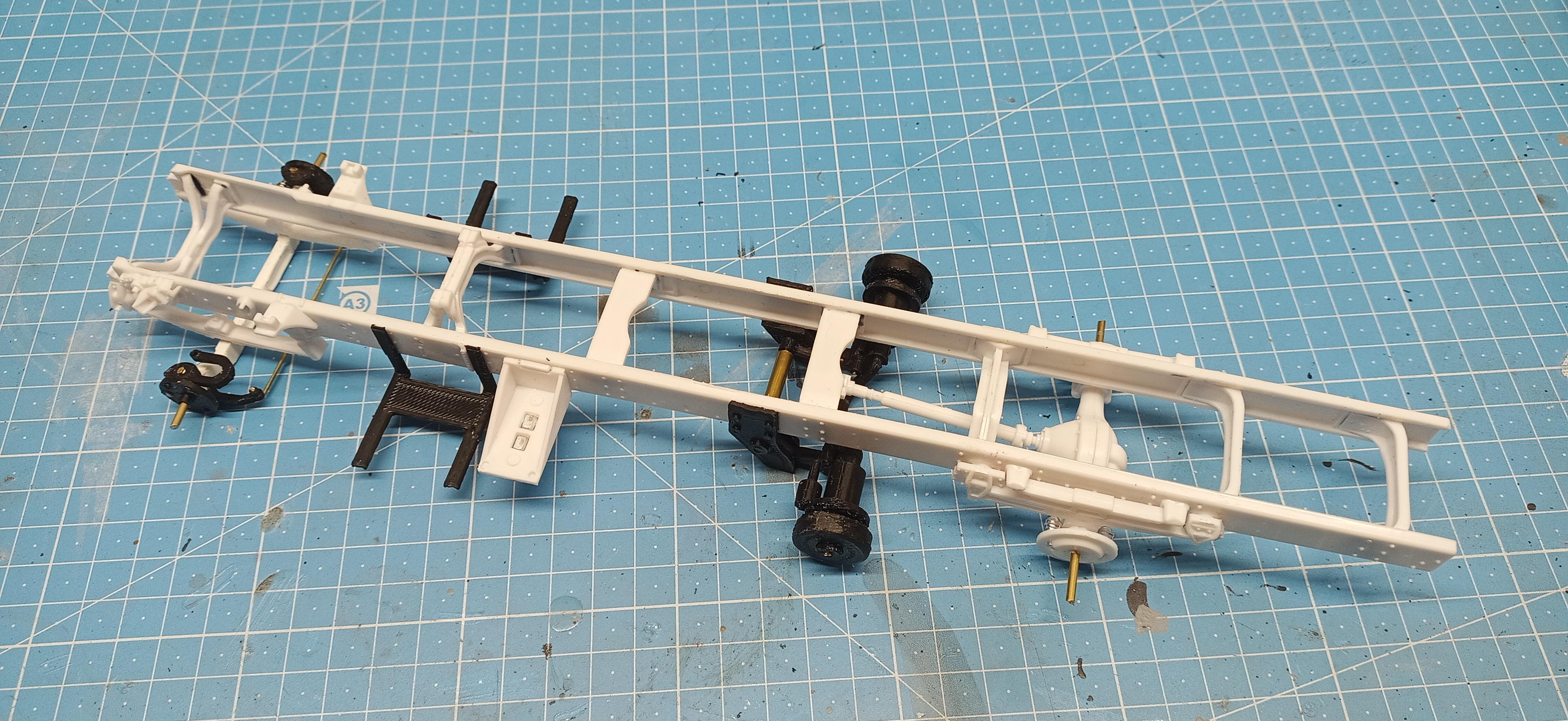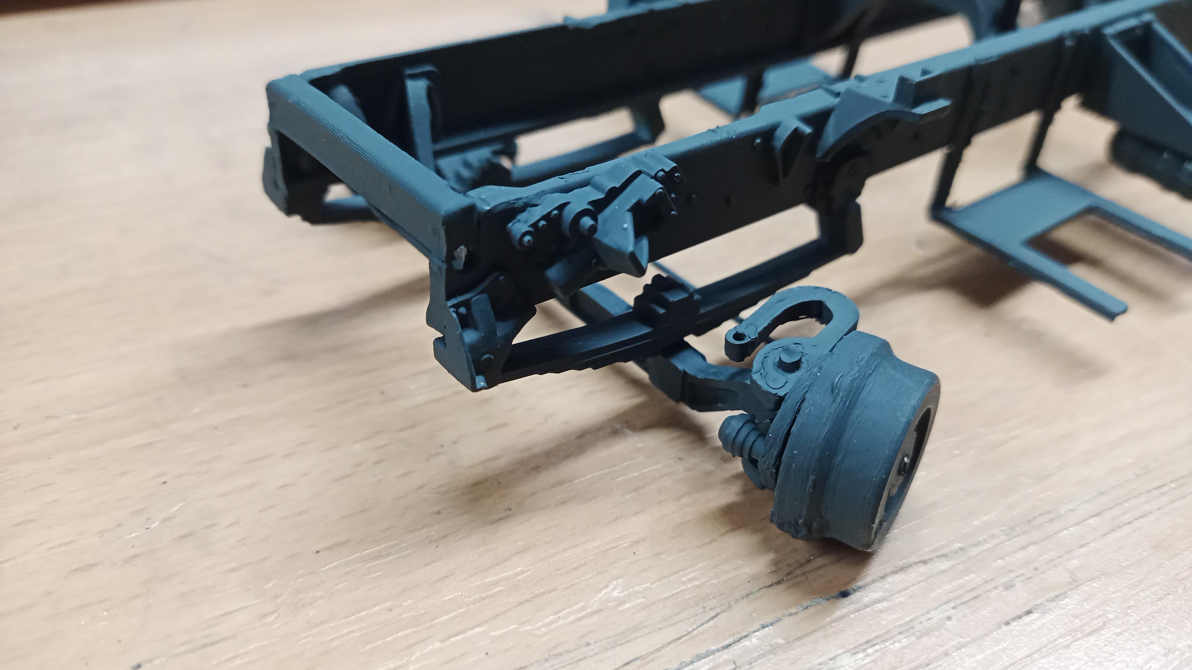 Thanks guys! The print quality especially of the smaller parts isn't that good but I'd say good enough. Here's a little mock-up to see the later position of the lift axle. I might even slip it a bit more to the front. Next will be steering box and other parts that need to be painted with the frame. -