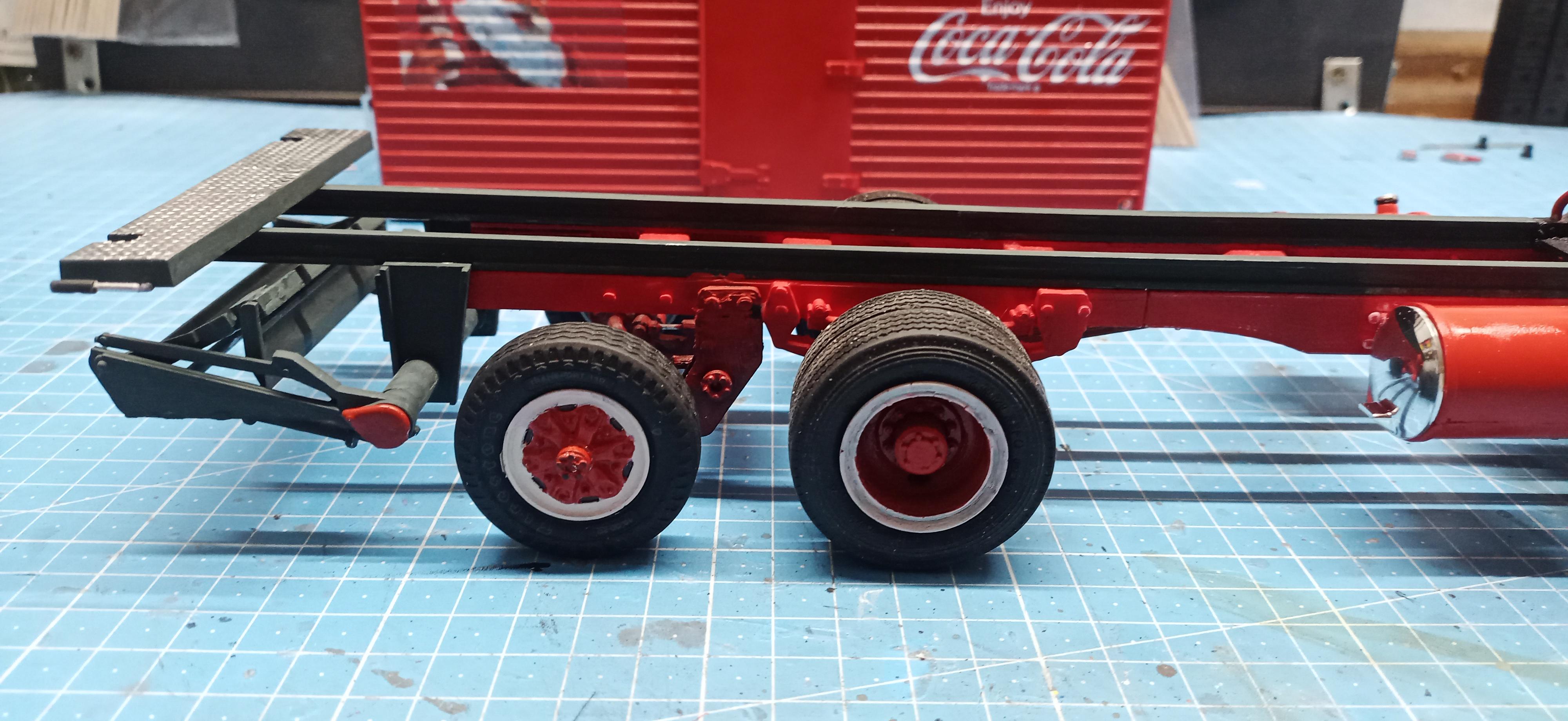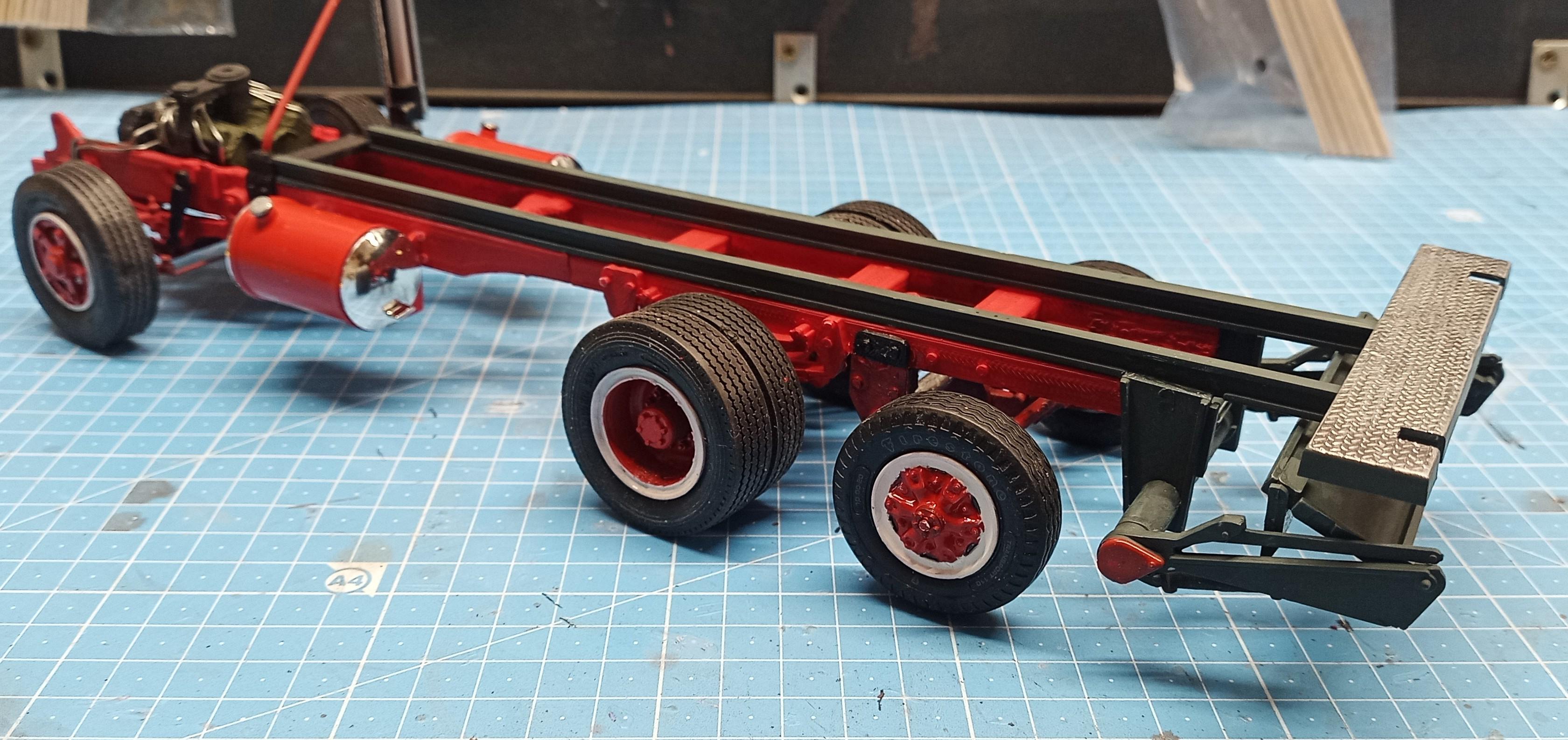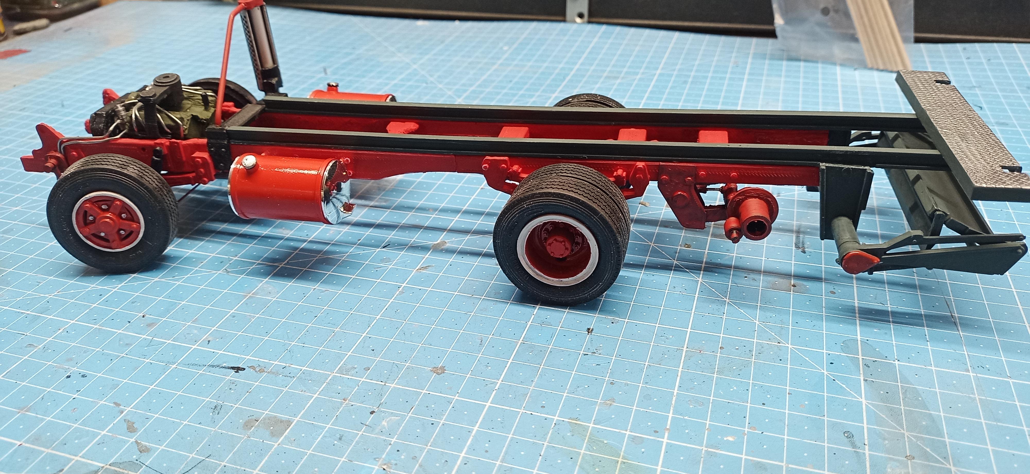 Actually I was thinking of adding a tag axle here too. I noticed that I located the drive axle a bit far to the front. It's only a little bit off the middle of the box. Of course the weight of the cab and engine would keep the real thing from tipping but it does look a bit 'risky'! Since I have enough time till the cab arrives I might print a tag axle just to see how it looks!
