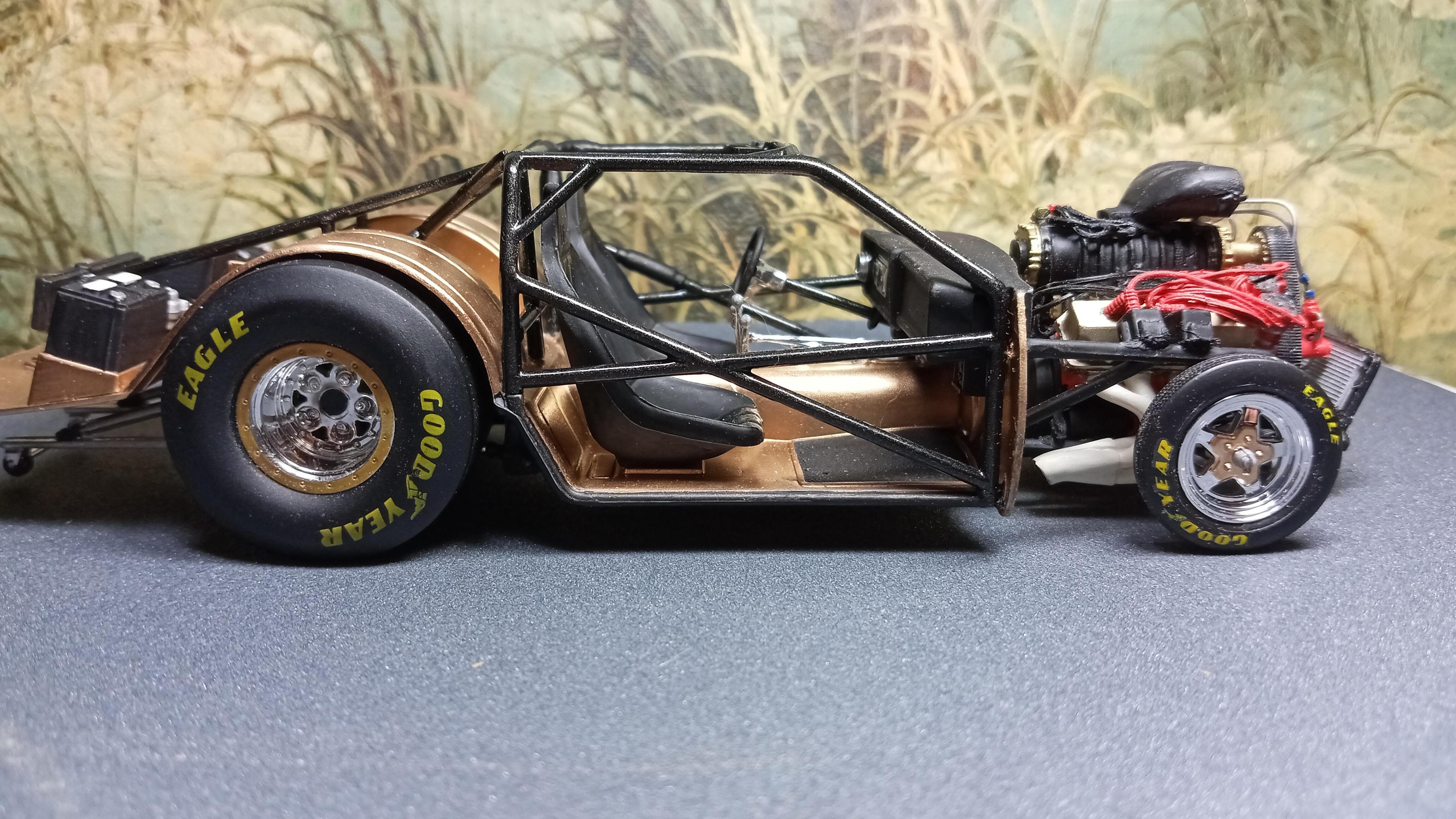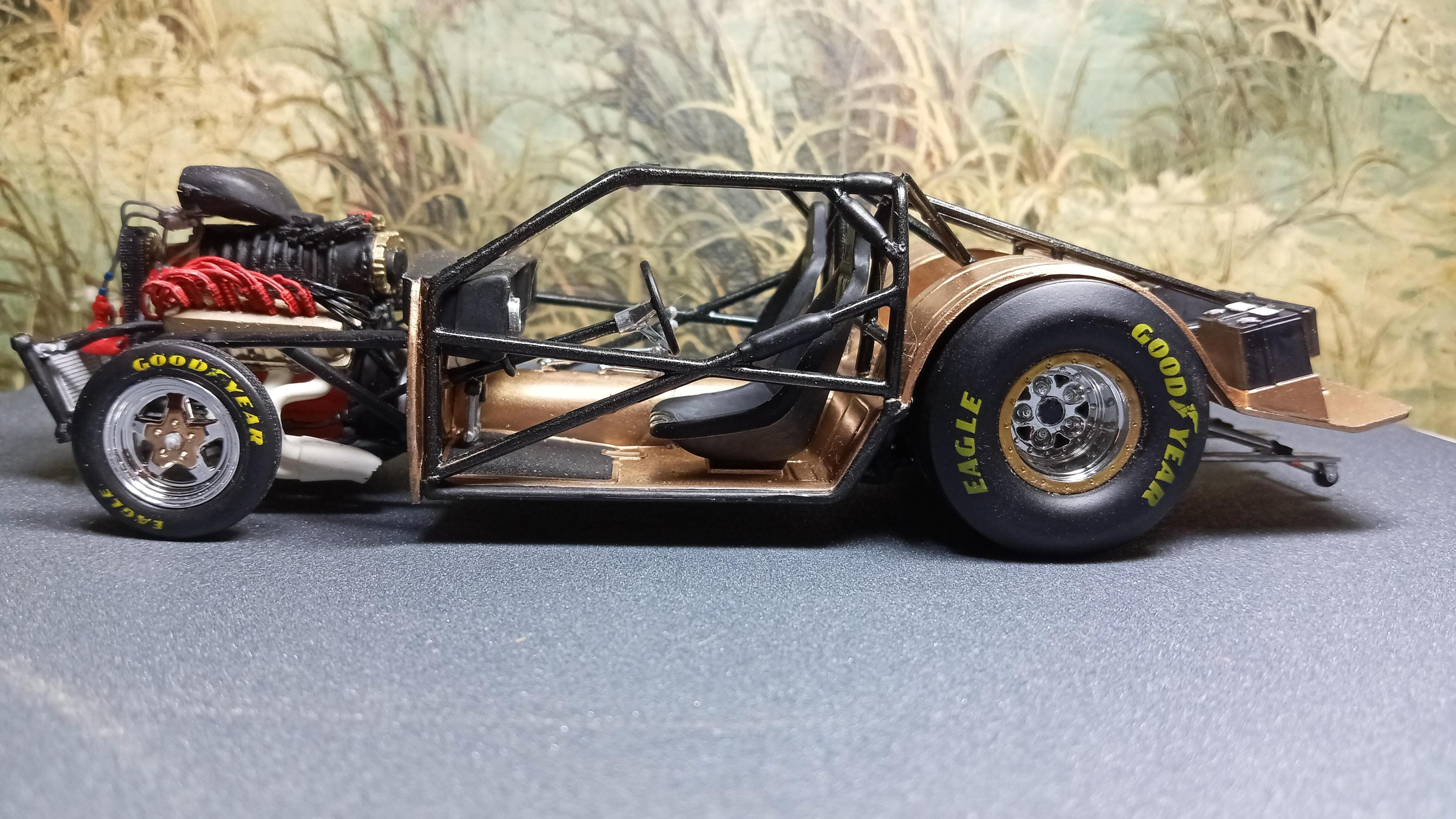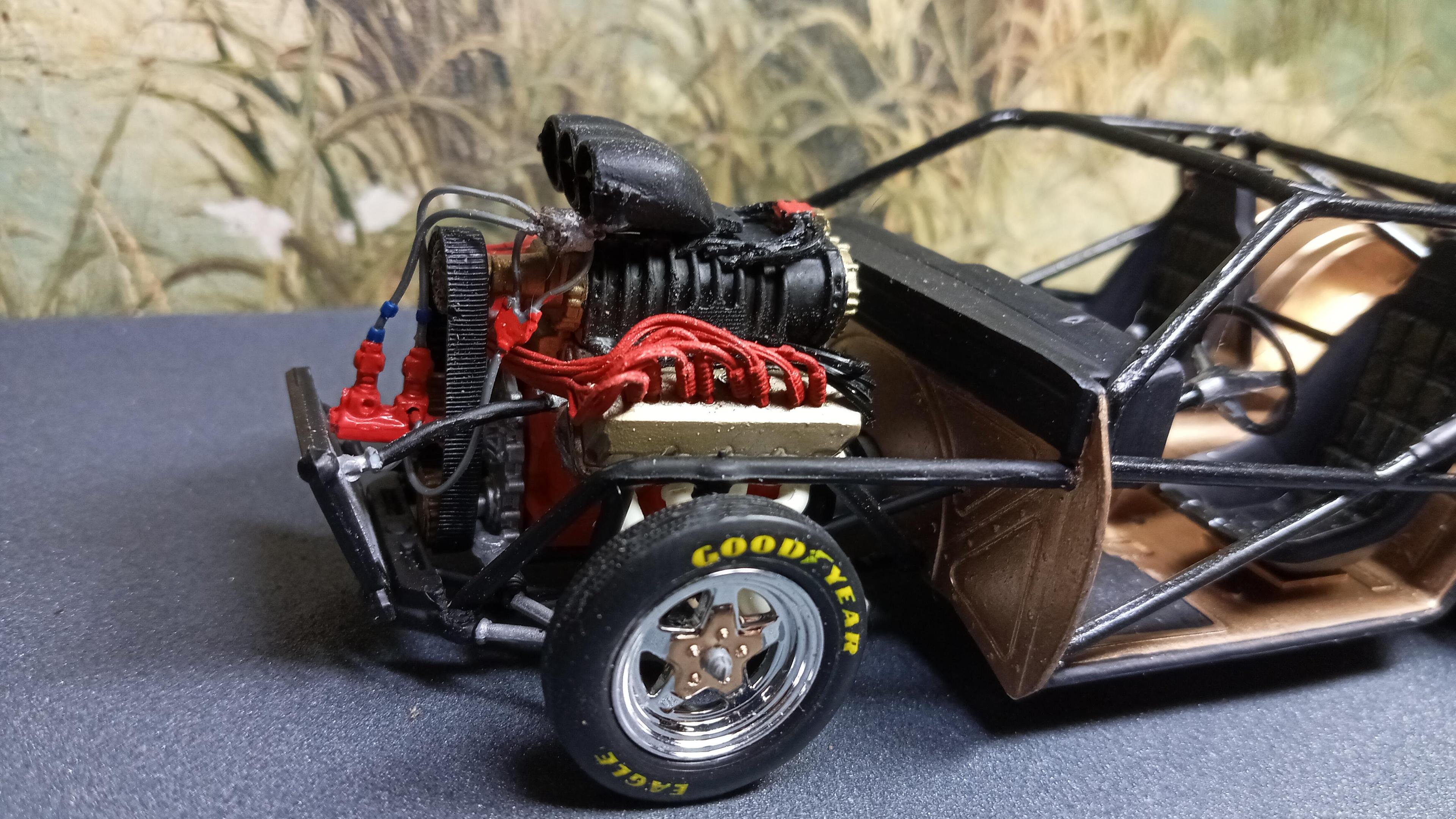 10. Here is my 72 Nova Pro Mod.The Proline Hemi- Pro Chargered engine.Is from Icemancollections(Resin).The body is from the Old Pro Nova kit.So I made it into a removable nose clip.The chassis is from the Frank Ioconia Camaro Pro Stock kit.The big Goodyear Eagle Slicks are from a diecast Funny Car.