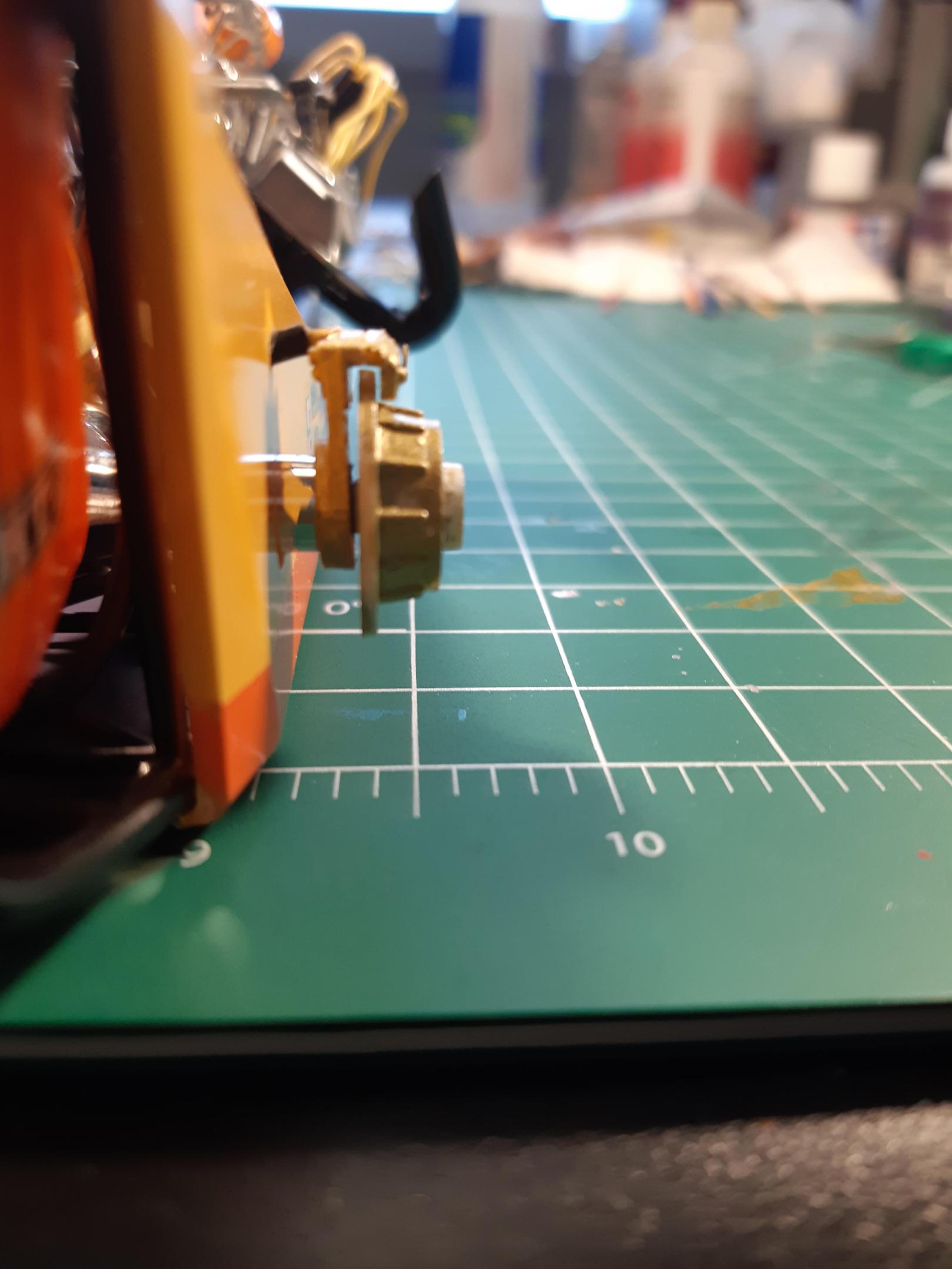 3. Noob, on model #2 (Tony Nancy's 1/16 Sizzler dragster), getting four-coloured funky with the fuel pump and fuel control valve. (No idea WHY I am.) Might make that "my thing" (yeah I've seen that done elsewhere). Good exercise for shaky hands and not the best eyes.