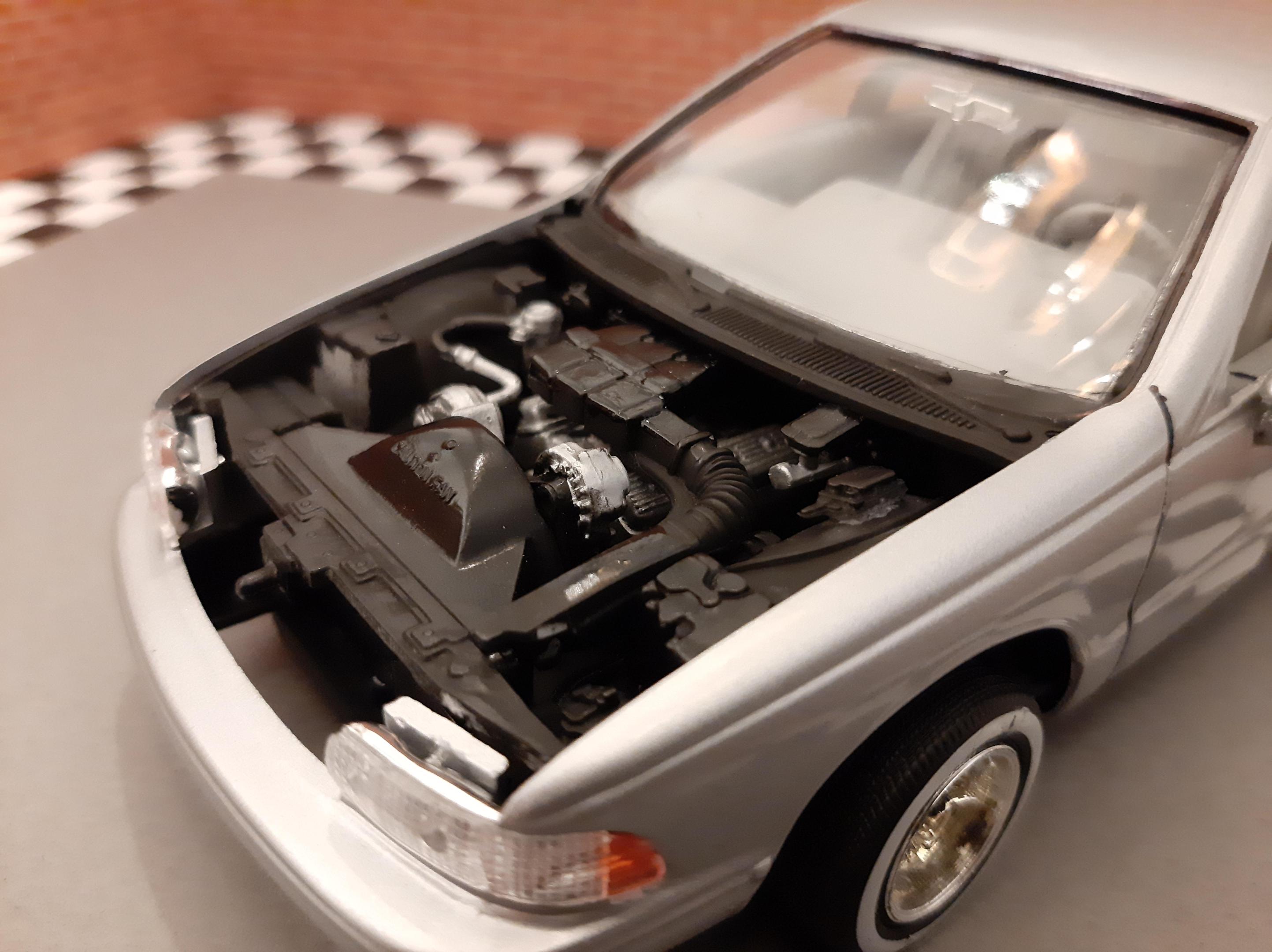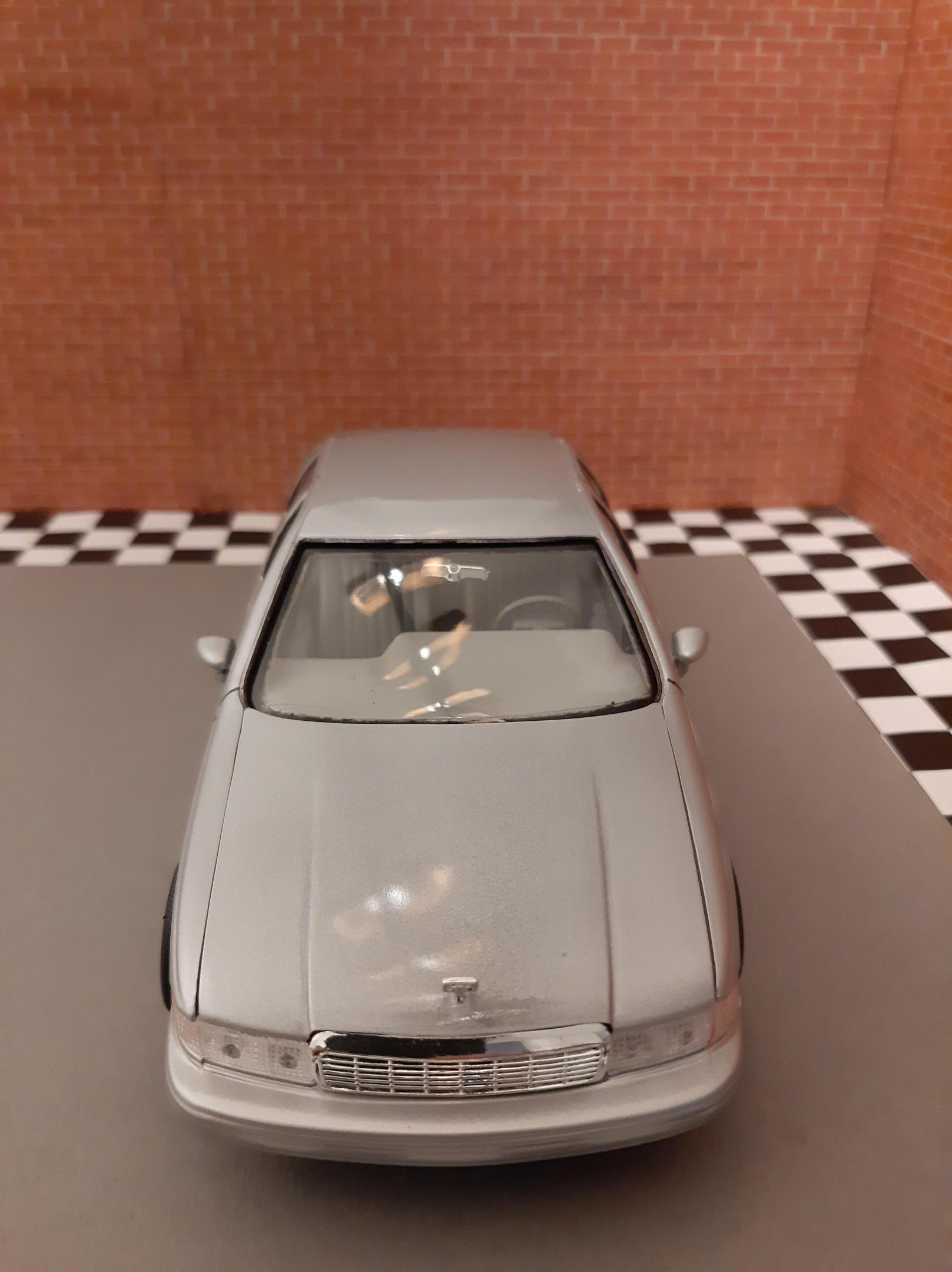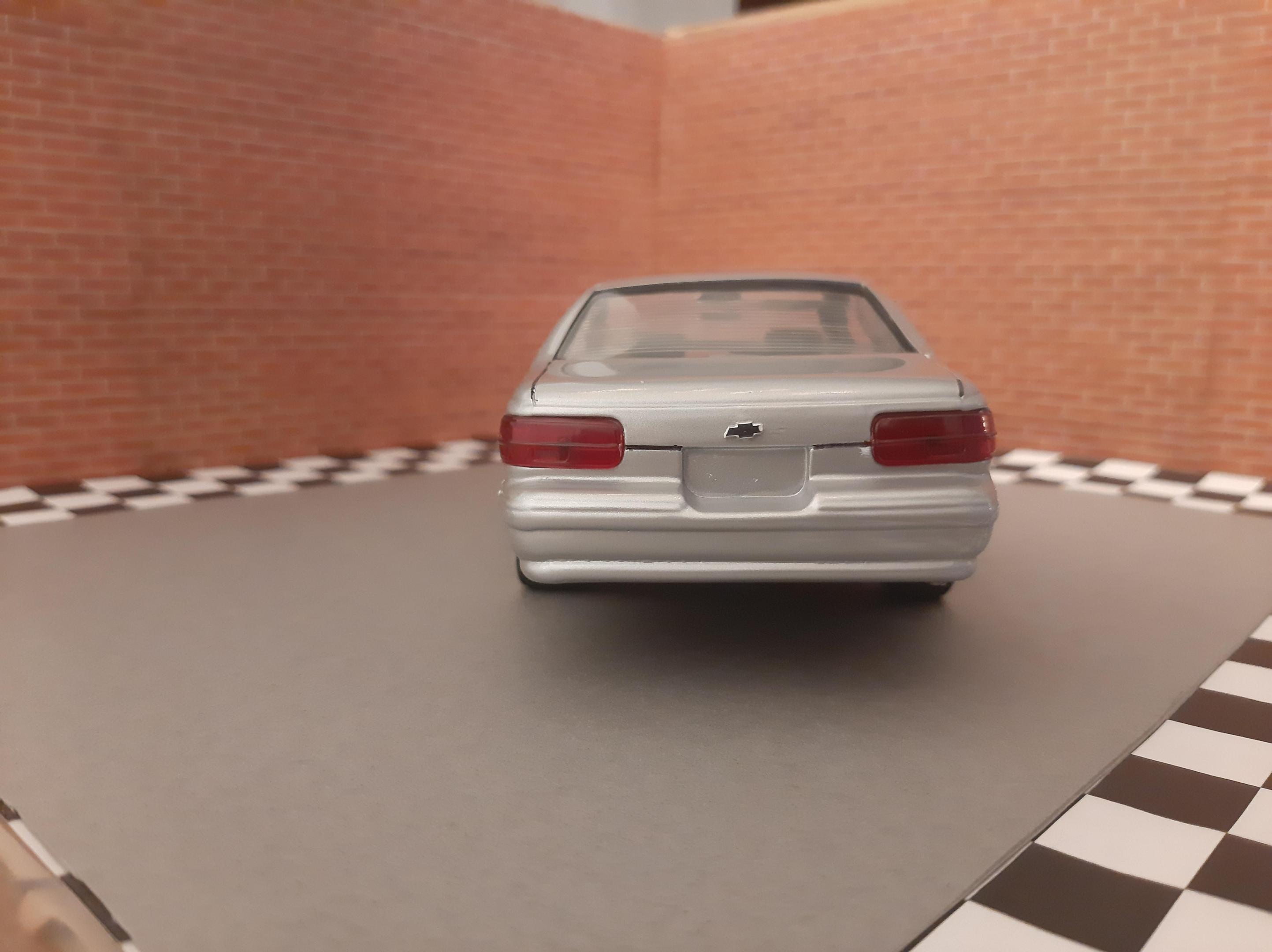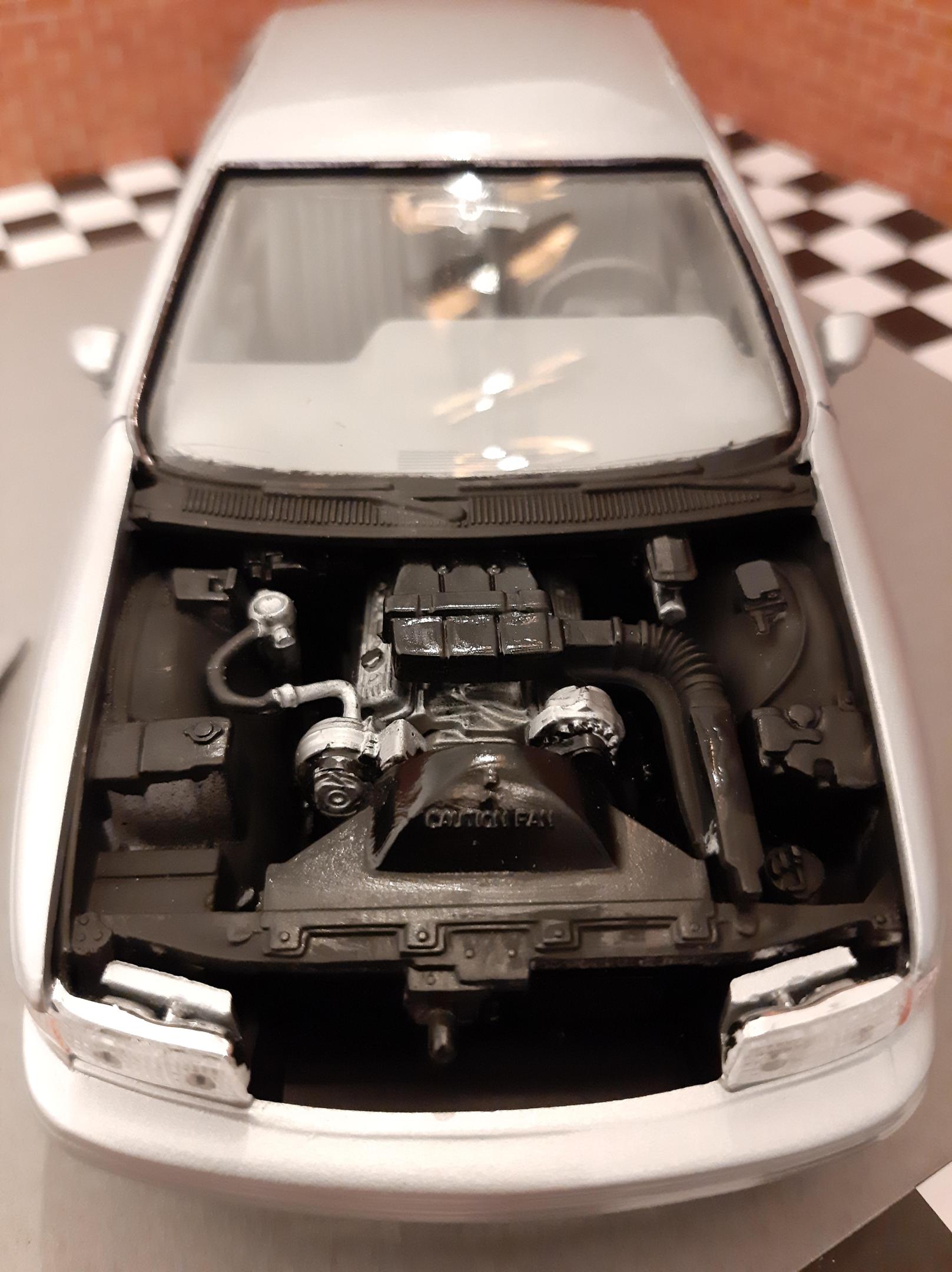 I love this generation of GM B Bodies along with clean Lowriders. I always wanted this exact set up of car, I think wire wheels really look good on them. This is one of my first few builds so the paint has its moments and I learned not to get Tamiya polish in panel lines. I also probably should have chopped up the wheel mounts so they would tuck into the wheel wells but at the time I did not have the courage to do it. I actually kinda like the stance, looks like a DIY hydraulic job. Anyways I bought another one of these kits to redo this kit but I may do it as a higher trim and leave the stock wheels. I also want to build a stock Impala SS. This build is basically done up as a guy who bought an old 9C1 from an auction, painted it in his backyard and threw some wire wheels on it. He also really detailed the engine and underbody...lol Tamiya TS 76 Mica Silver.