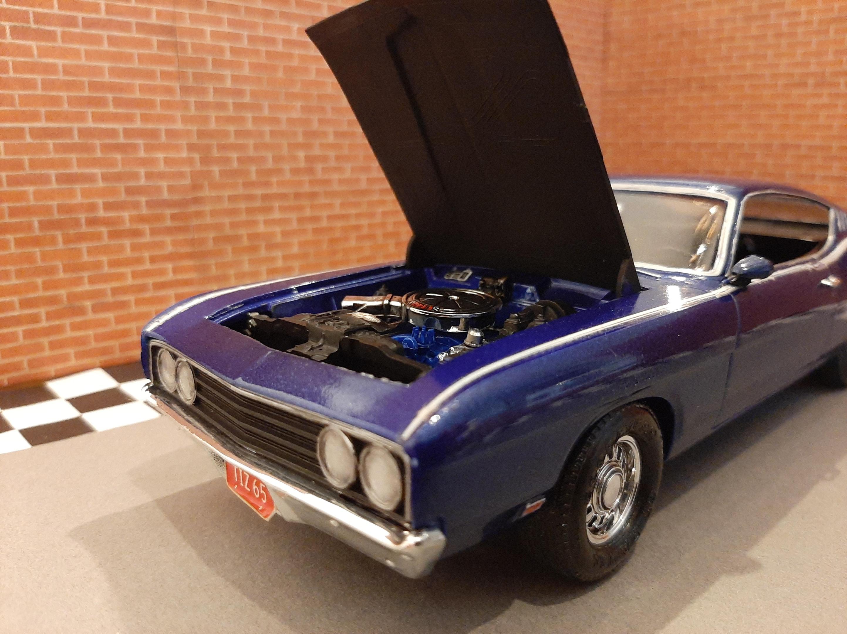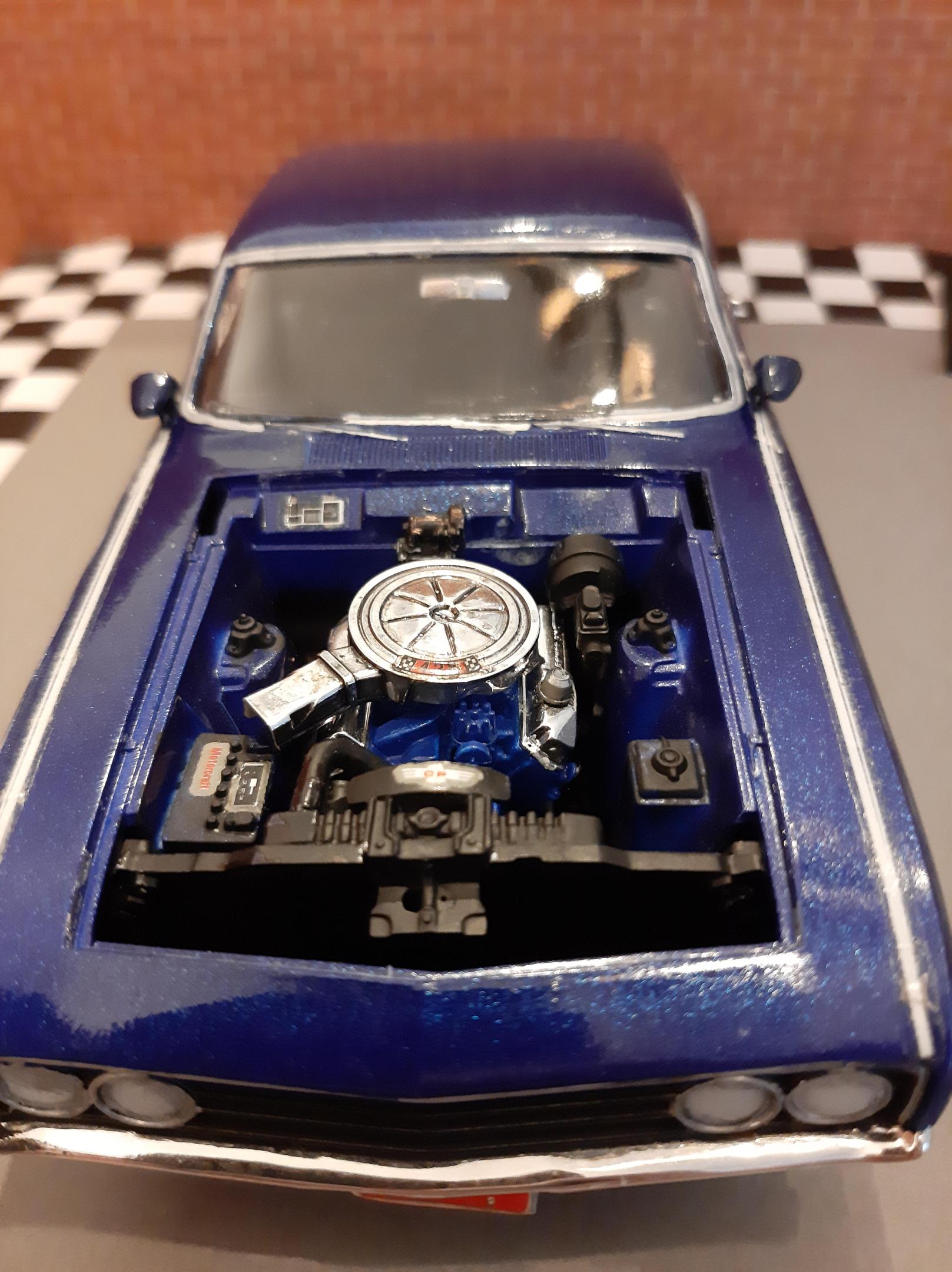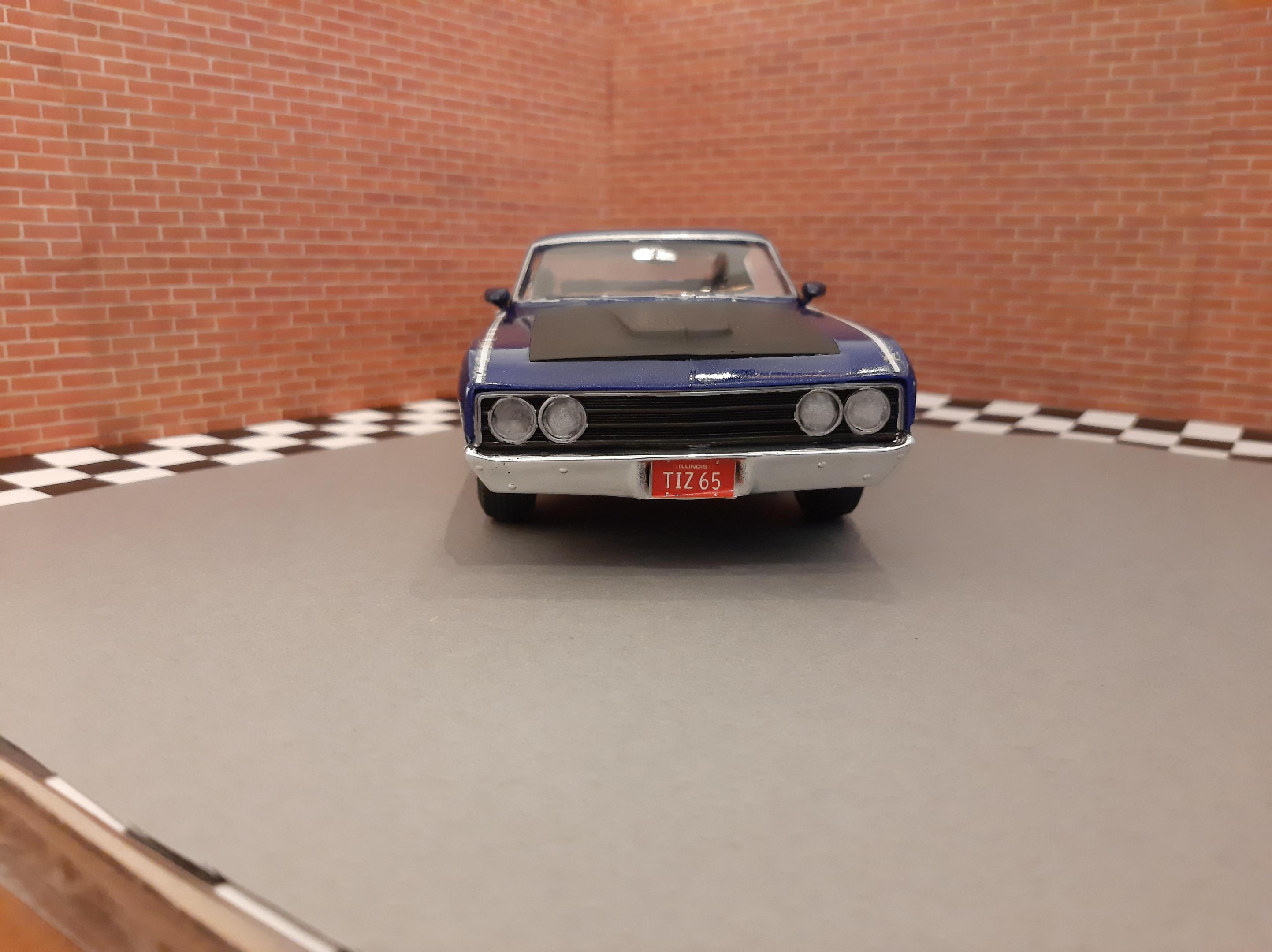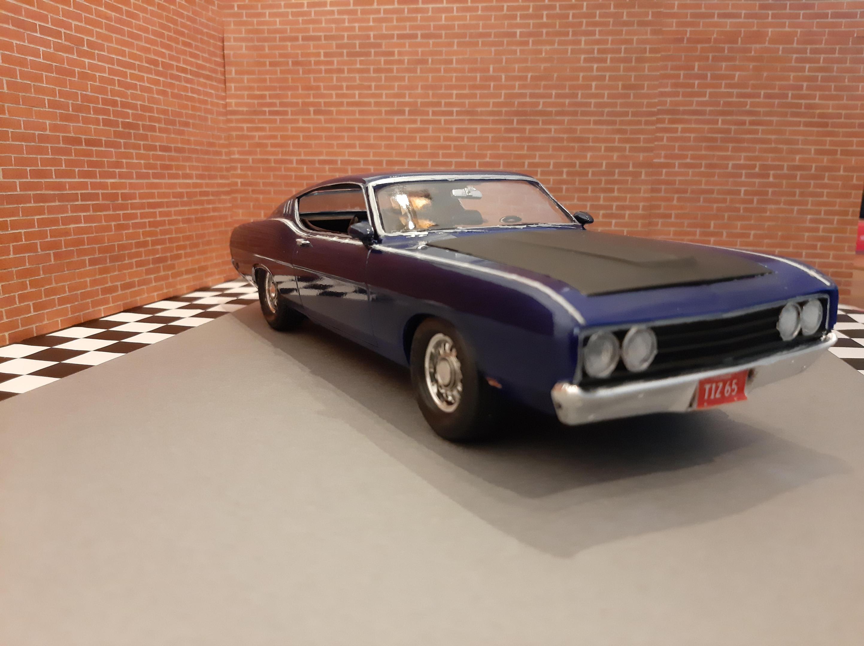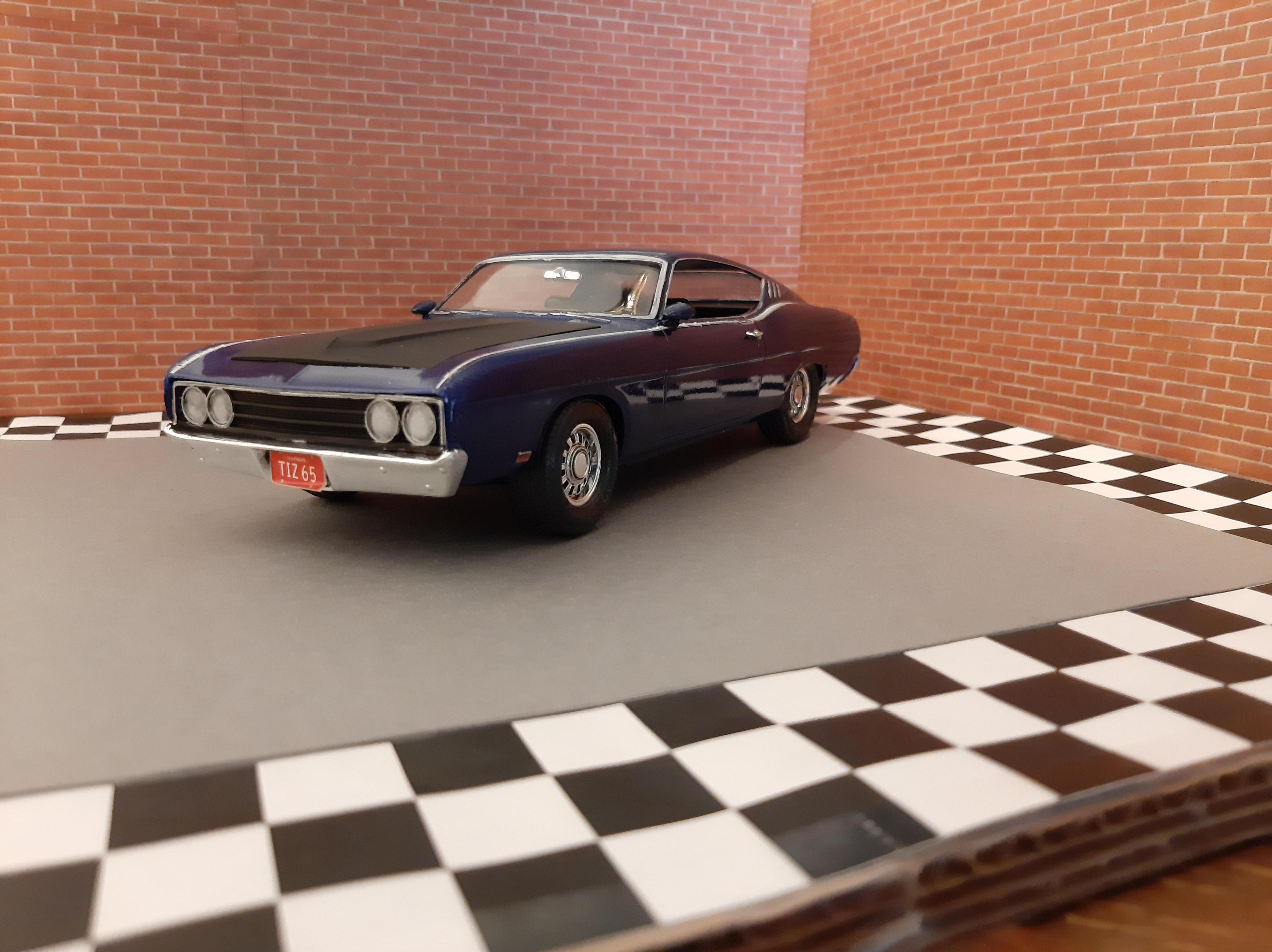 This was my third build I had ever made in my life back in 2012. It has lived in a box and somehow survived. This car has some crude details but it was one of my very first and I am surprised it looks presentable. 1969 Ford (Torino) Talladega which I have now realized how rare of a car it actually is. Somehow I painted this with Testors Extreme Lacquer Deja Blue which is similar to one of the factory colors available in 1969. I wanted to rebuild this car but it has a survivor vibe to it so i'm going to leave it. I have since bought the AMT 1969 Torino Cobra version of this car which I look forward to build.