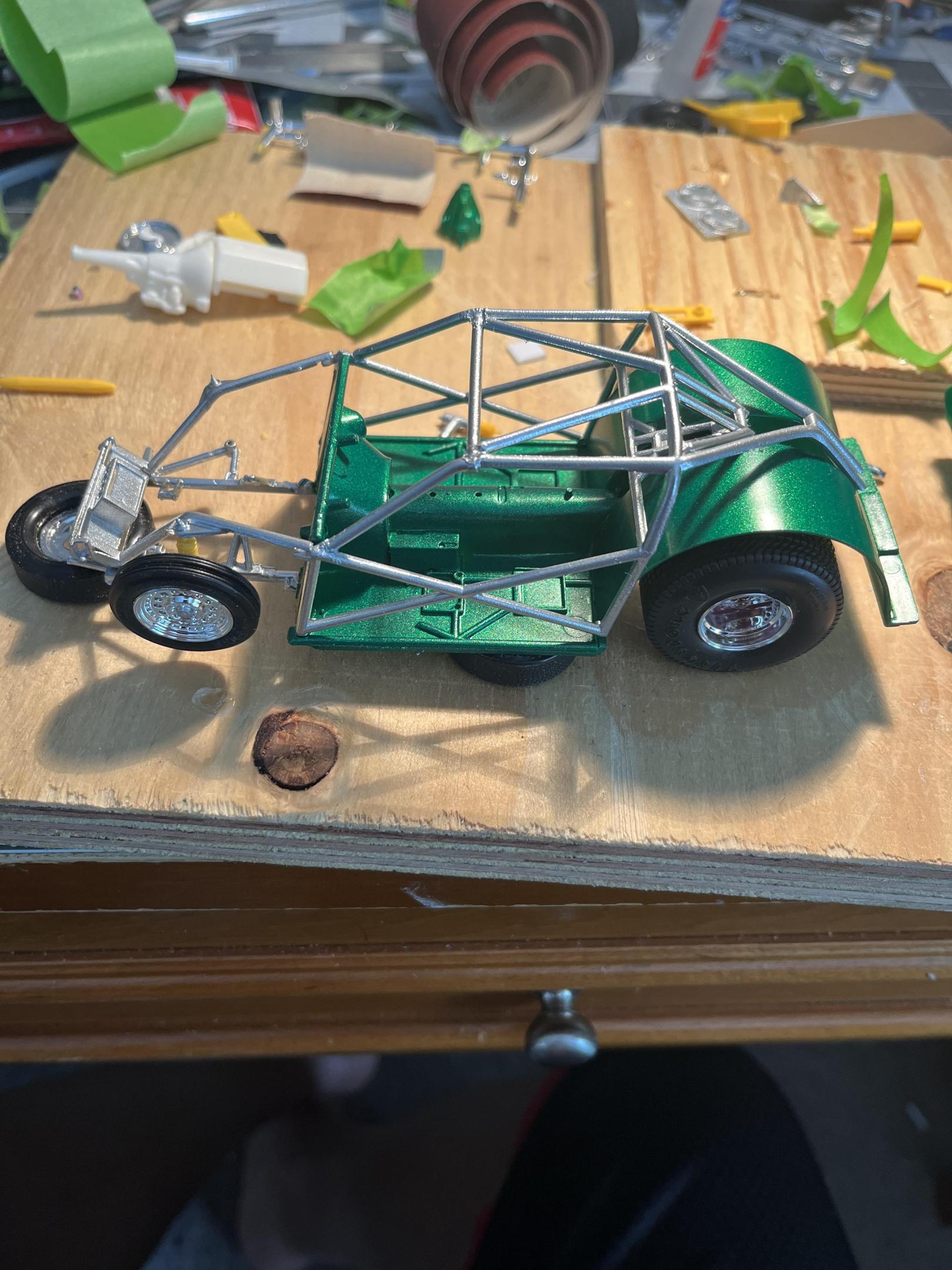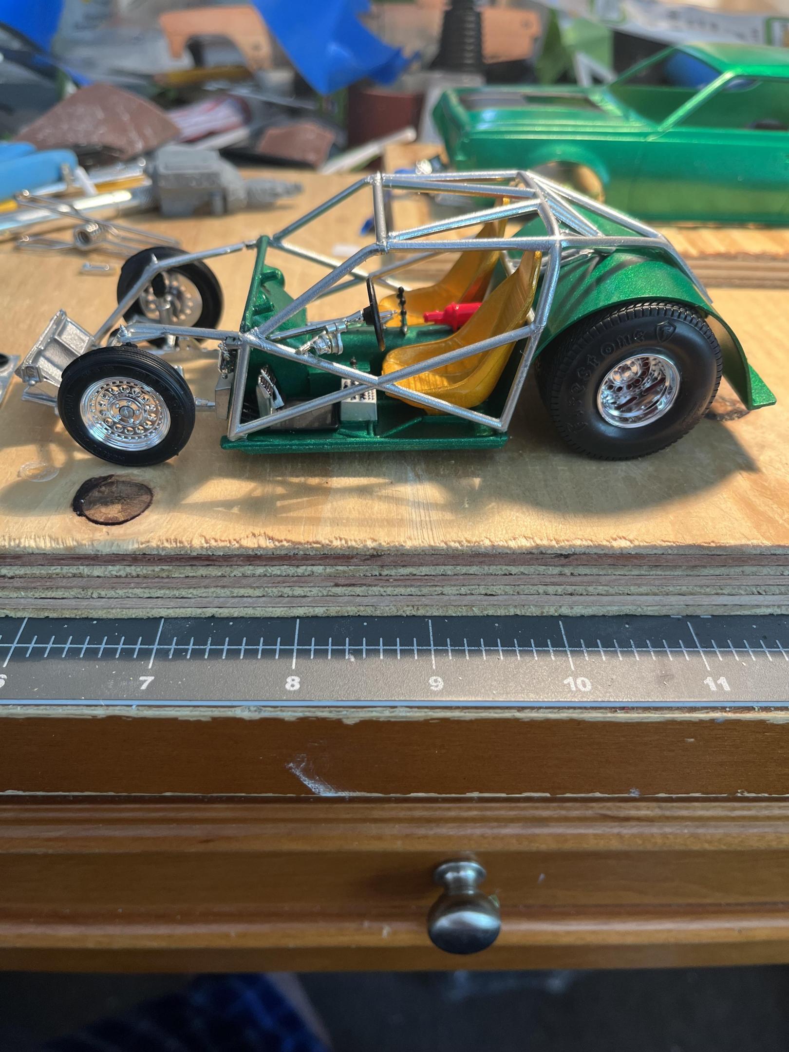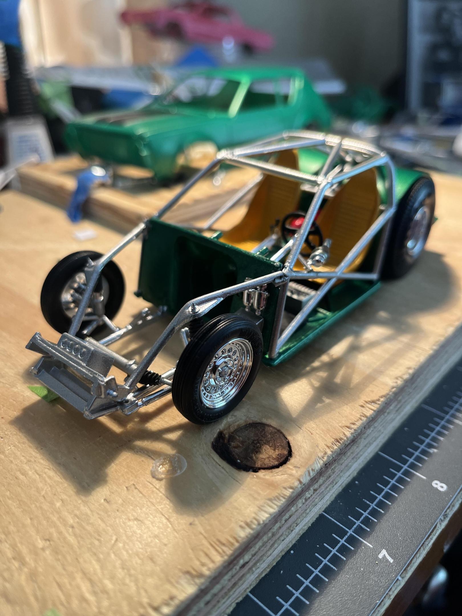 I purchased a 1975 AMT Gremlin for 12 dollars at Ollies and regretted it when I opened it! Loll I had an old Dobberton J-2000 chassis and sectioned it to fit the Gremlins body wheelbase. This is what I came up with! This build is still in progress. Thanks for viewing!