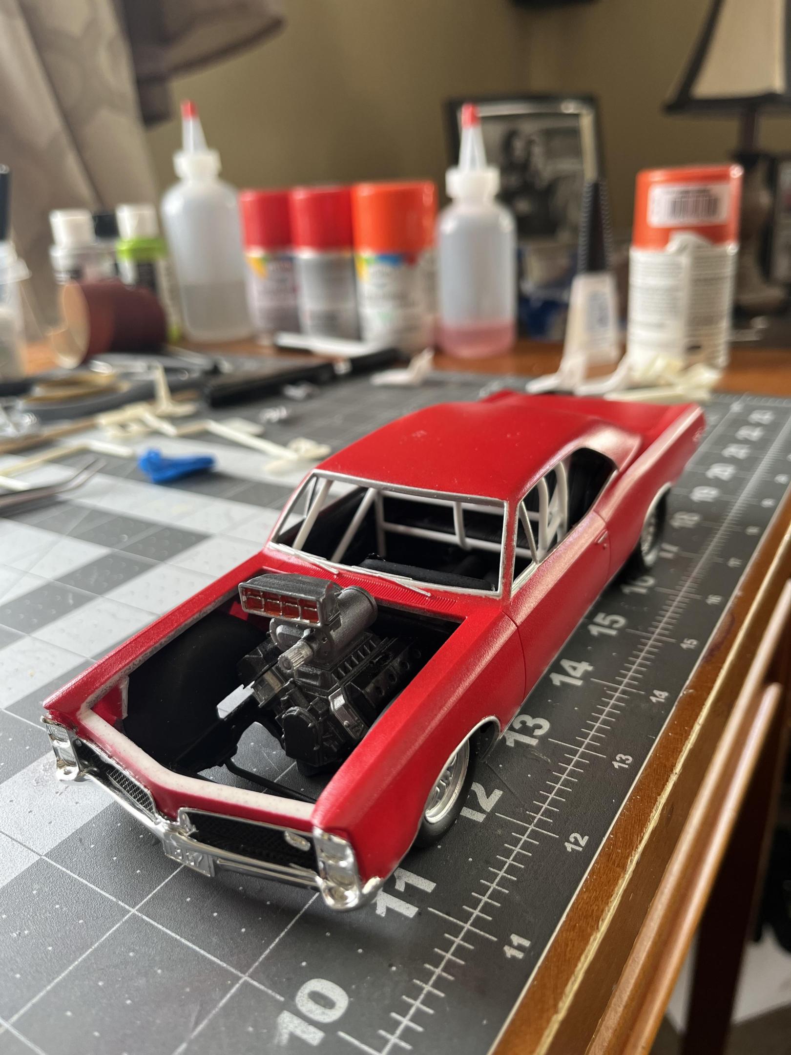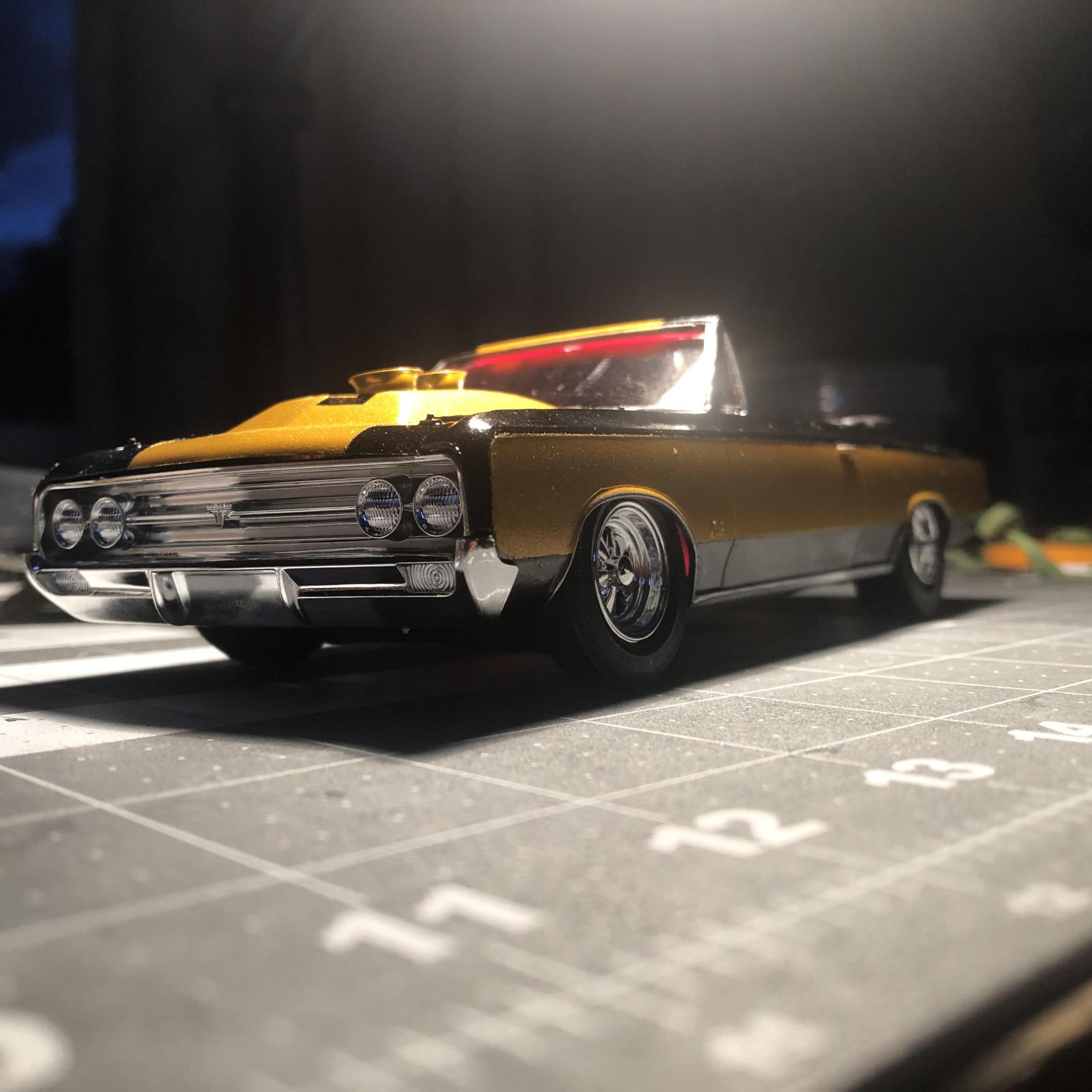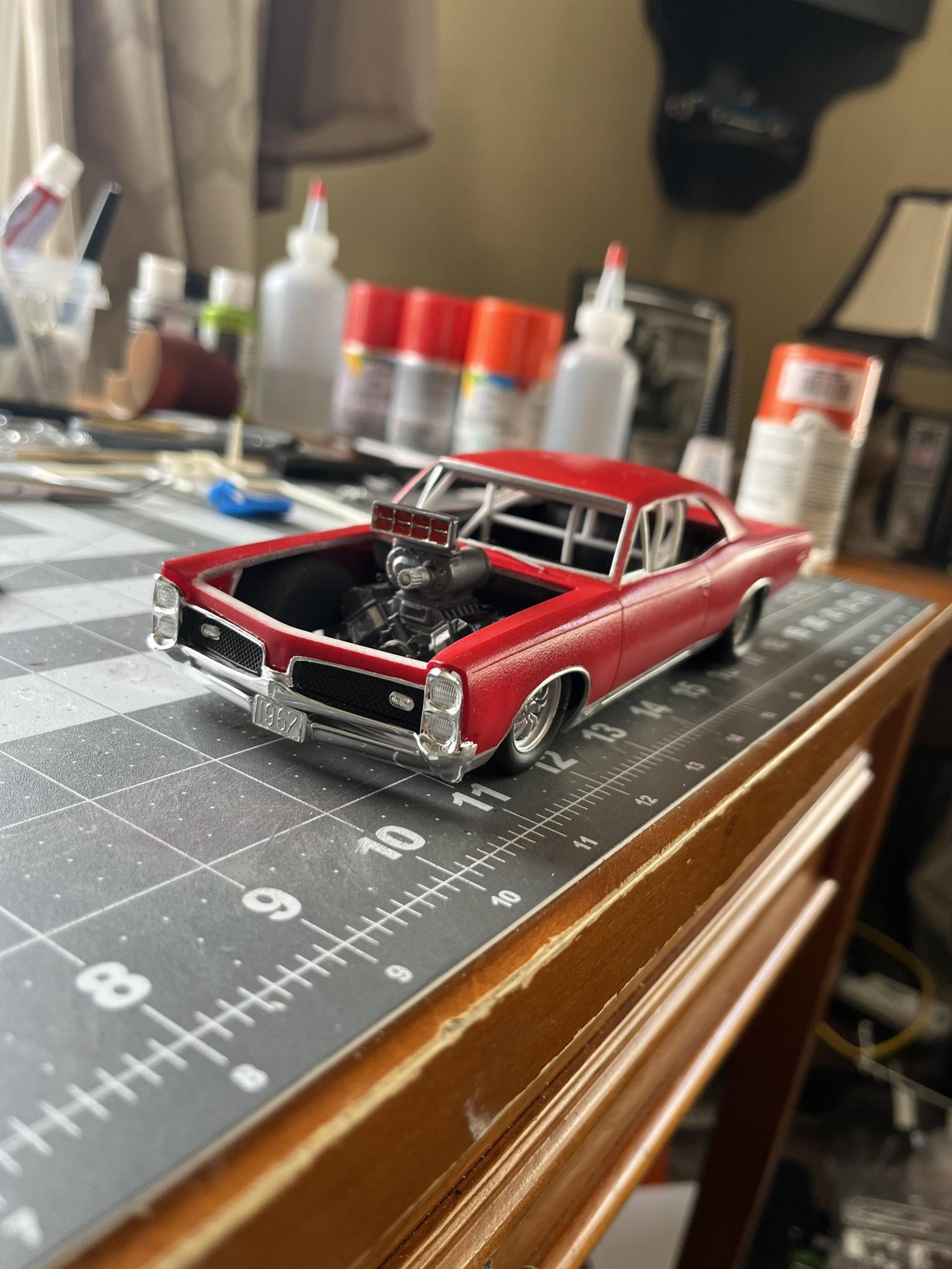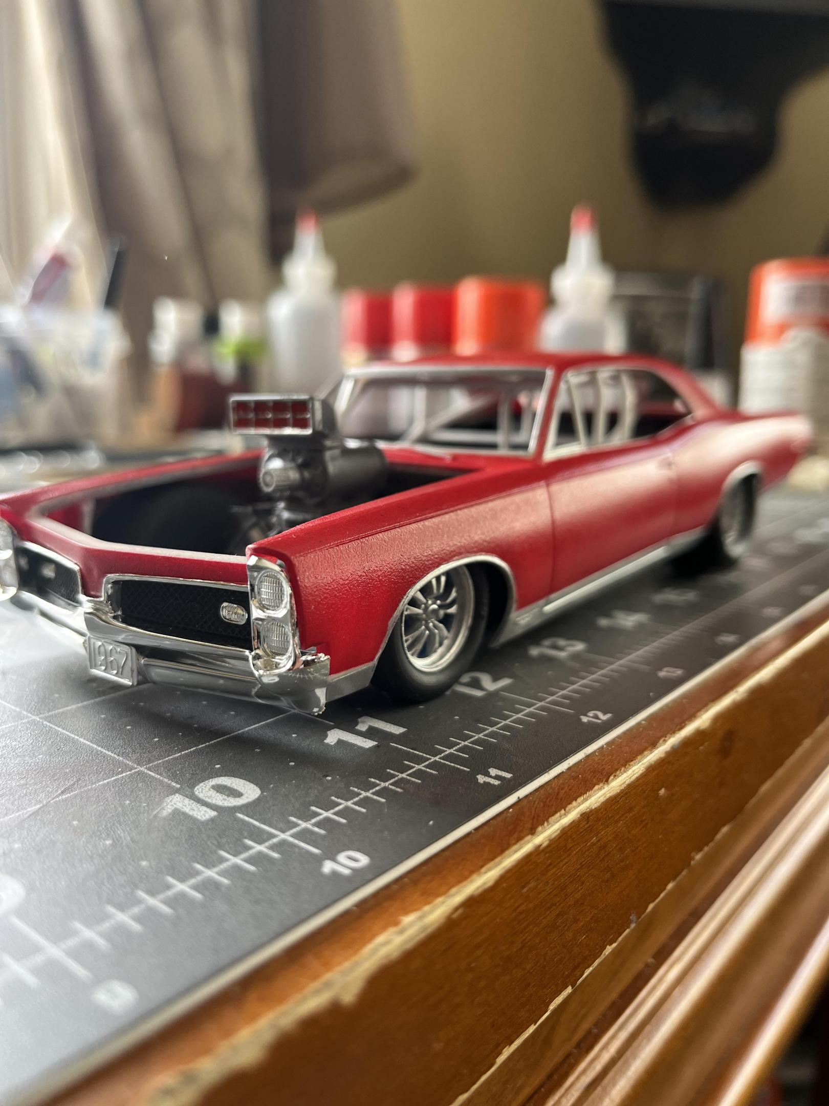 OVERCOMING THE TERRIBLE MPC 1967 GTO KIT!DREAMSCALE CONCEPTS replied to DREAMSCALE CONCEPTS's topic in WIP: Model Cars Thank you, I love this year GTO! This kit needed a roots style blown Hemi sticking out of the engine bay! Thank you for liking it! Gonna make some little changes before it’s completely finished!