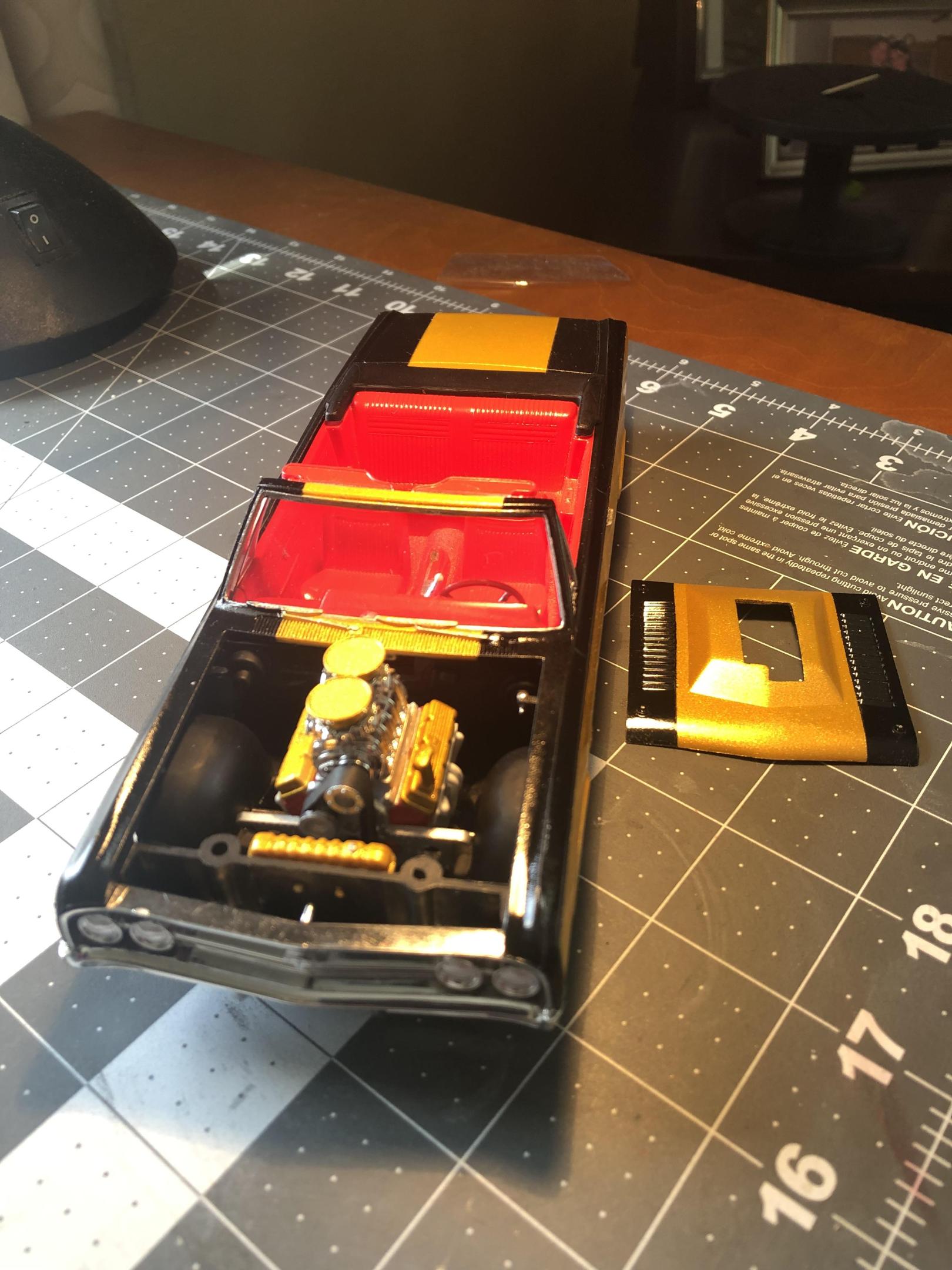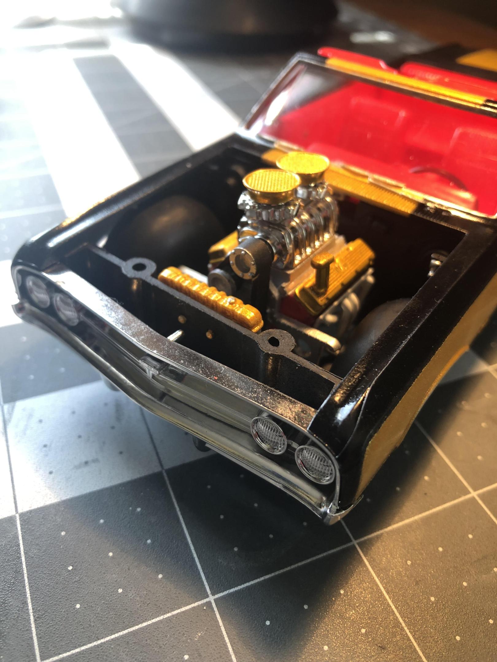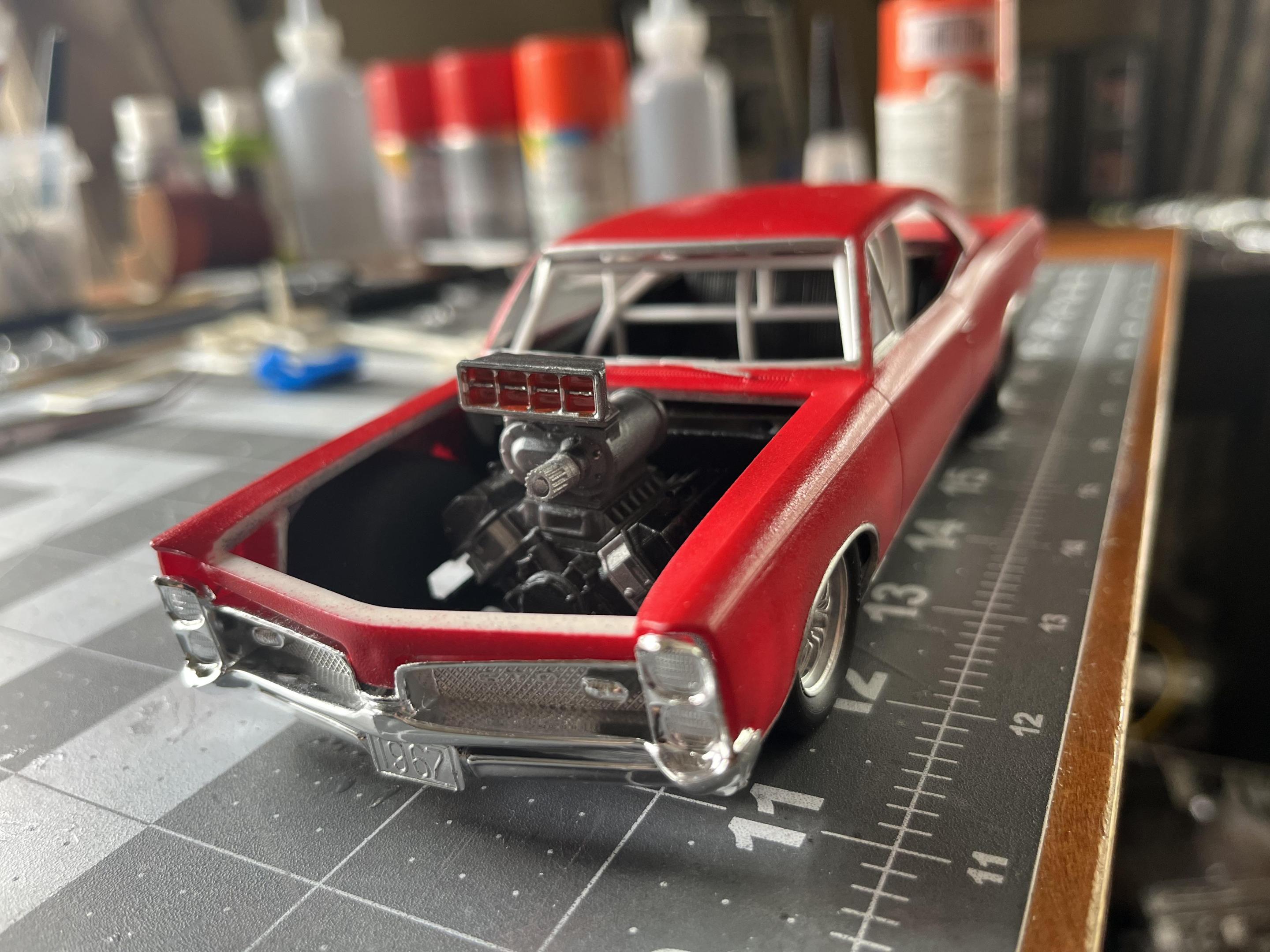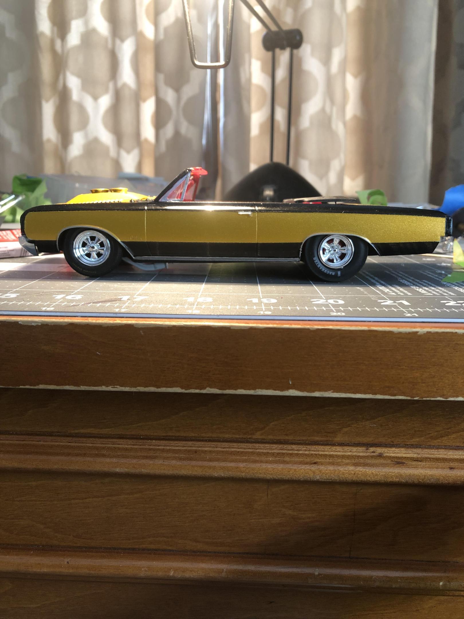 OVERCOMING THE TERRIBLE MPC 1967 GTO KIT!DREAMSCALE CONCEPTS replied to DREAMSCALE CONCEPTS's topic in WIP: Model Cars Thank you, I love this year GTO! This kit needed a roots style blown Hemi sticking out of the engine bay! Thank you for liking it! Gonna make some little changes before it’s completely finished!