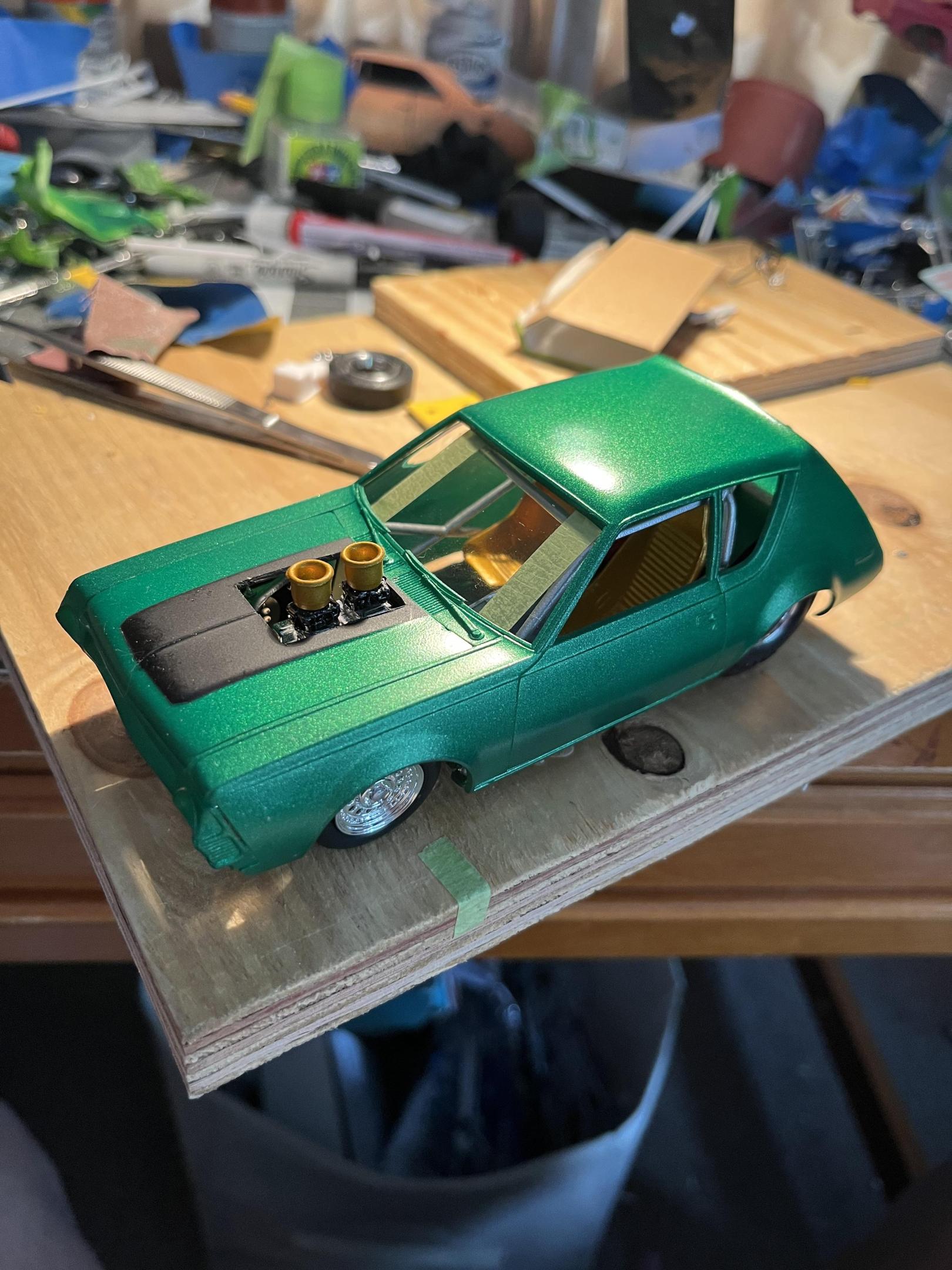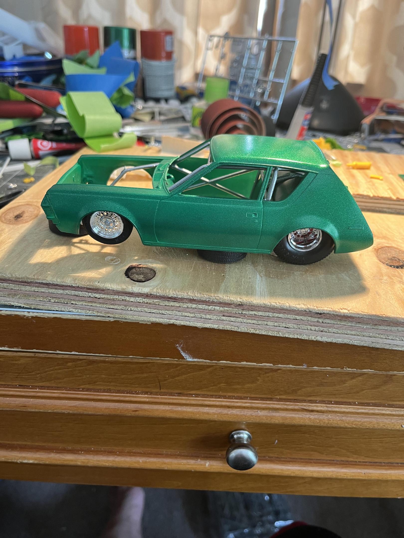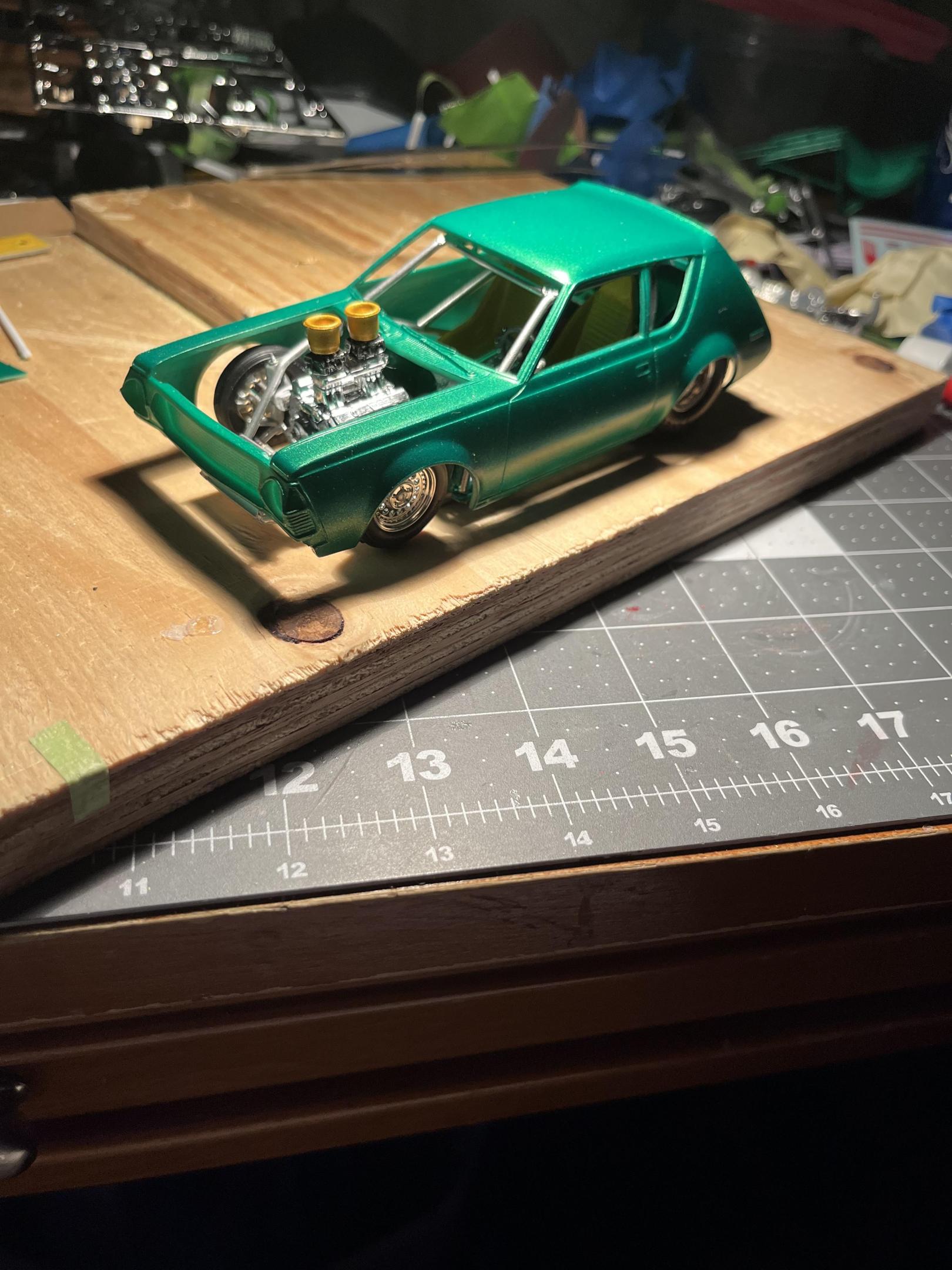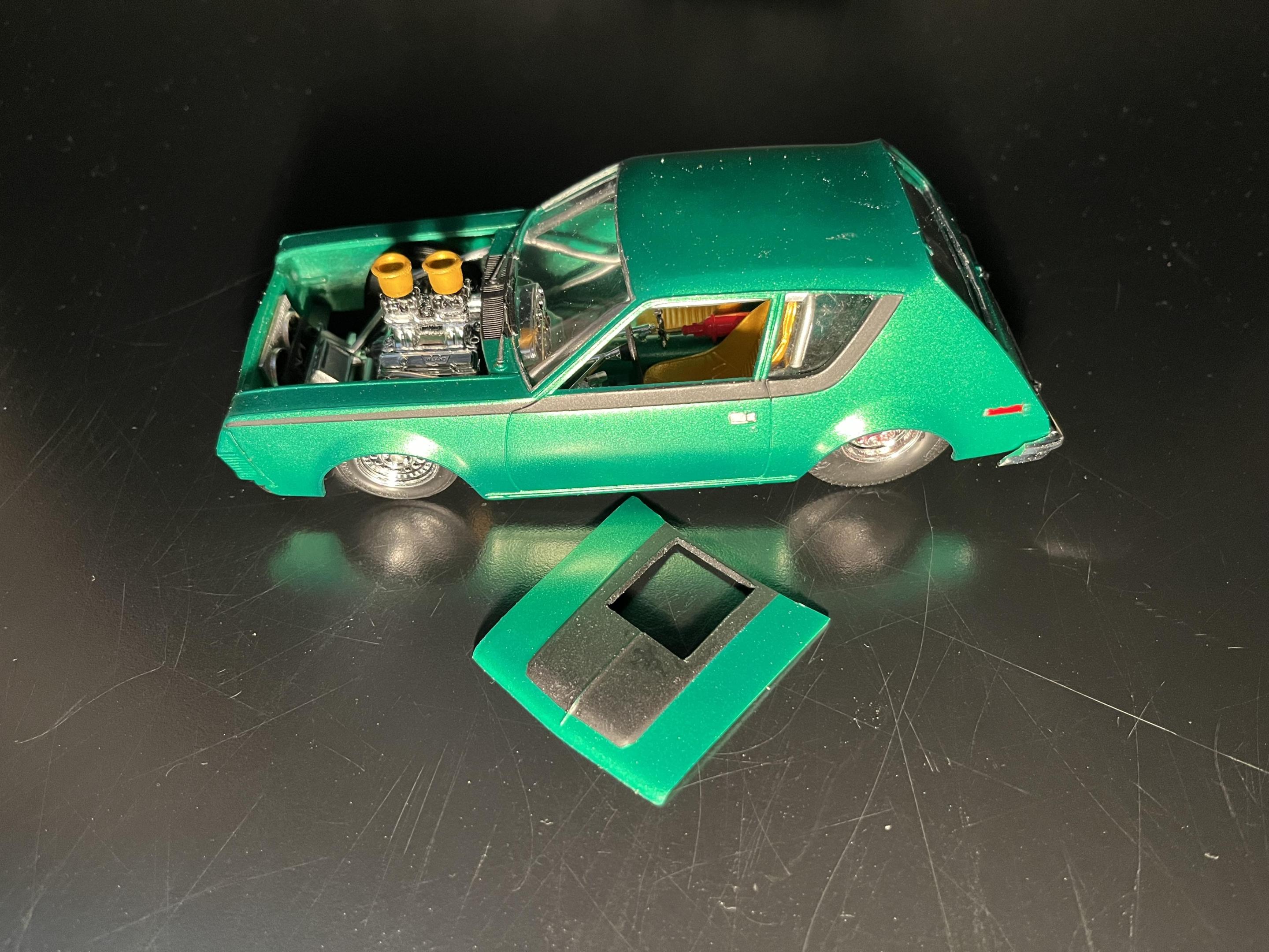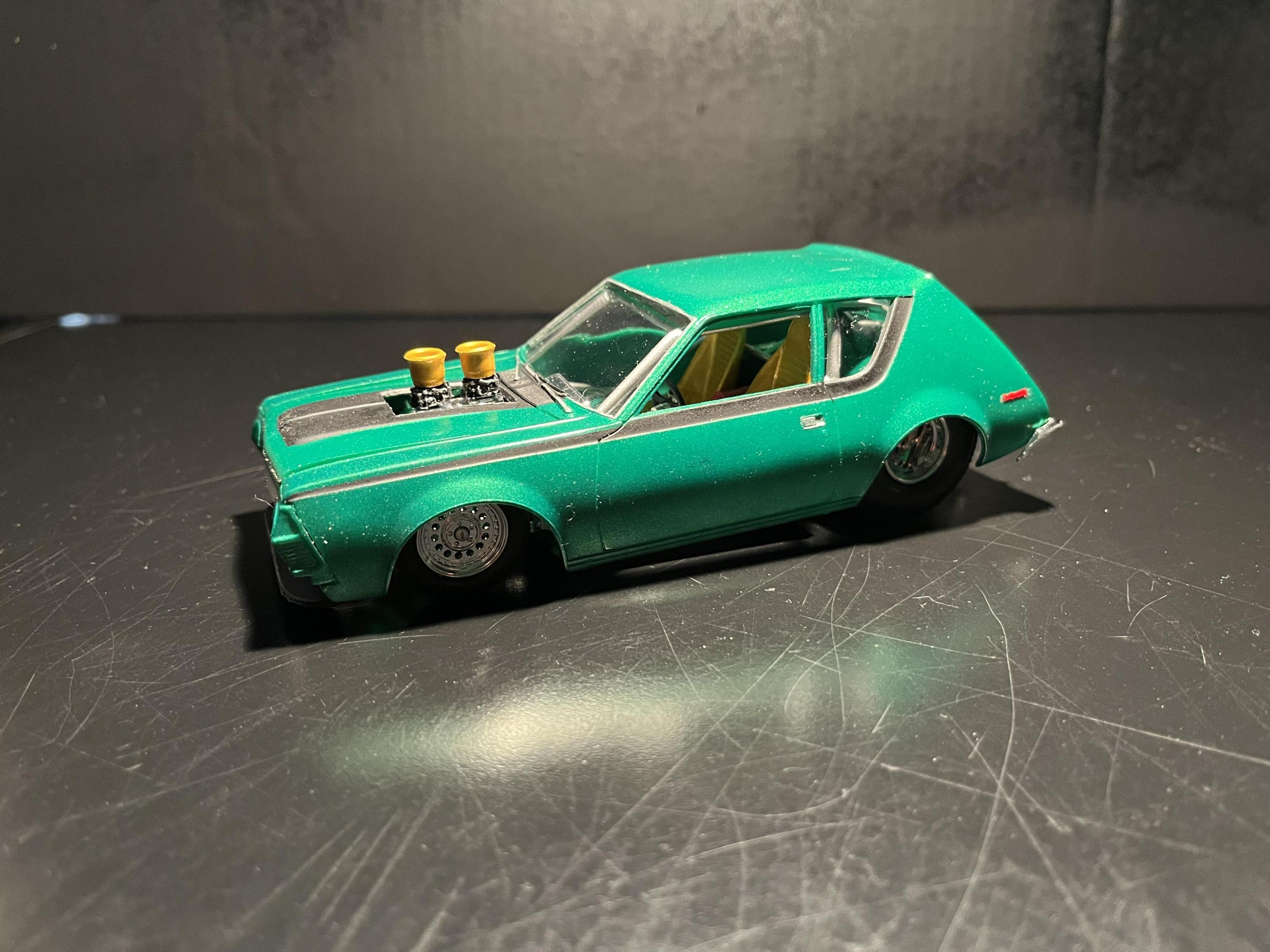 NOT YOUR MOTHERS AMT 75 GREMLIN (2)DREAMSCALE CONCEPTS replied to DREAMSCALE CONCEPTS's topic in WIP: Model Cars Any car model I see for 12 bucks, I’m buying it !! Loll I had make it as cool as possible ! I saw on You Tube a gentleman had a black Gremlin Outlaw Drag car which was cool looking, plus there’s an orange one that is a wheelie car of some sort! I thank you for your input!