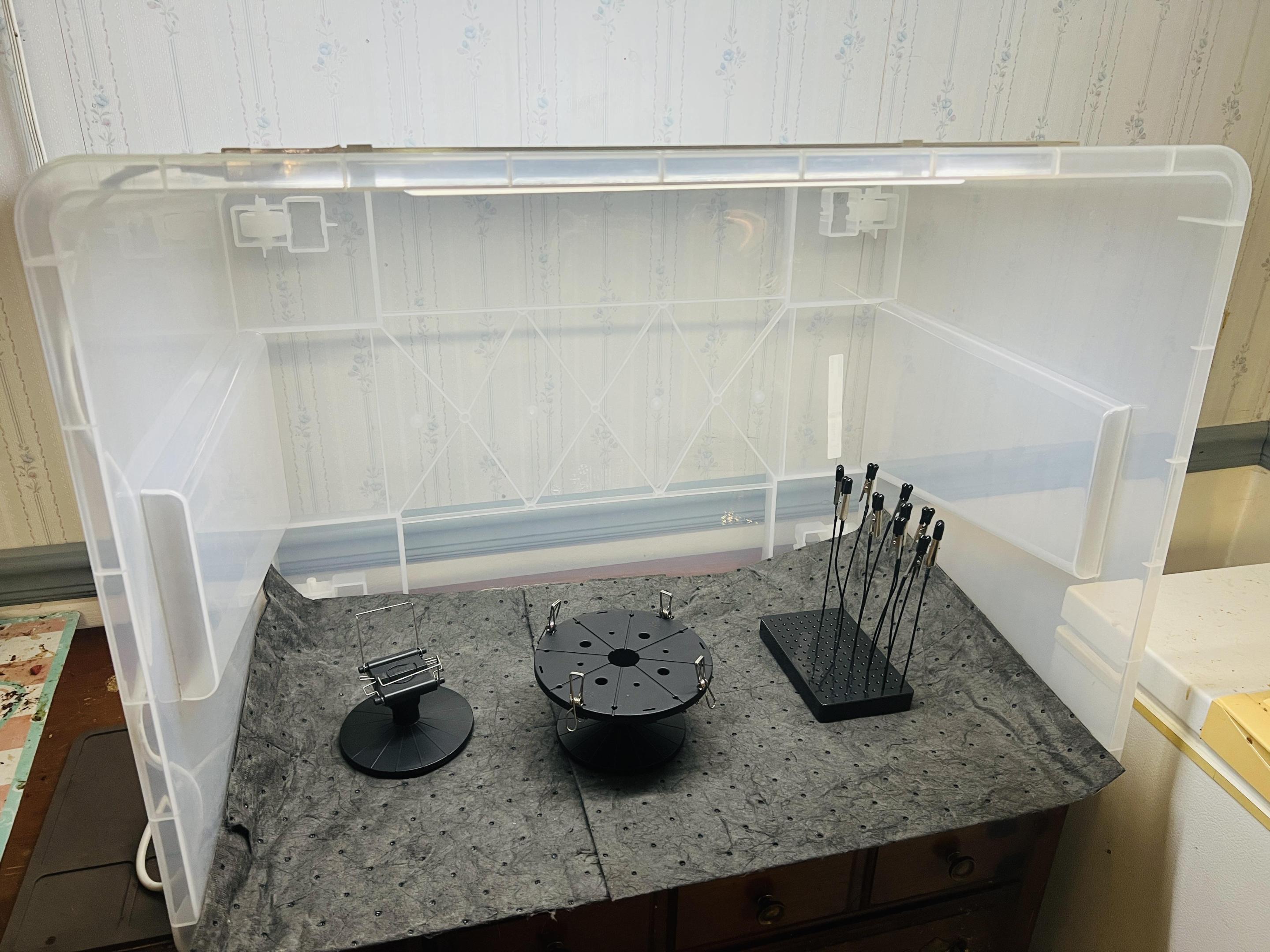 Here is what I am working with so far! I am going to add an exhaust fan and a filter so I can vent it out my basement window! I think is gonna work pretty good! Any large projects can go outside!