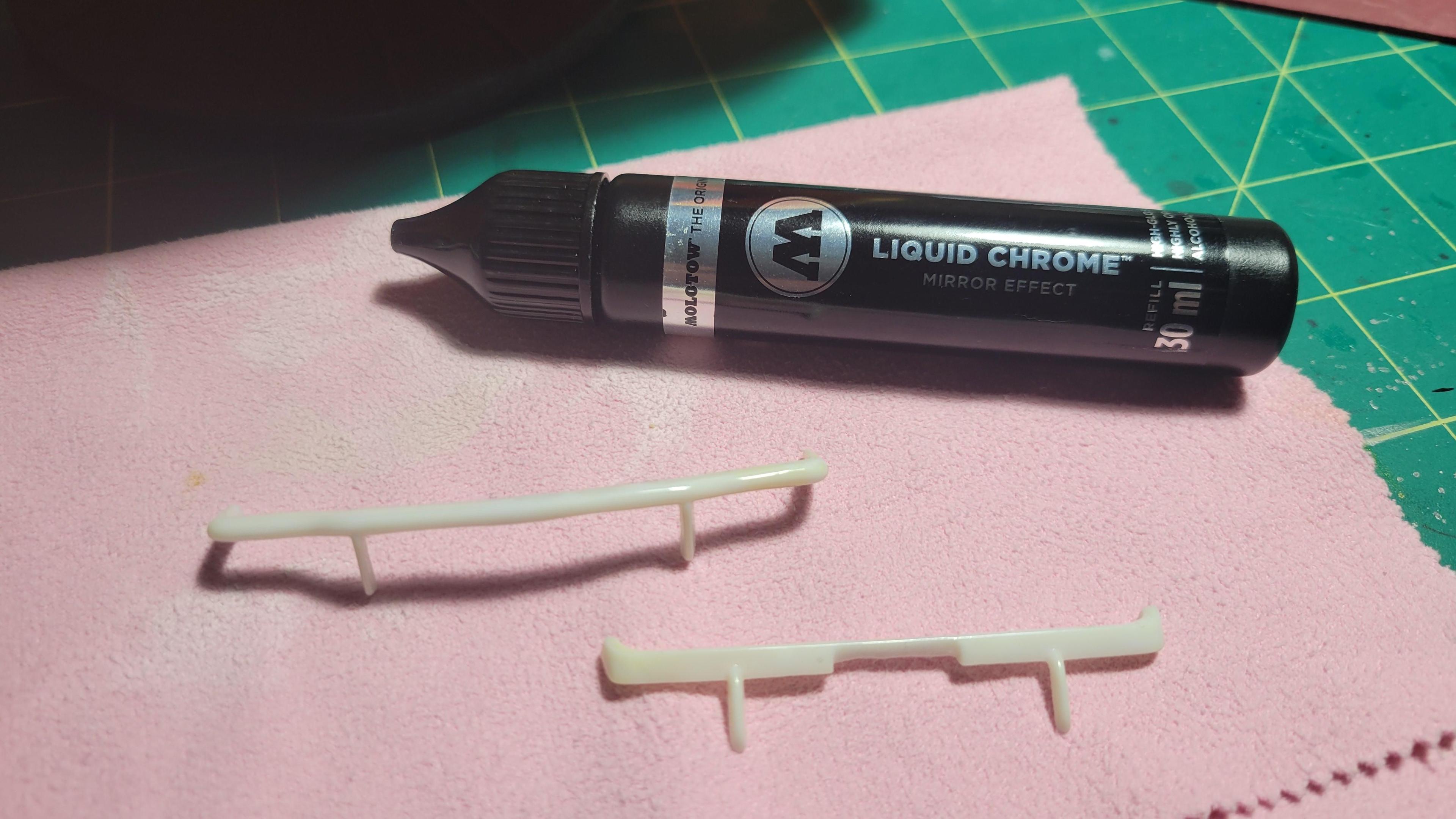 I managed to fog up my headlights. I got carried away with the liquid chrome. It was looking good on the back piece. I dropped on the lense not to smush it down. Still good. Then a bonehead move. I tapped a little CA on the edges and it immediately seeped into the seam.