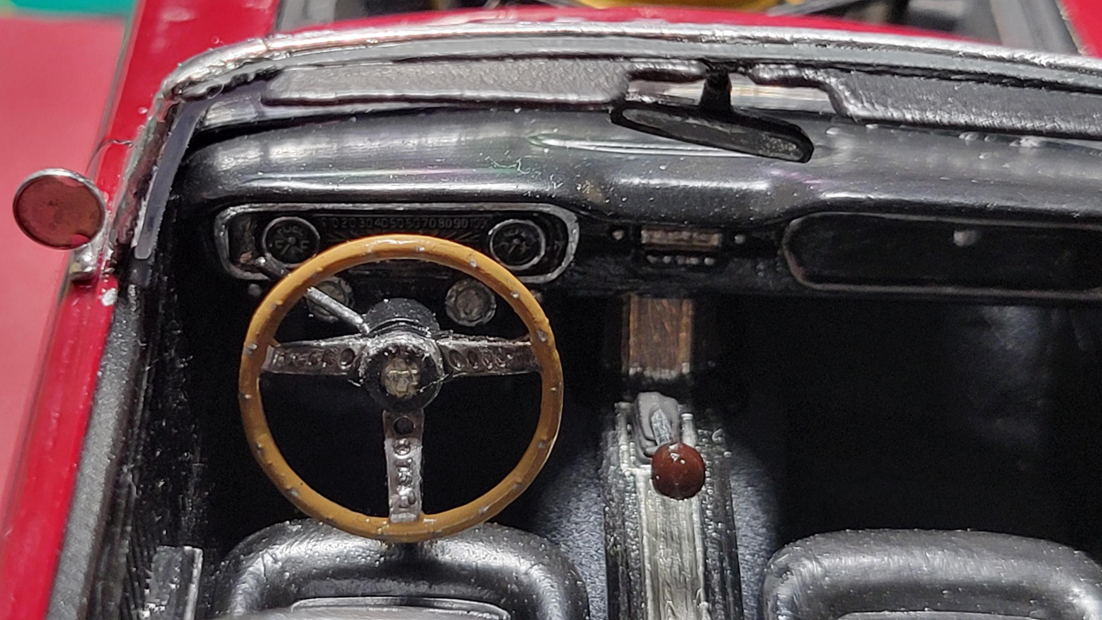 And insult to injury, I dropped them in the frame off kilter and could not get them to spin. It will always bug me. I'm not all the happy with the grille. I tried several combinations of panel liner and thinned paint but could not achieve an even tint. It just looks dirty.