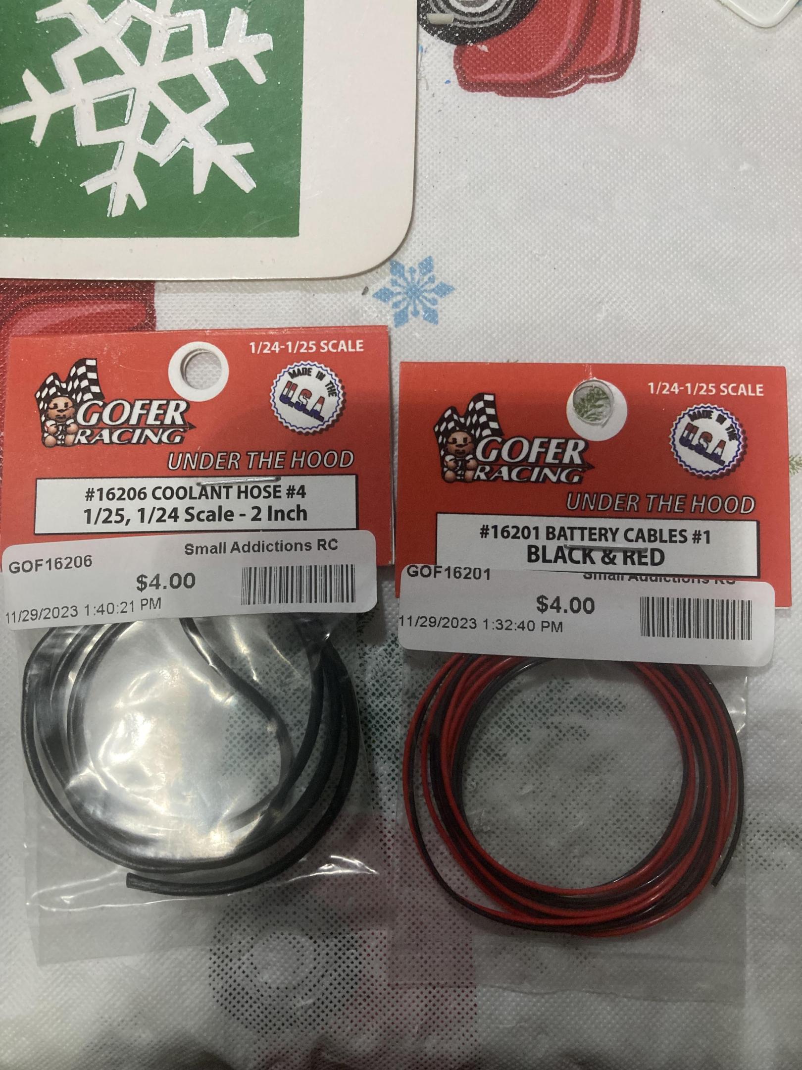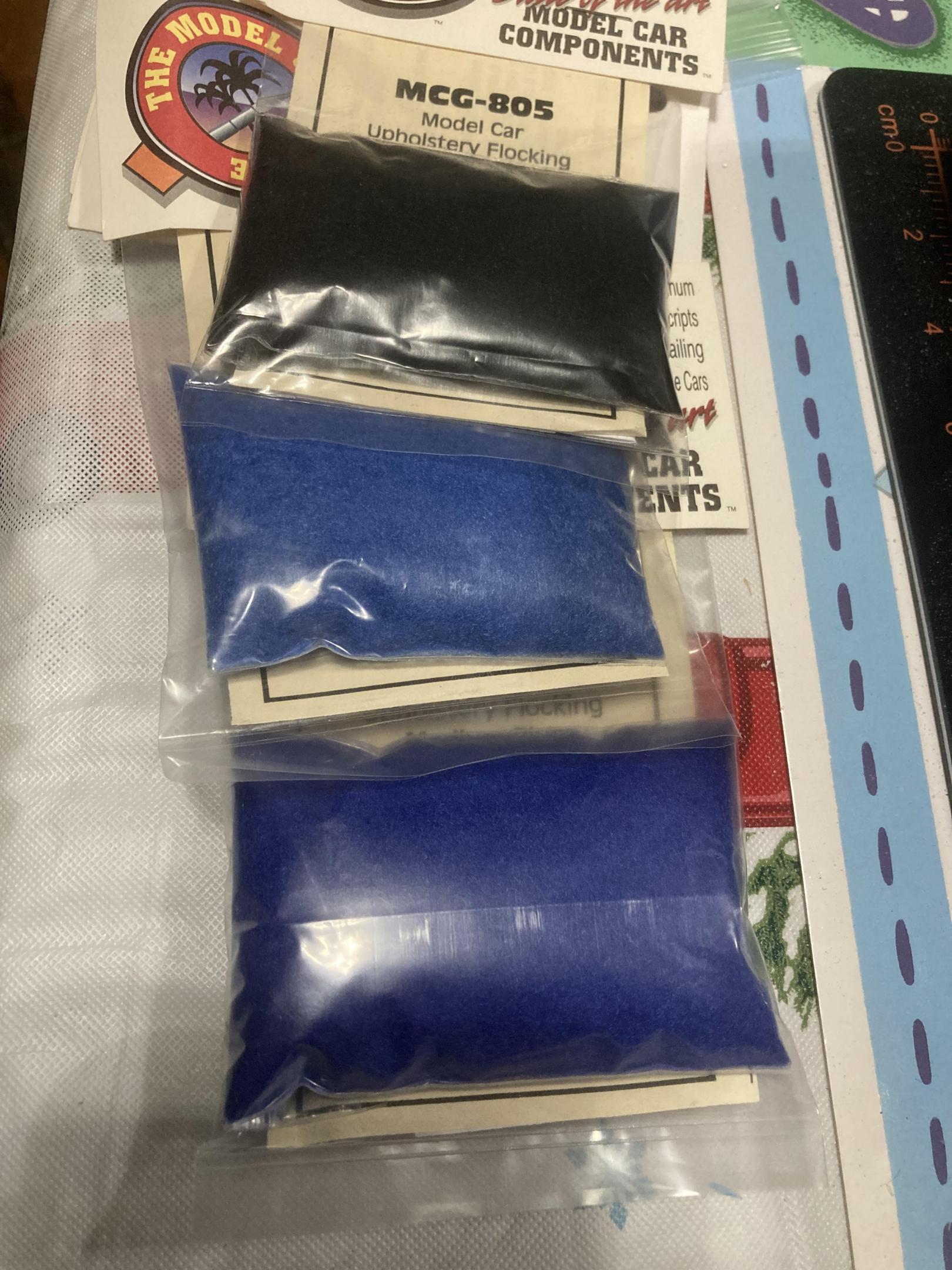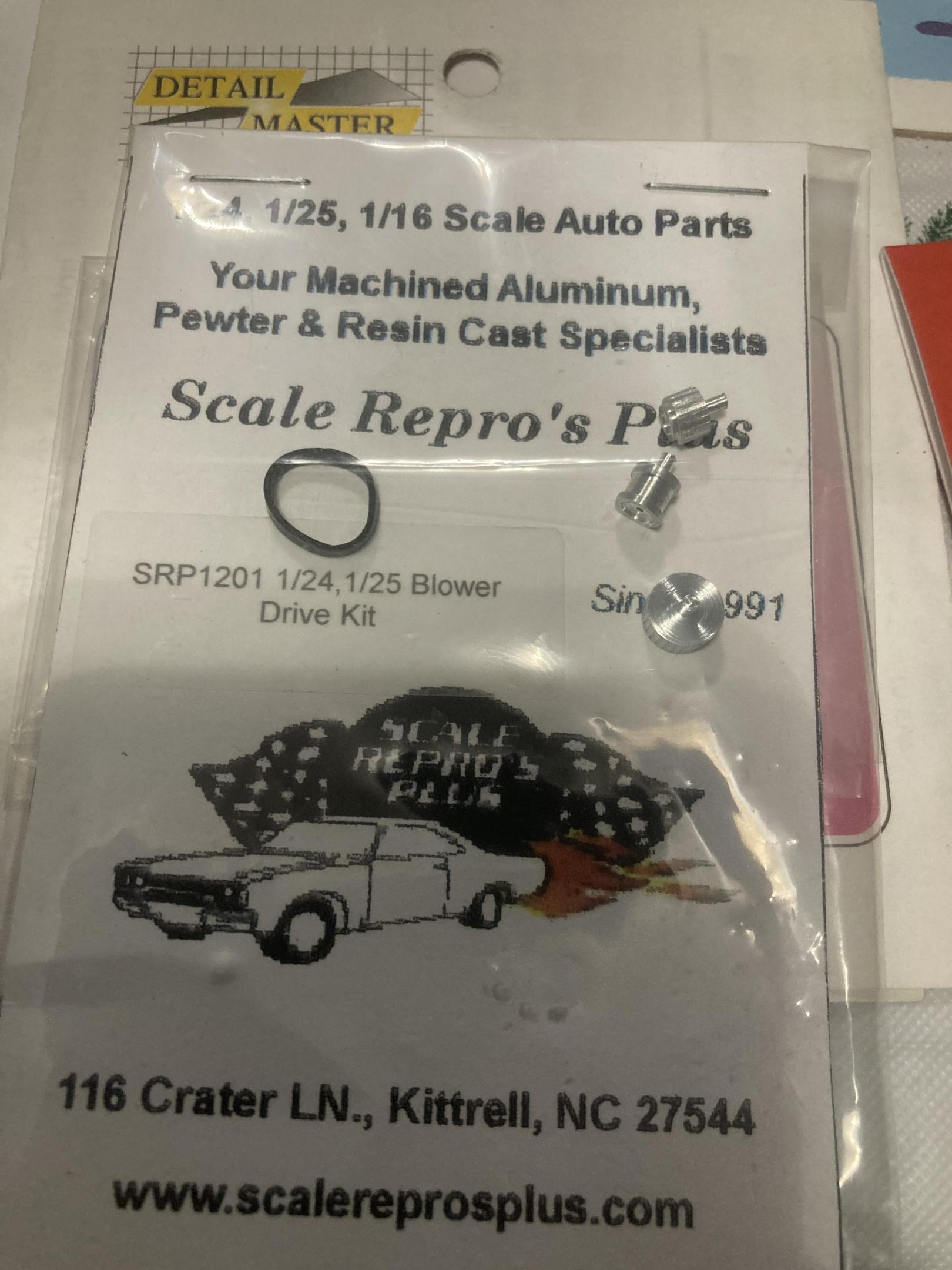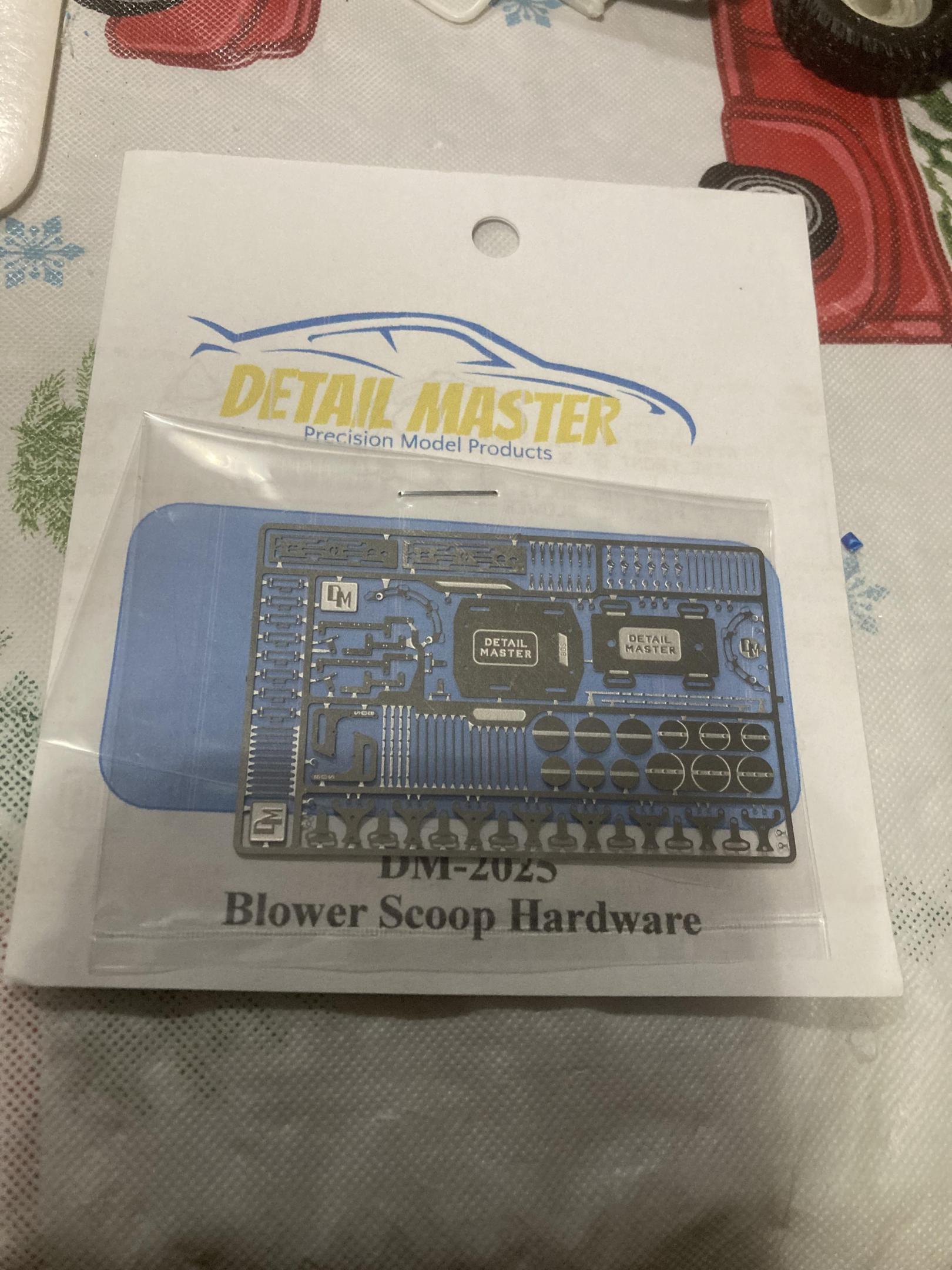 Small update… No work was done to the trucks today, or the previous day. I have been waiting for some stuff to show up for both trucks, to detail them. So today is a product showcase of the details I’m going to add to both trucks… The first detail will be the blower scoop hardware from Detail master. #DM-2025 Next is the little gauges, from detail master, #DM-3227 From Model Car Garage, is some flocking. I got Blue (#811), Medium Blue (#816), and Black (#805) And lastly, from Gofer Racing, #16206 coolant hose, and #16201 battery cables. Im still waiting on a few more things and I still need to buy a few more items. I’m still looking for some wood grain decal sheet for the center console. And I’m waiting on more of the little gauges to show up. The seller waited nearly an entire week to ship, and that was only after I sent him an email asking if they had even shipped. Anyway, that’s it for tonight, as I’ve been working on something else in the meantime, and will post photos of that soon.