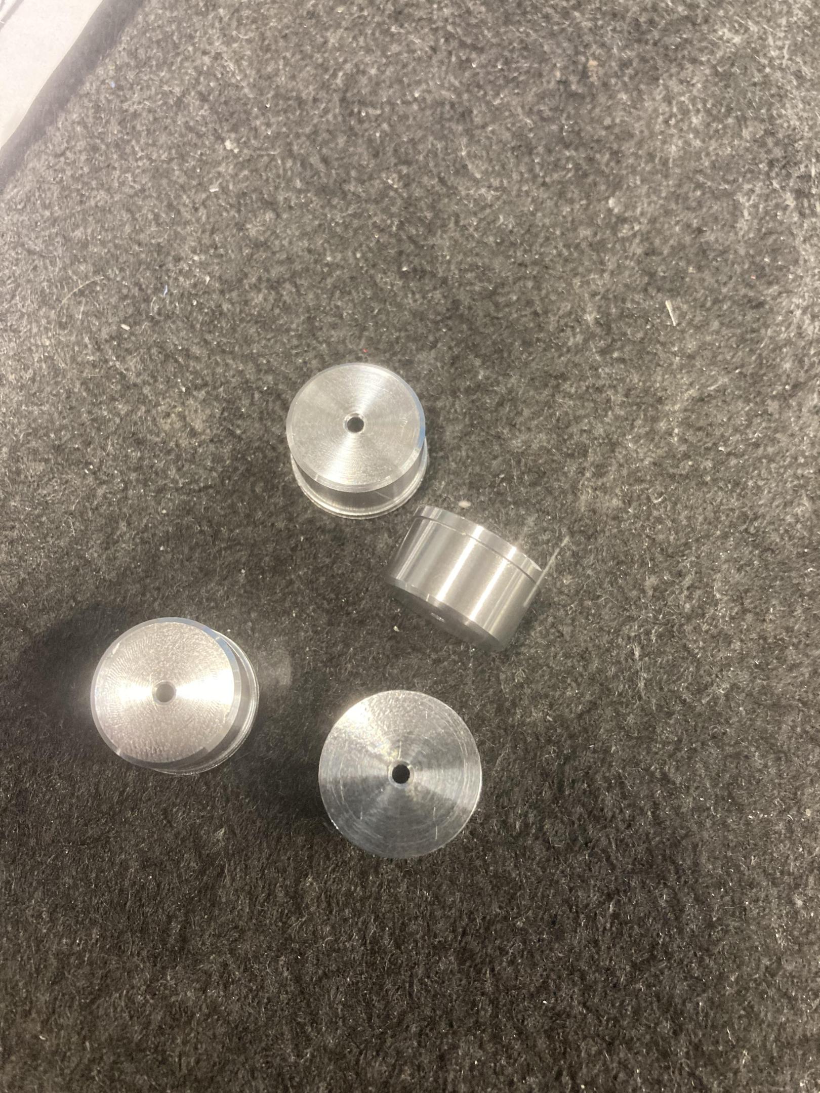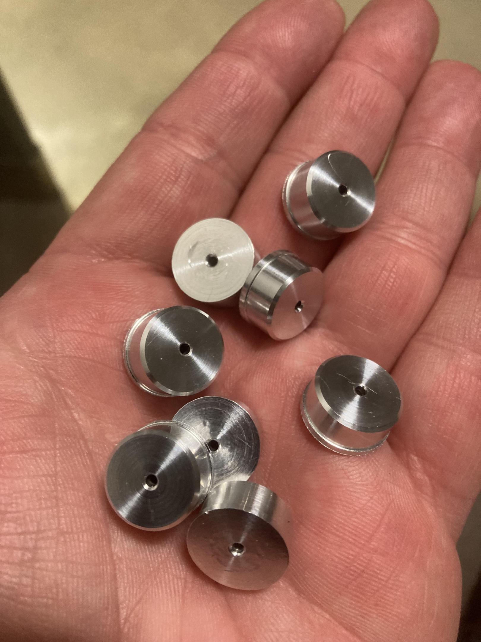 Update… Had the day off from work, and it’s cold and windy. Decided to work on BF3 today. I have the great fortune of working in a machine shop. BF3 needed some wheel spacers/planetary hubs to take up the space behind the wheel and axle combo I force matched, to have the planetary hubs, BF3 ran. So, I made some. I made two widths and settled on the narrower spacer. They came out great and space the tires just slightly wider than BF1. I’m okay with this, as planetary axles are typically wider, due to the addition of the hubs gearset housings. Next, I tried my hand at measuring out and fitting six gauge faces into the center console, made specific to BF3. Well, six gauges wasn’t going to happen, and I had to settle for five. I almost had to pull the gauge cluster plastic up to redo it, but all the gauges laid in nicely on the top row and the second row was good enough and evenly spaced, so I left well enough alone. I did try to get six gauges in there. I think it looks pretty good. It definitely adds another bit of interest when looking in through the cab windows. I still need to do a console armrest pad, and the RII box and mount. I will also need to start placing the large tach and smaller gauges on the dash.