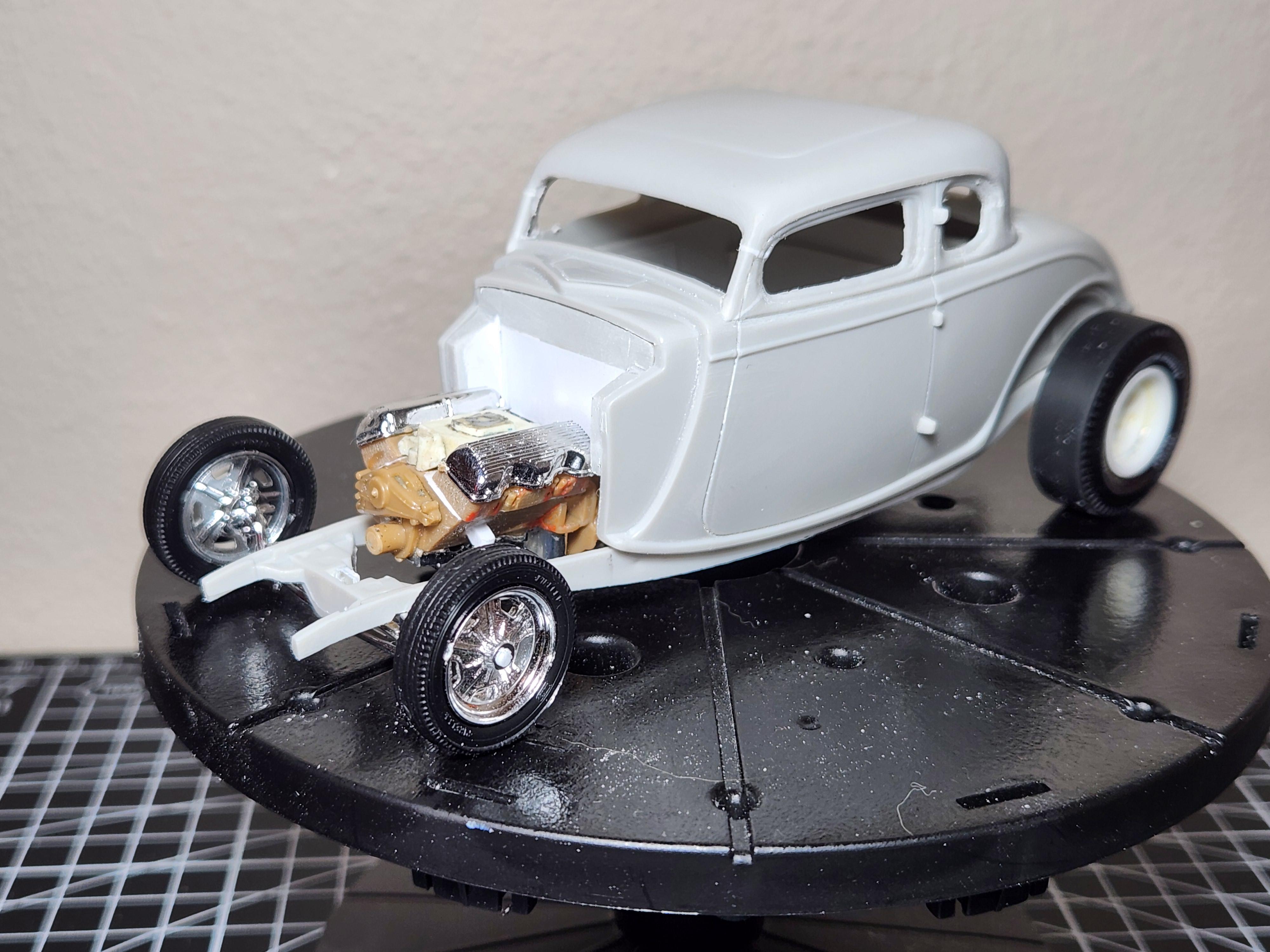 Nice work on that chassis swap! I love doing modern kit chassis under old hard to find kits. I actually put a amt 66 fairlane chassis in an annual 66 ford falcon. It had to be shortened a bit but sence they were based on the same chassis IRL with the fairlane being longer it is realy as correct as you can get.
