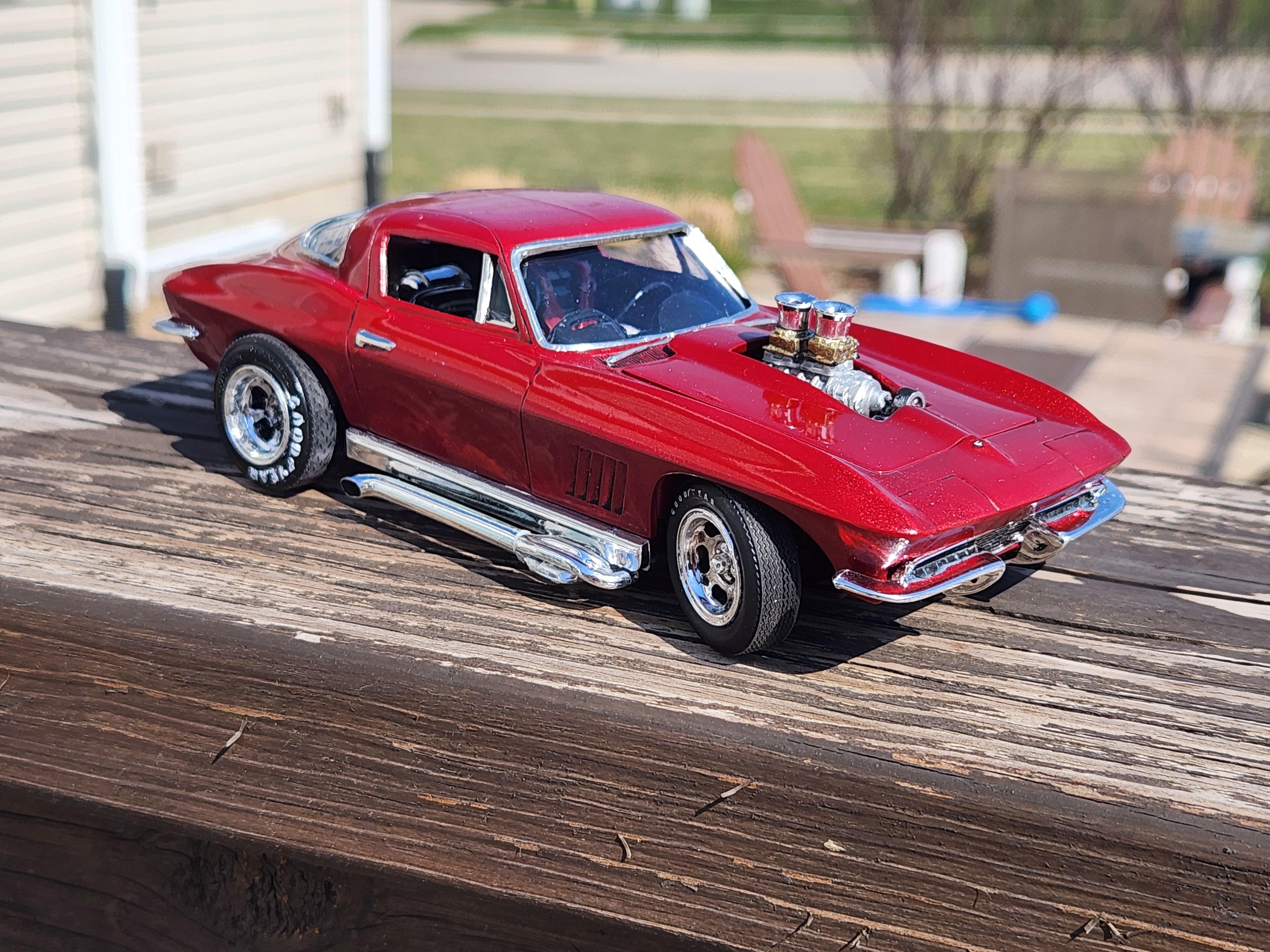 An electric fan from the revell 32 series? Looks pretty good there, the 3 tail light mod is a necessity for any custom c2 corvette.