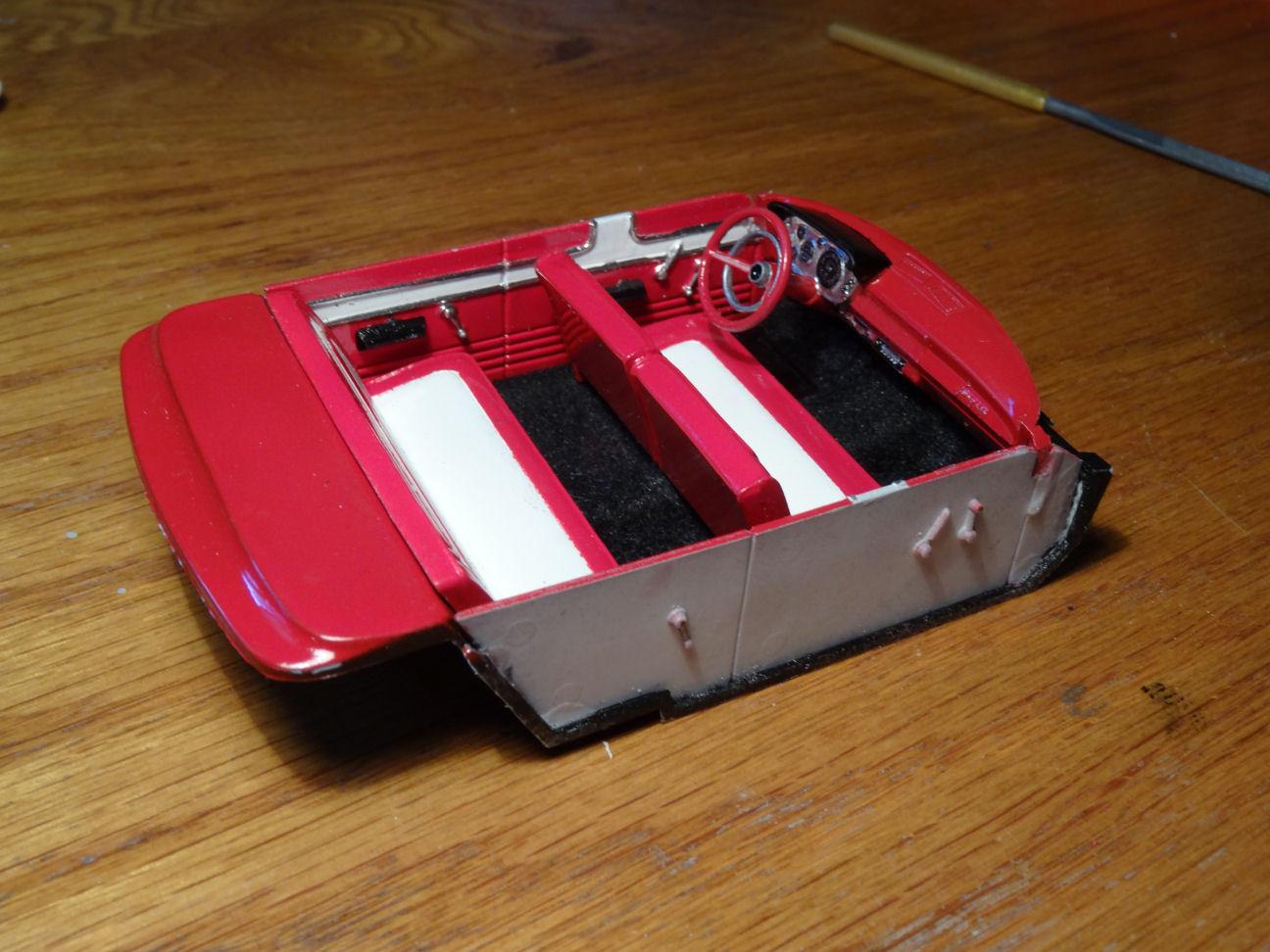 Thanks guys, just have to make it safely thru paint. ? BTW Jim the paint is Createx Wicked Crimson. Already did the dash with it. One thing I'm finding with both cars is I'm loosing the badge on the nose under the primer. Not that it was too well pronounced to begin with. Cleaned up the coupe with a q-tip and some nail polish remover. Wondering if it would be worth trying to print a decal but I hate to waste a whole 8 1/2 x 11 sheet for two teenie weenie emblems.?