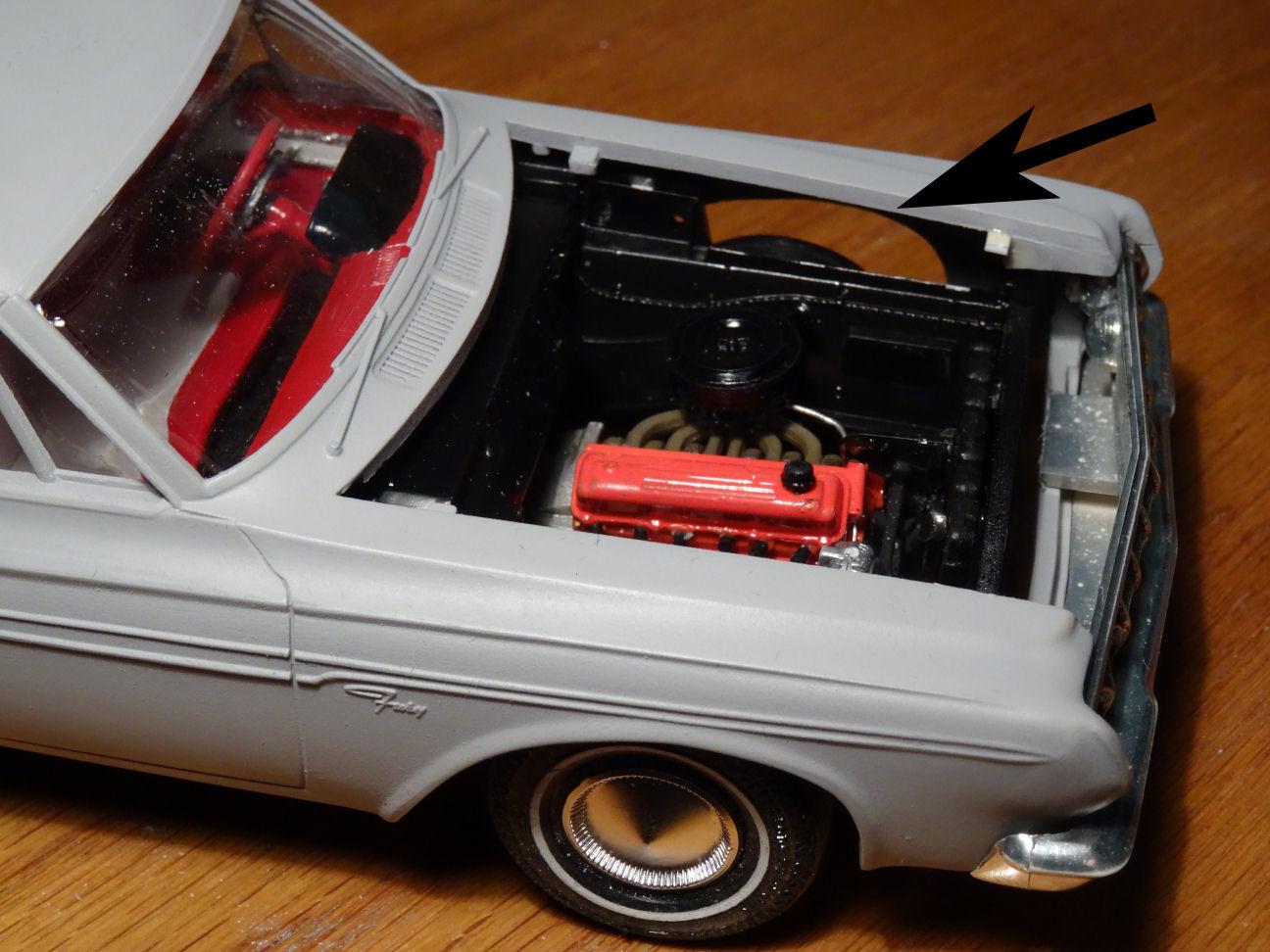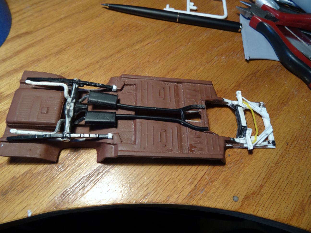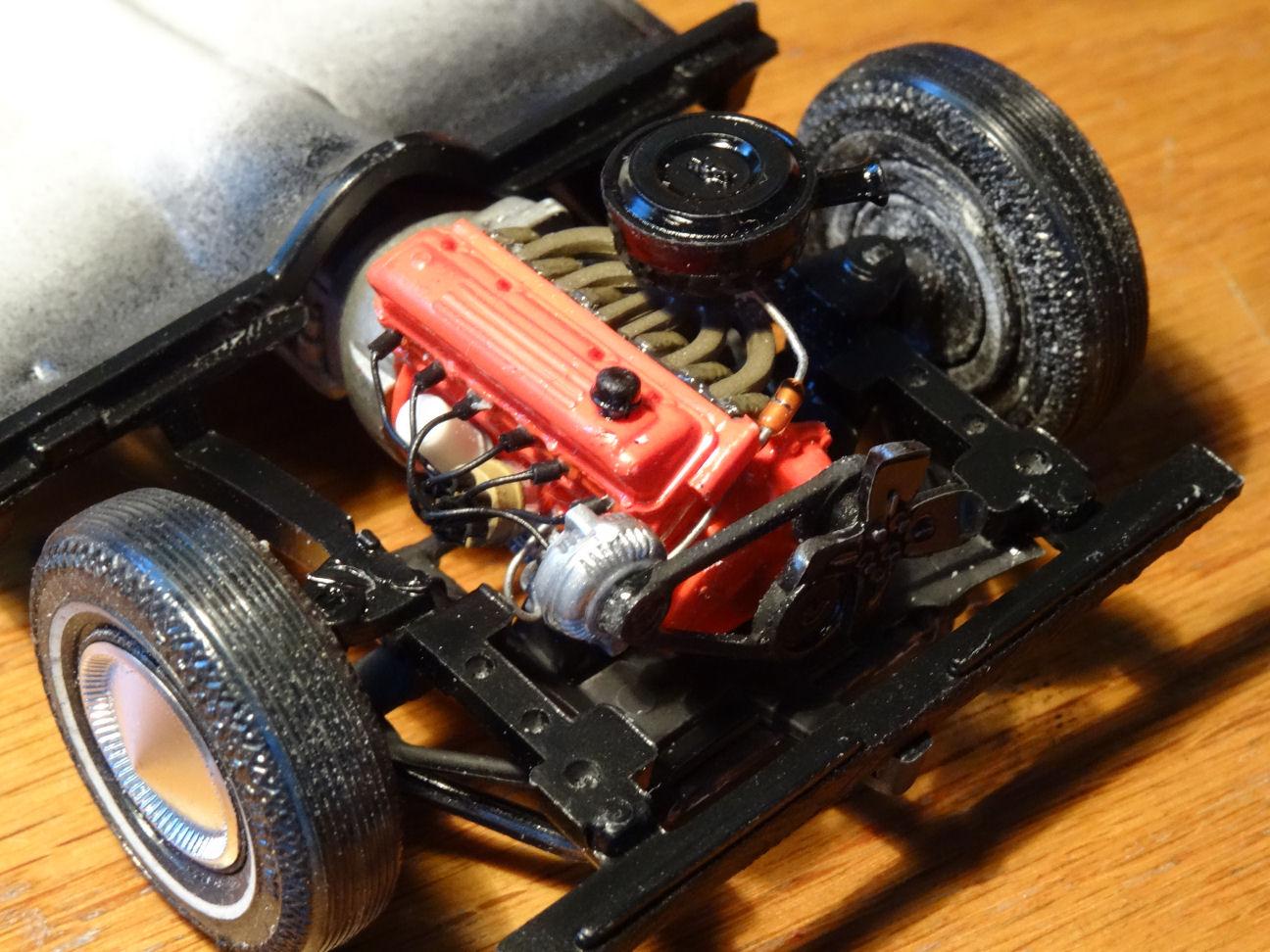 John, love the color choice on the Fairlane works really well. Coming along great? Jim, this is a detailed chassis, not the old promo style. And those hood pins are molded in place.